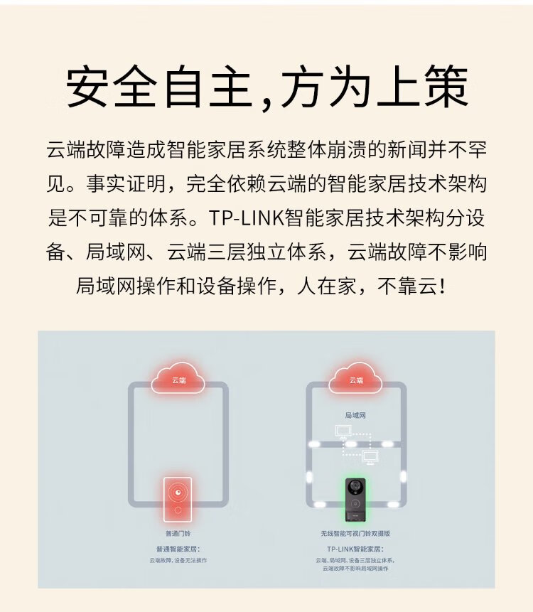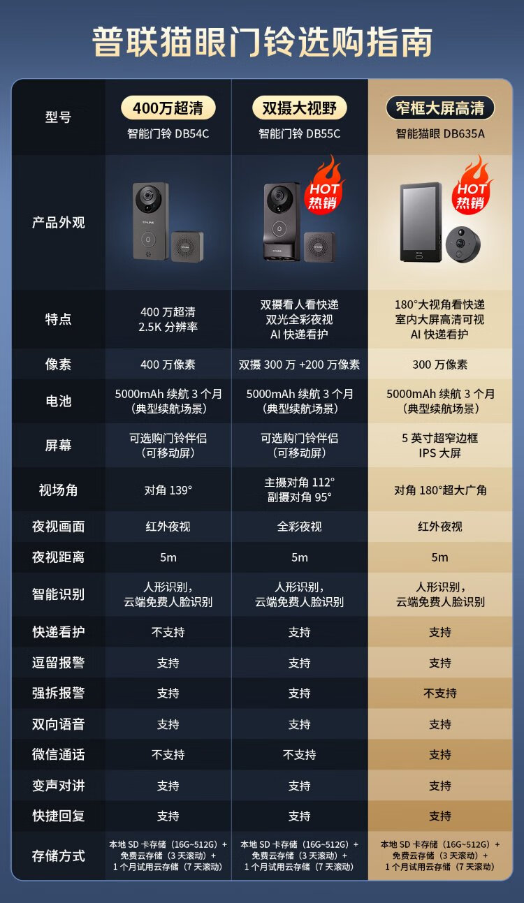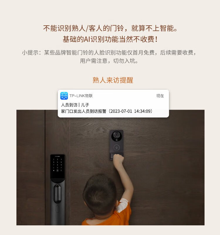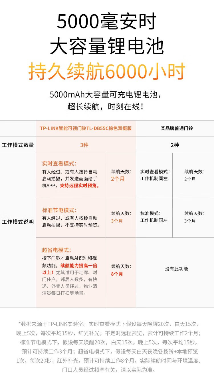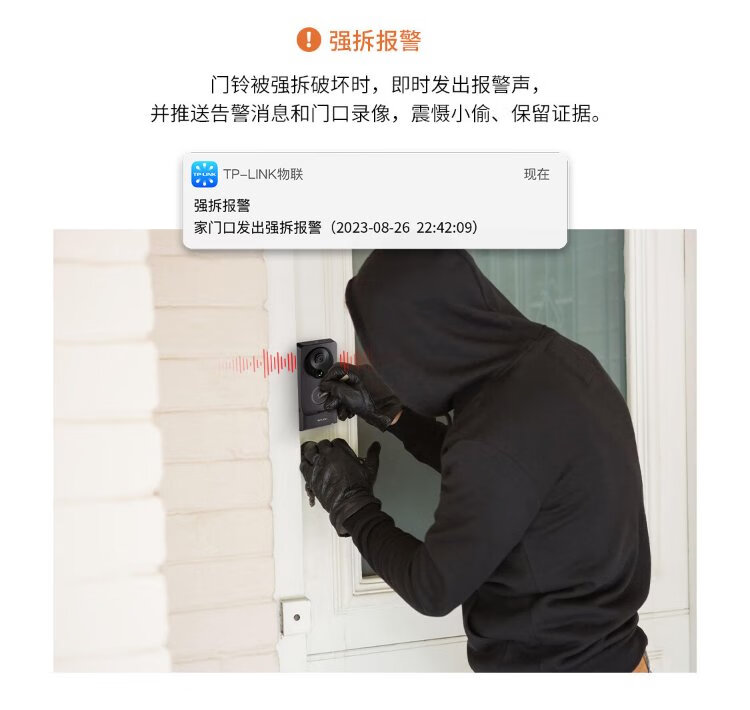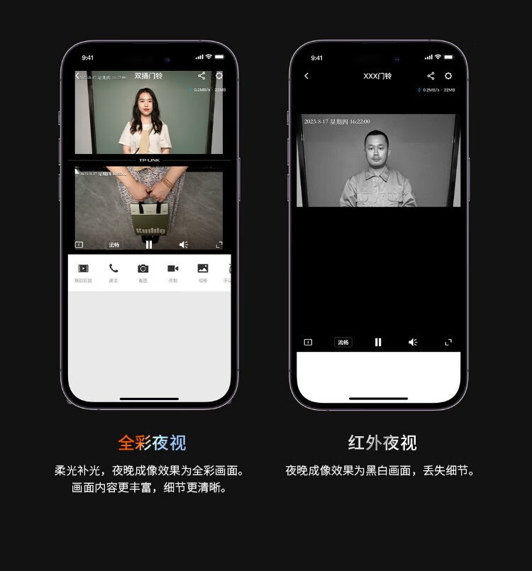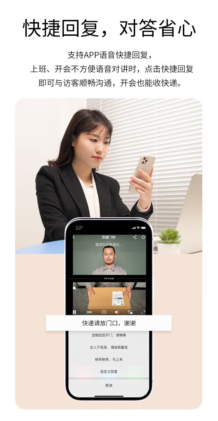 普联(TP-LINK)智能双摄可视门铃 电子猫眼家用监控摄像头 全彩夜视 快递看护 逗留强拆报警 远程查看对讲 DB55C