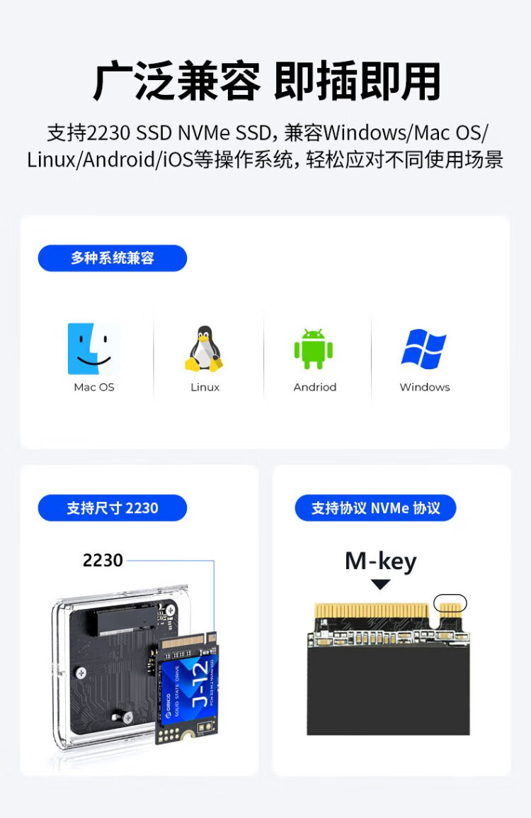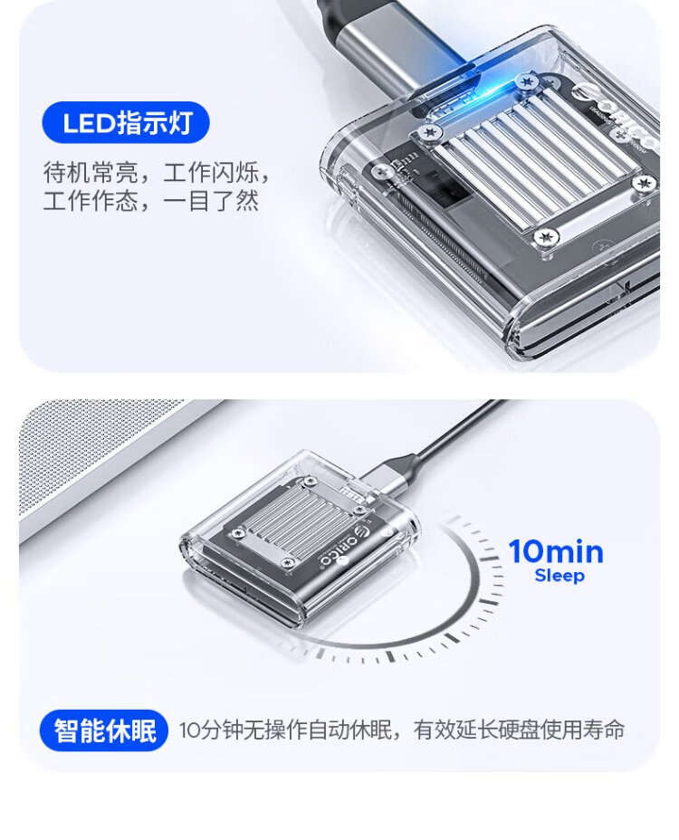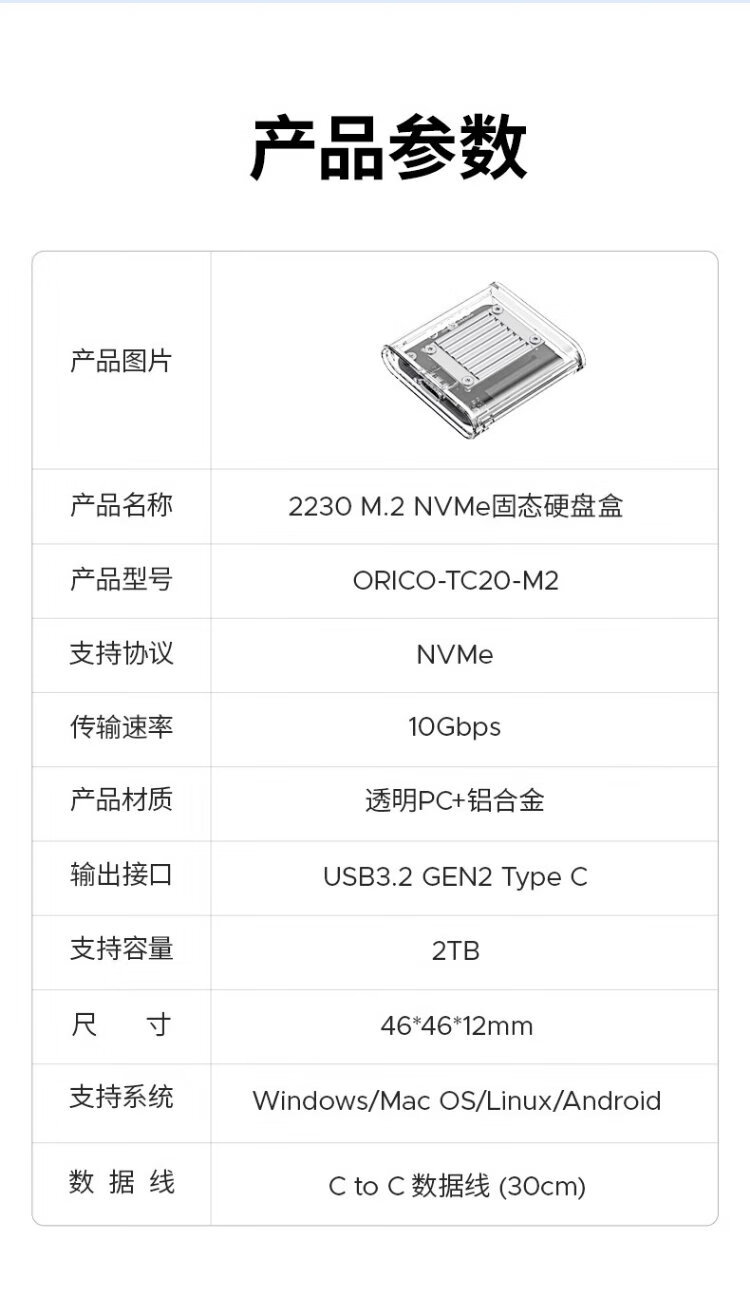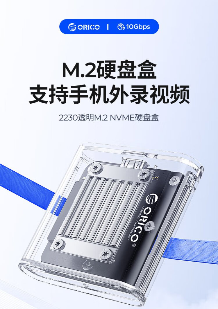 奥睿科(ORICO)2230硬盘盒 M.2移动固态nvme外置硬盘盒子Type-C3.2接口电子尿袋适用手机笔记本平板TC20
