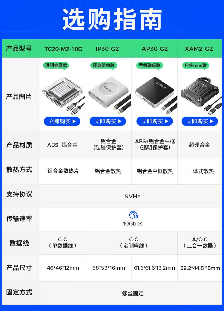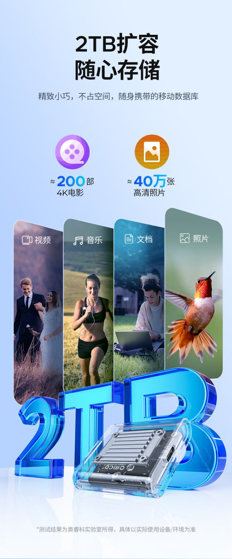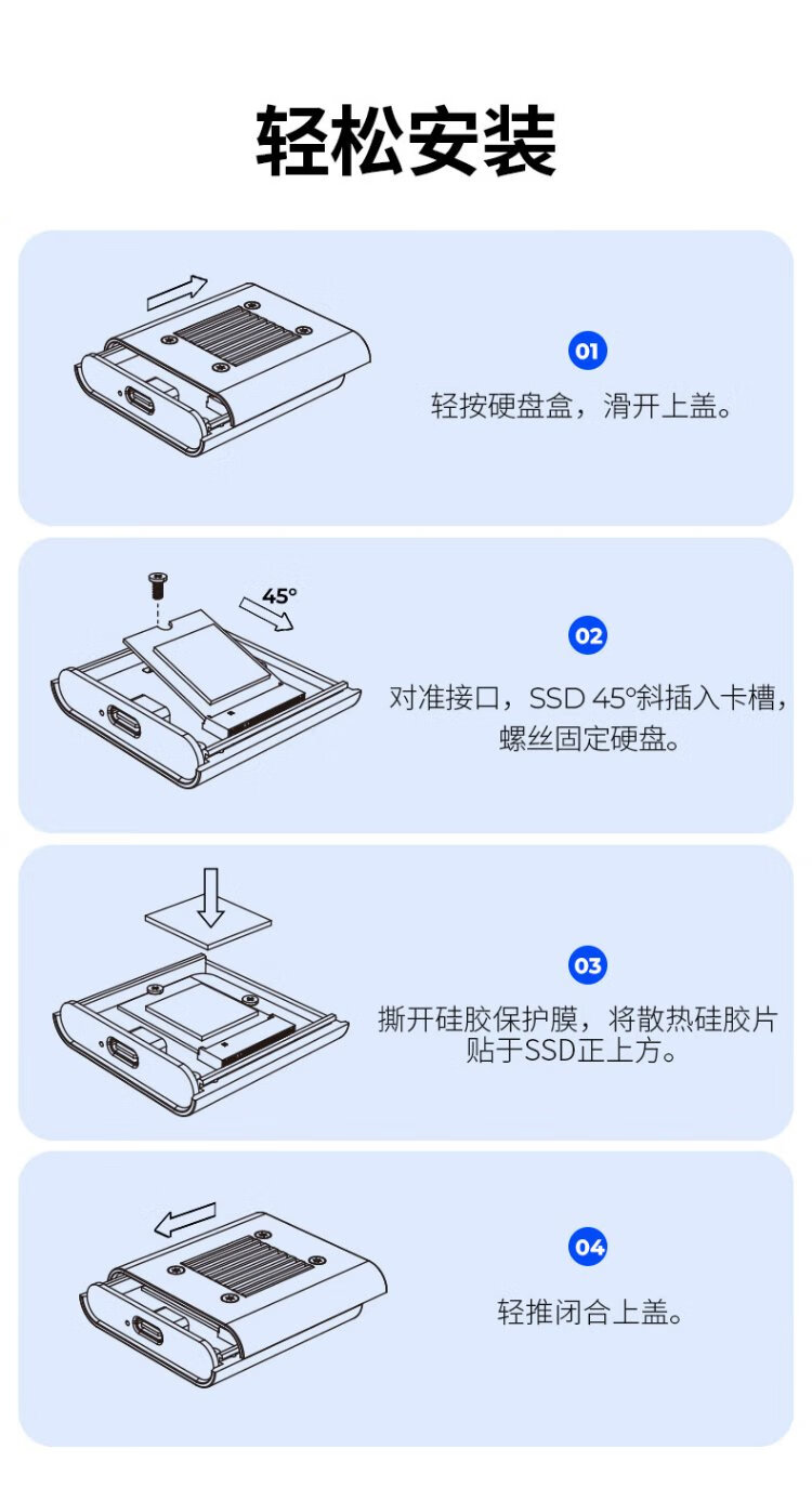 奥睿科(ORICO)2230硬盘盒 M.2移动固态nvme外置硬盘盒子Type-C3.2接口电子尿袋适用手机笔记本平板TC20
