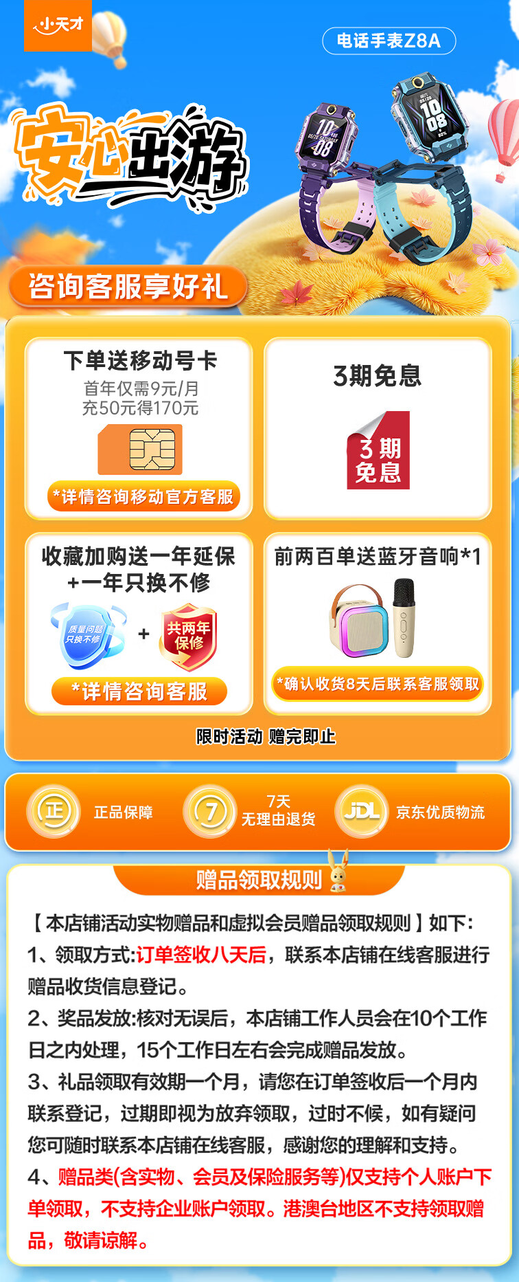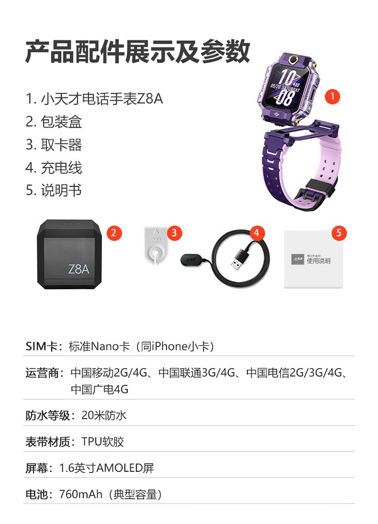 小天才儿童电话手表Z8A山湖蓝 防水GPS定位智能手表 男女孩学生儿童4G视频拍照双摄手表男女表