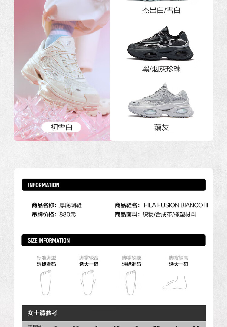 FILA FUSION Fila trendige Marke Damenschuhe Laufschuhe BIANCOIII Sportschuhe lässig 2025 trendige Schuhe mit dicken Sohlen