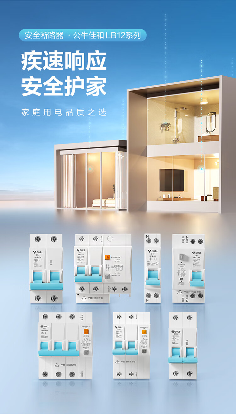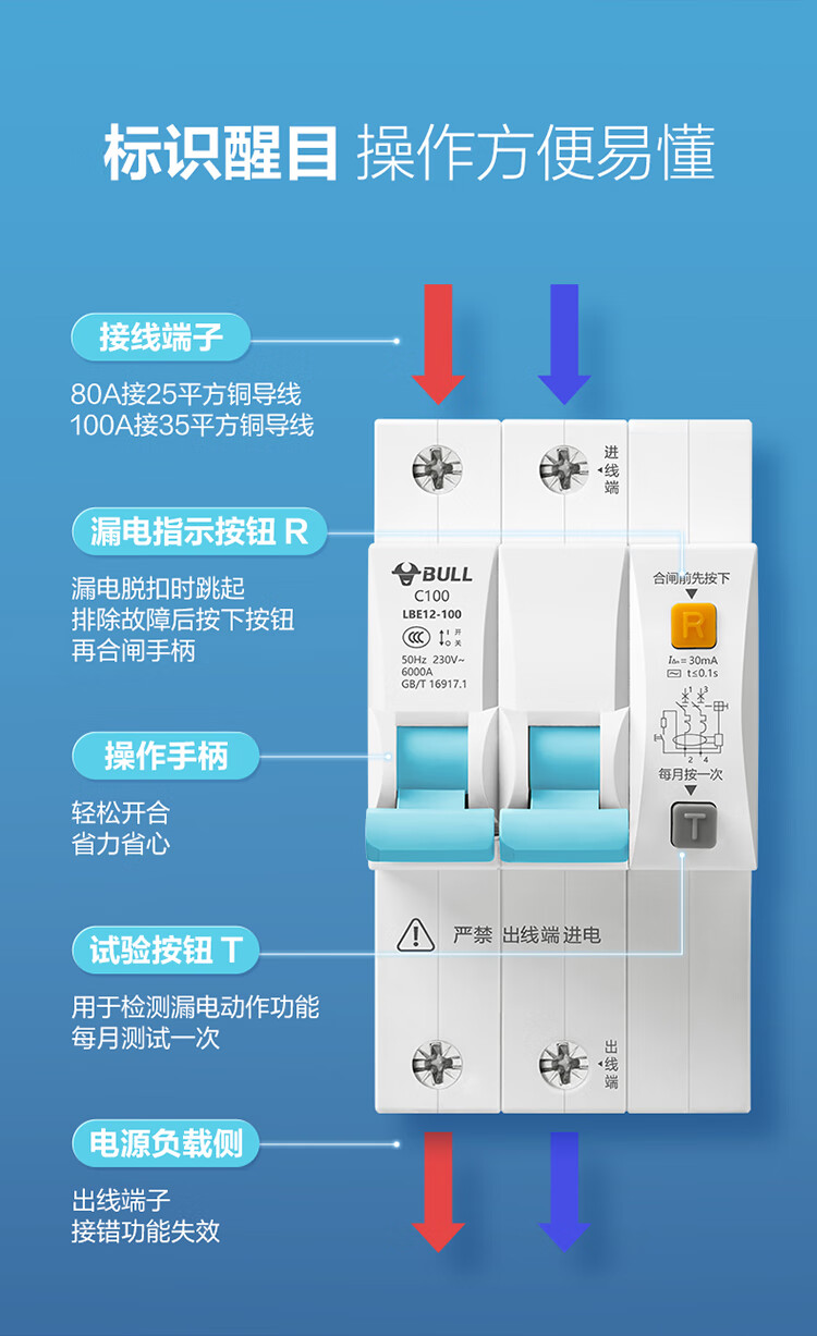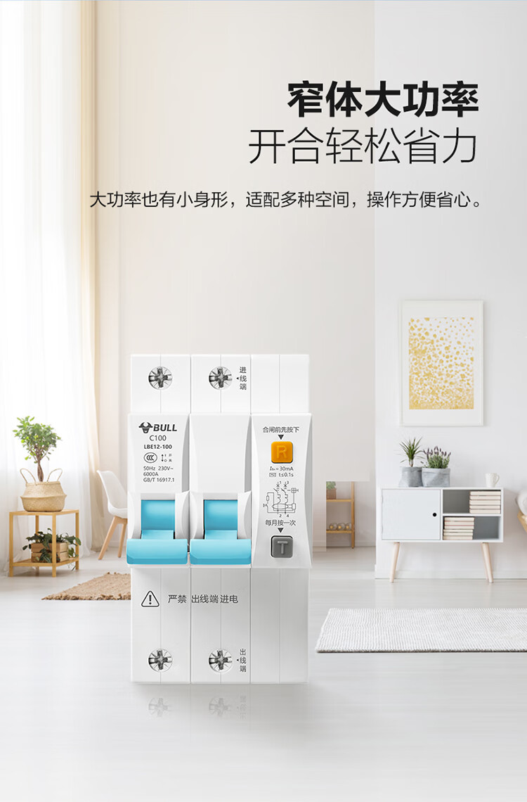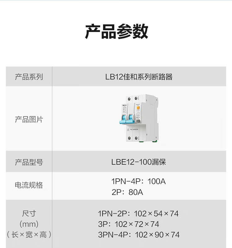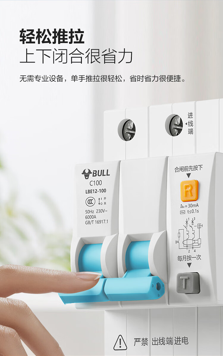 公牛(BULL)佳和LBE12漏电保护器 2P漏保断路器 家用大功率 2P100A