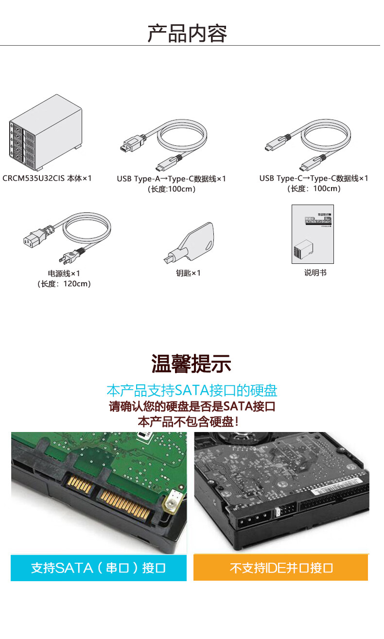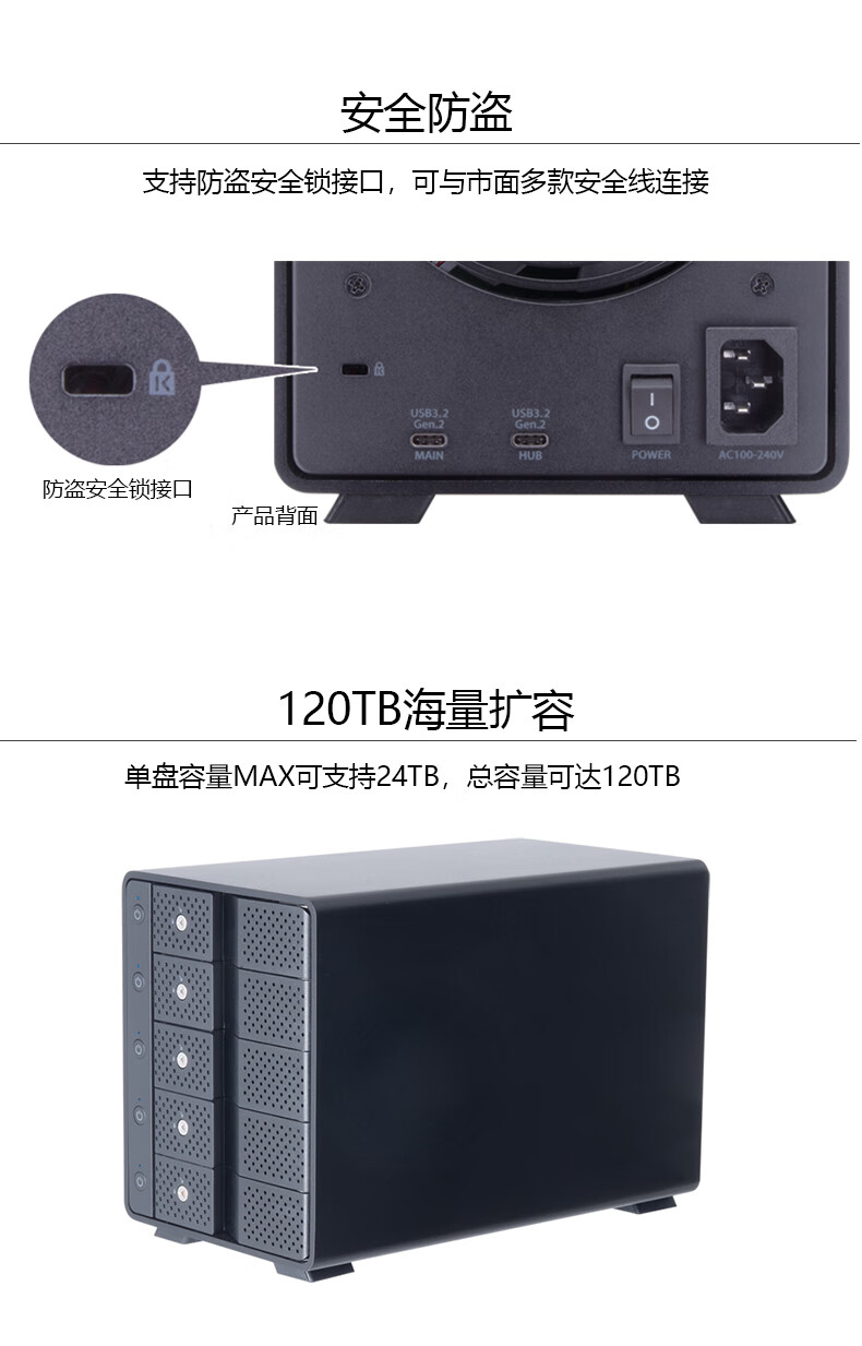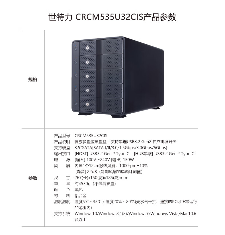 Shiteri 3.5-inch 5-bay hard drive enclosure CRCM535U32CIS supports USB3.2Type-C interface with serial function and supports a total of 120TB