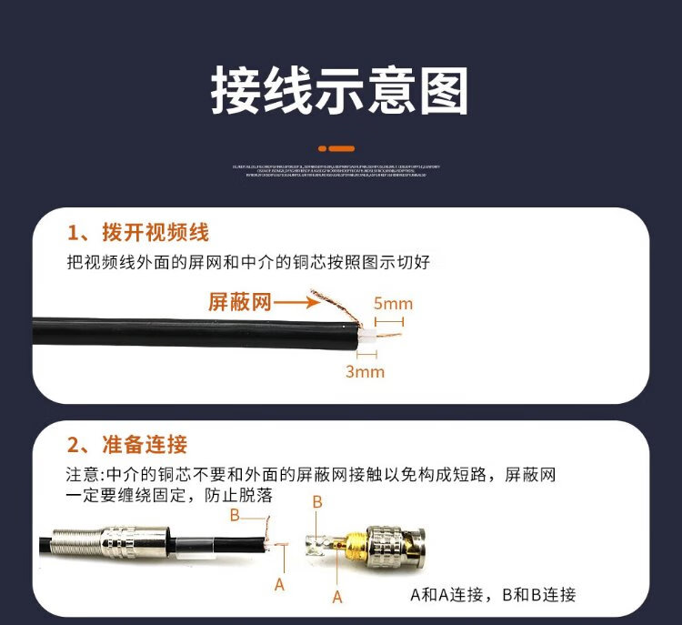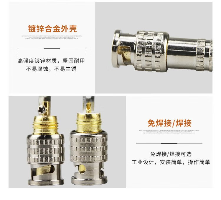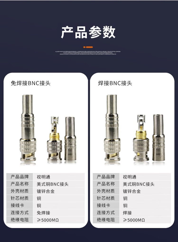 视明通 免焊BNC接头铜芯 安防监控配件 模拟摄像头同轴视频线连接器Q9头SMT-BNC/Q9