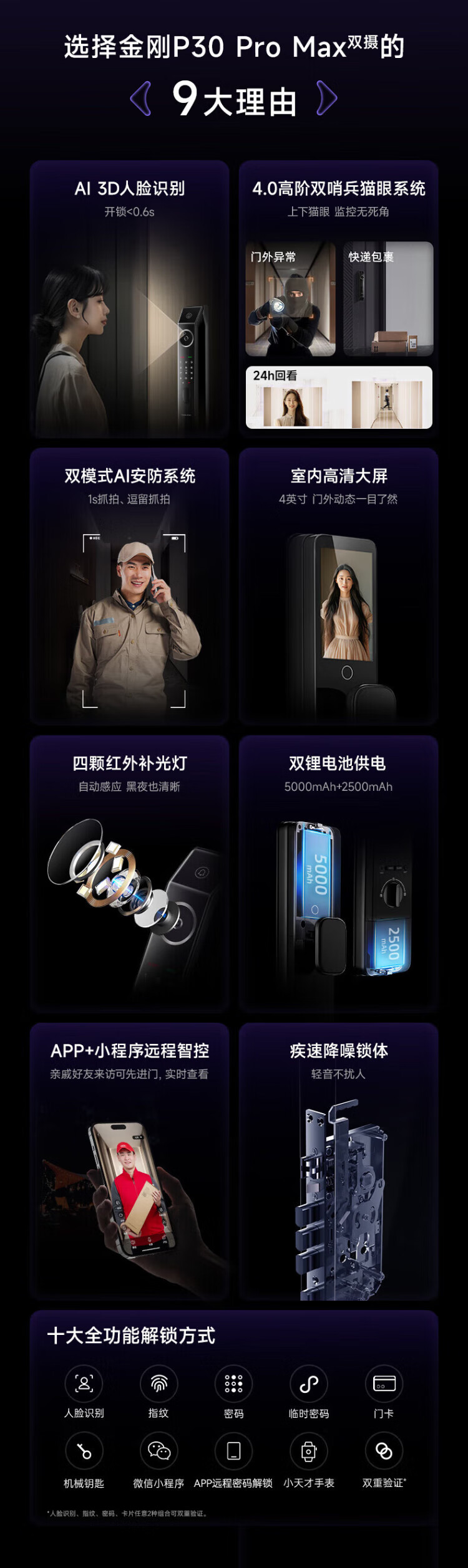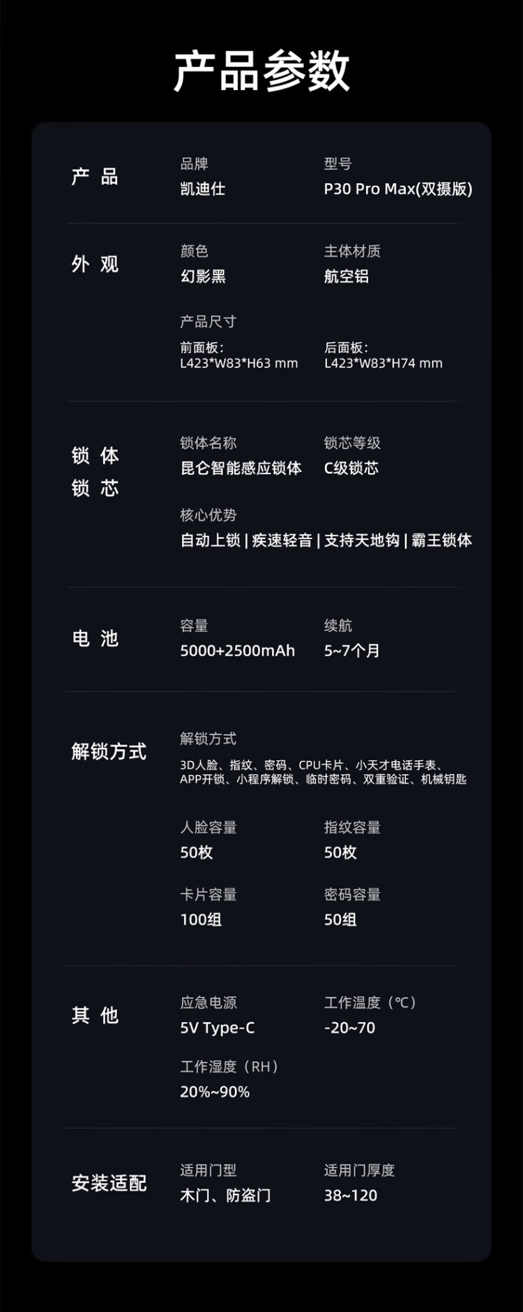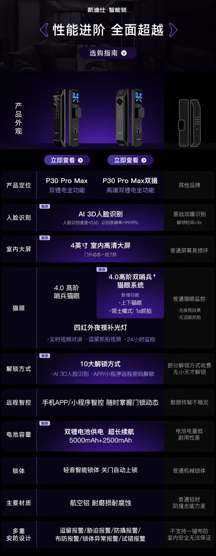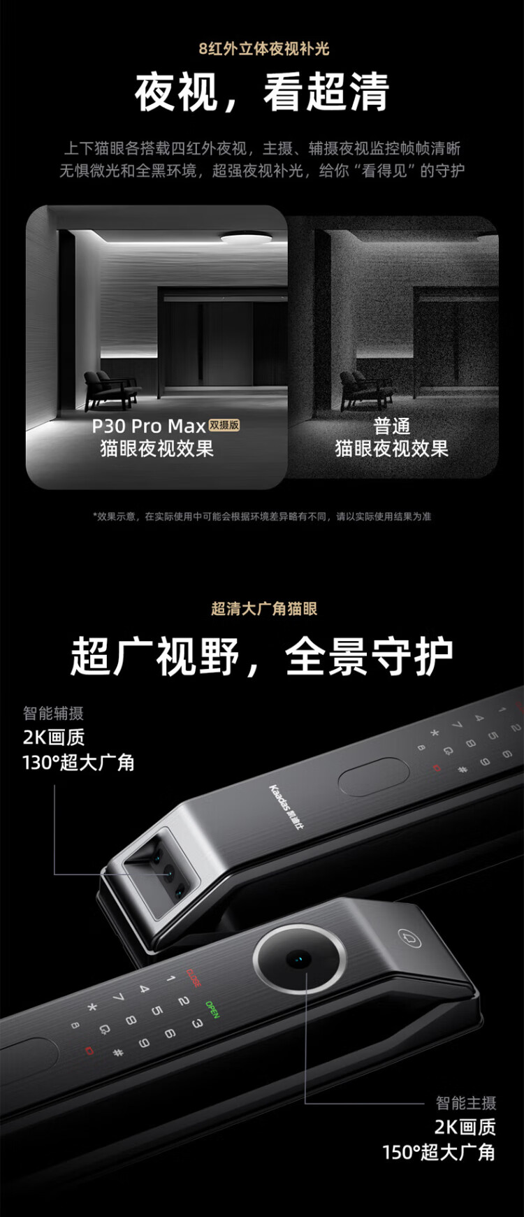 Kaadas smart door lock dual camera face recognition visible cat eye large screen fingerprint lock King Kong P30 Pro Max dual camera