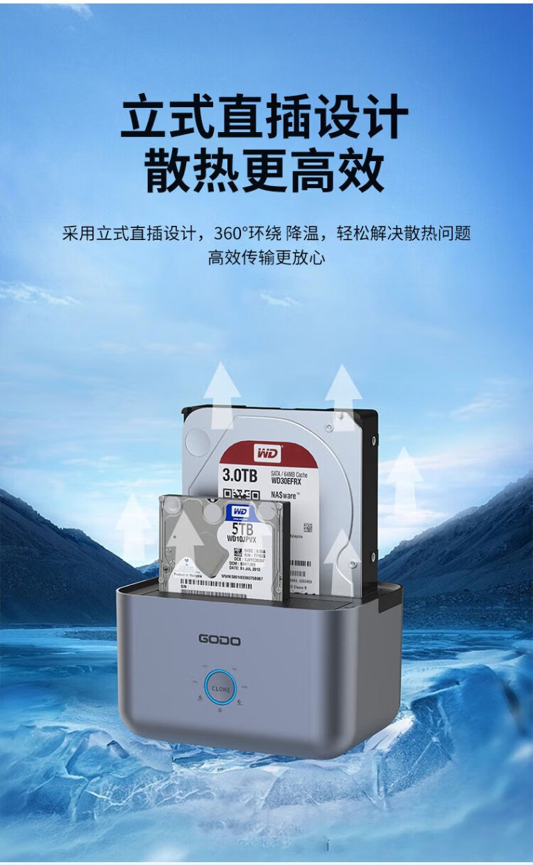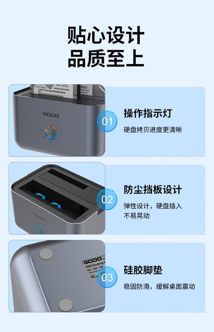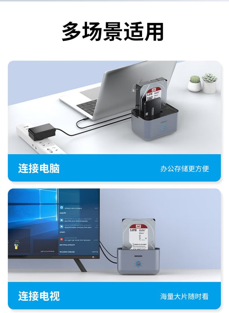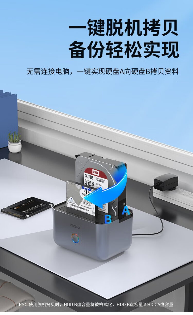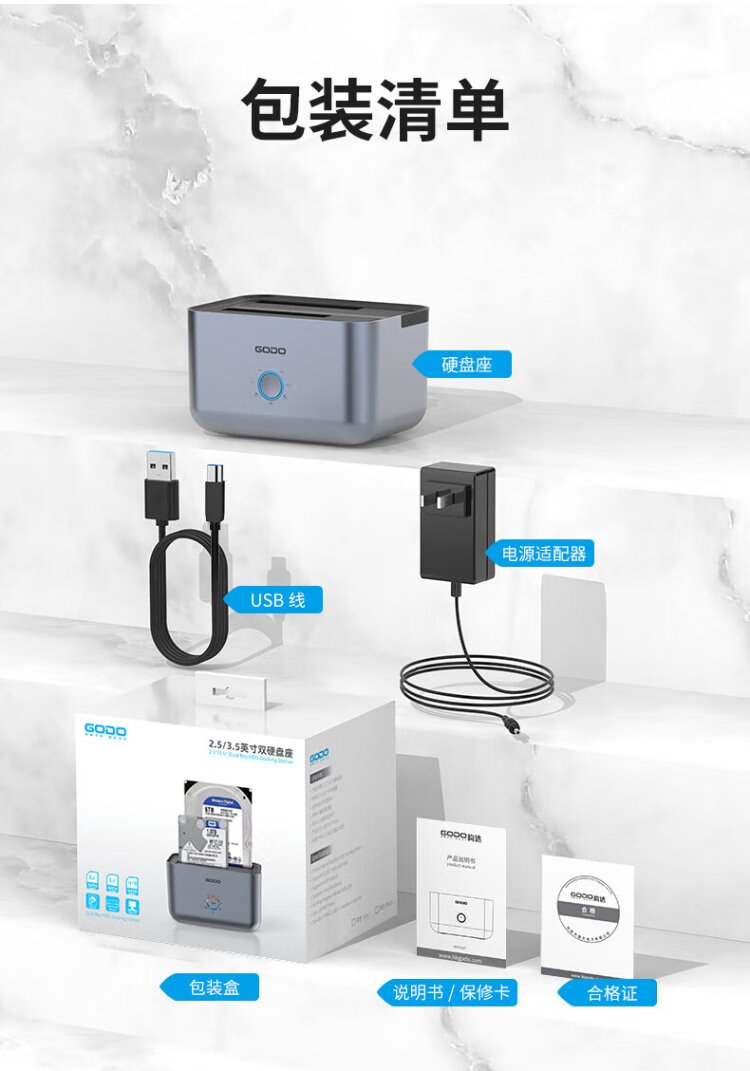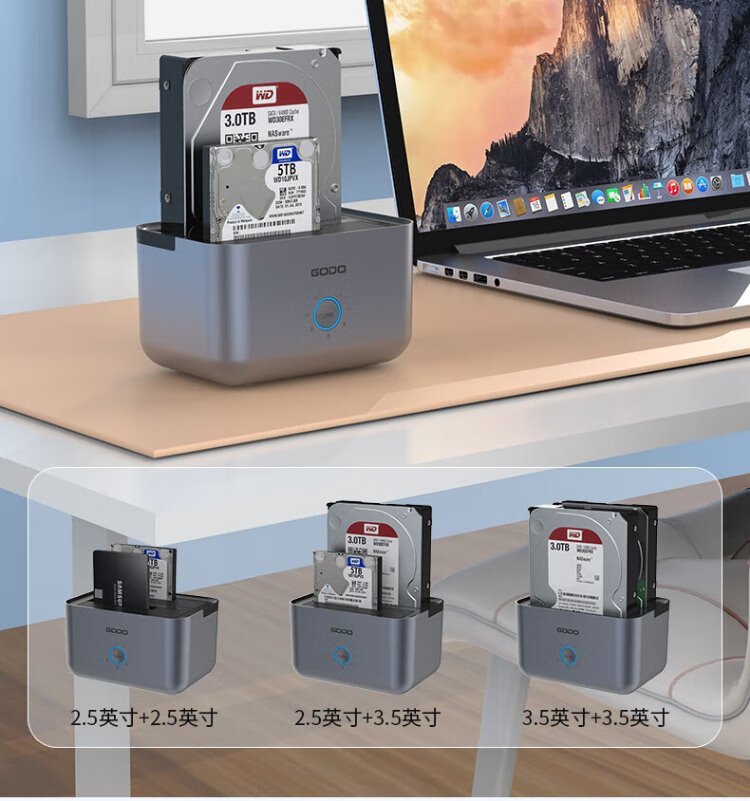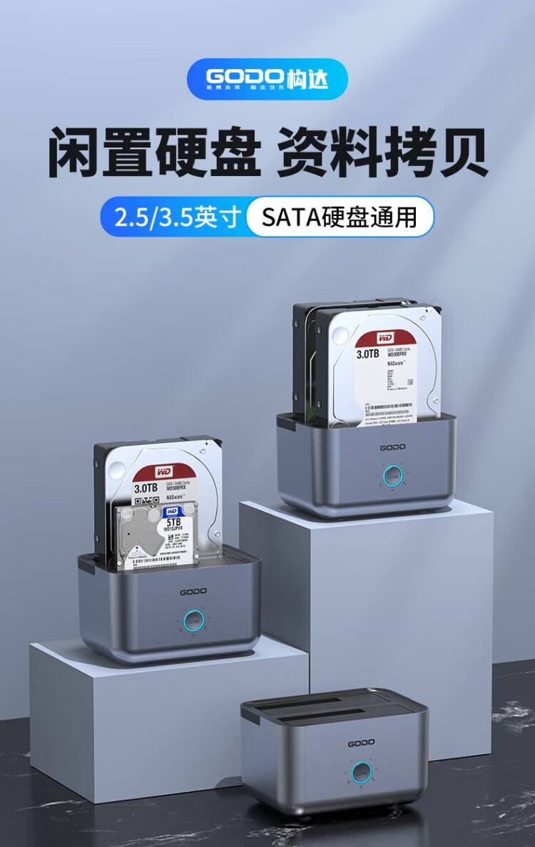 GODO机械固态硬盘盒底座2.5/3.5英寸USB3.0外接SATA双盘位适用笔记本台式电脑外置移动硬盘盒通用