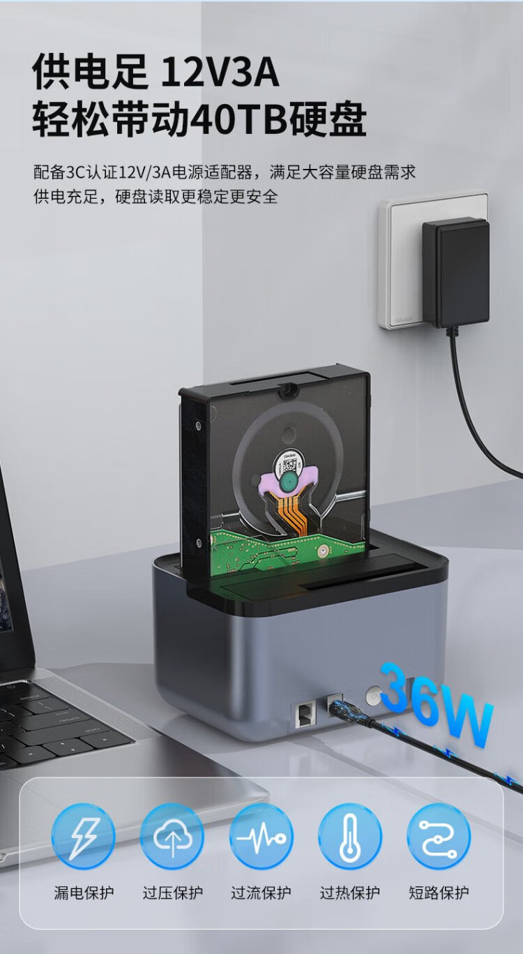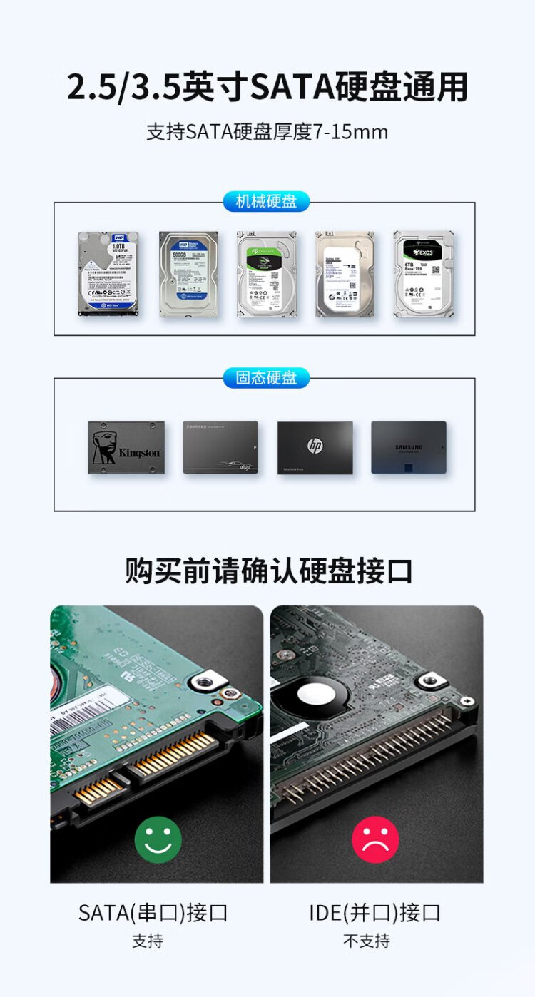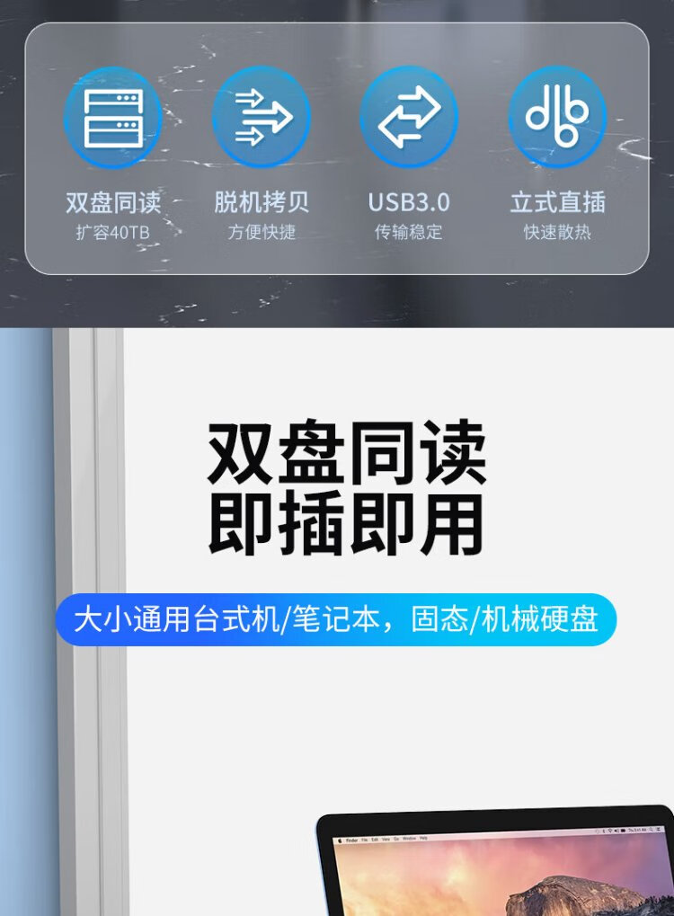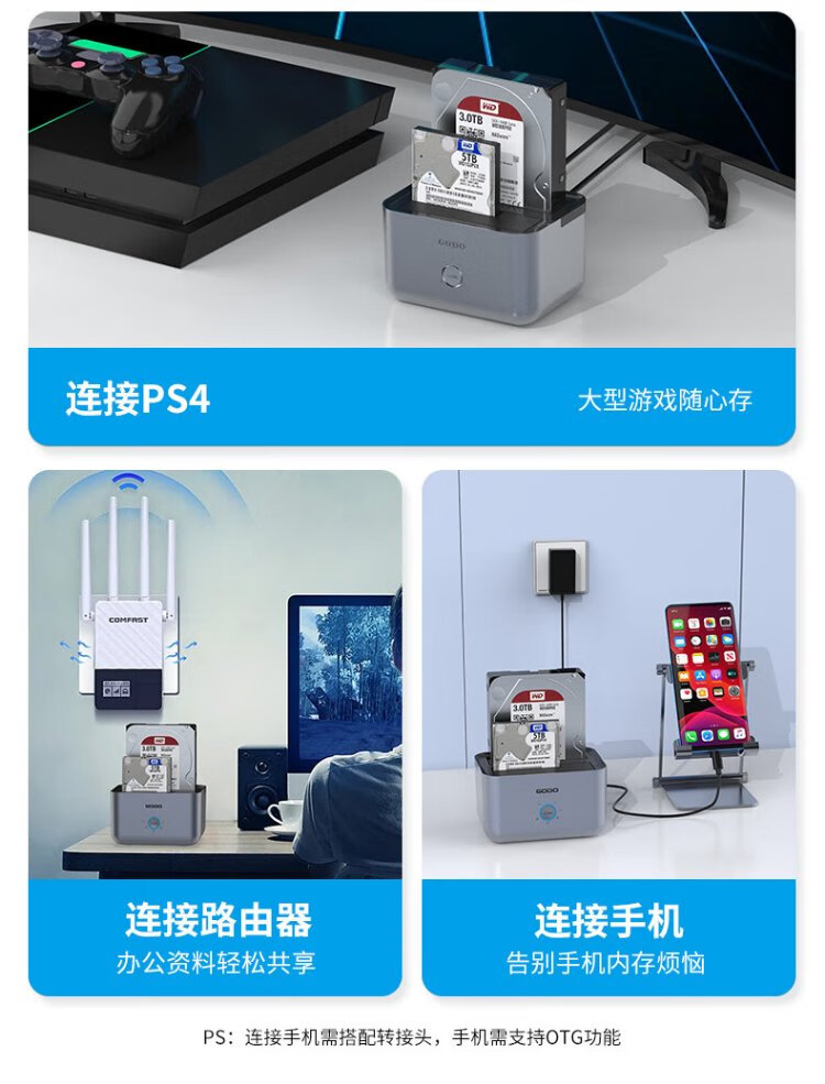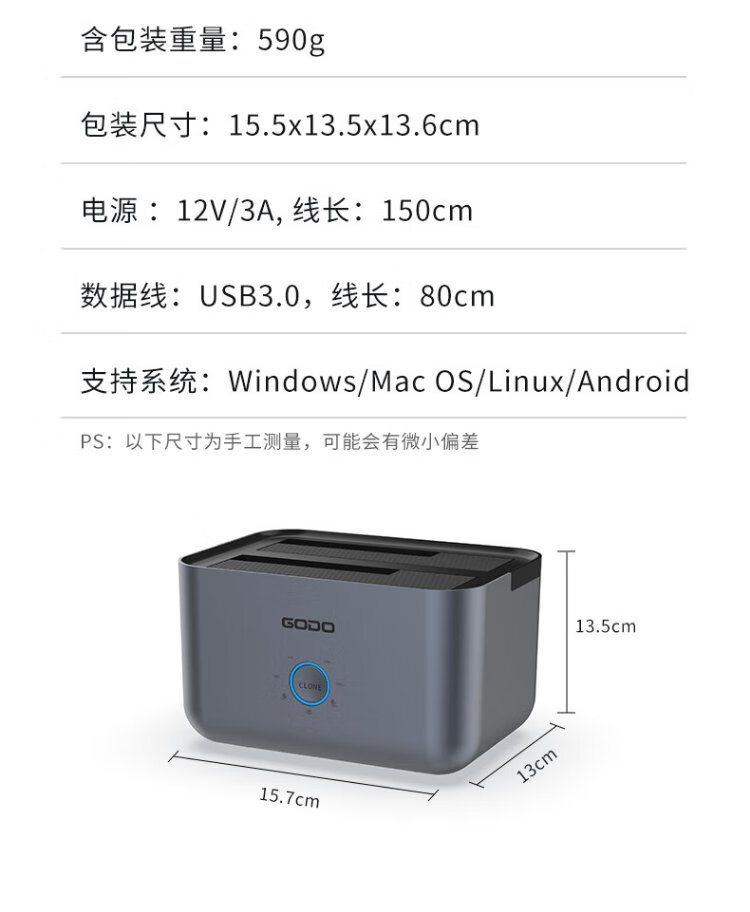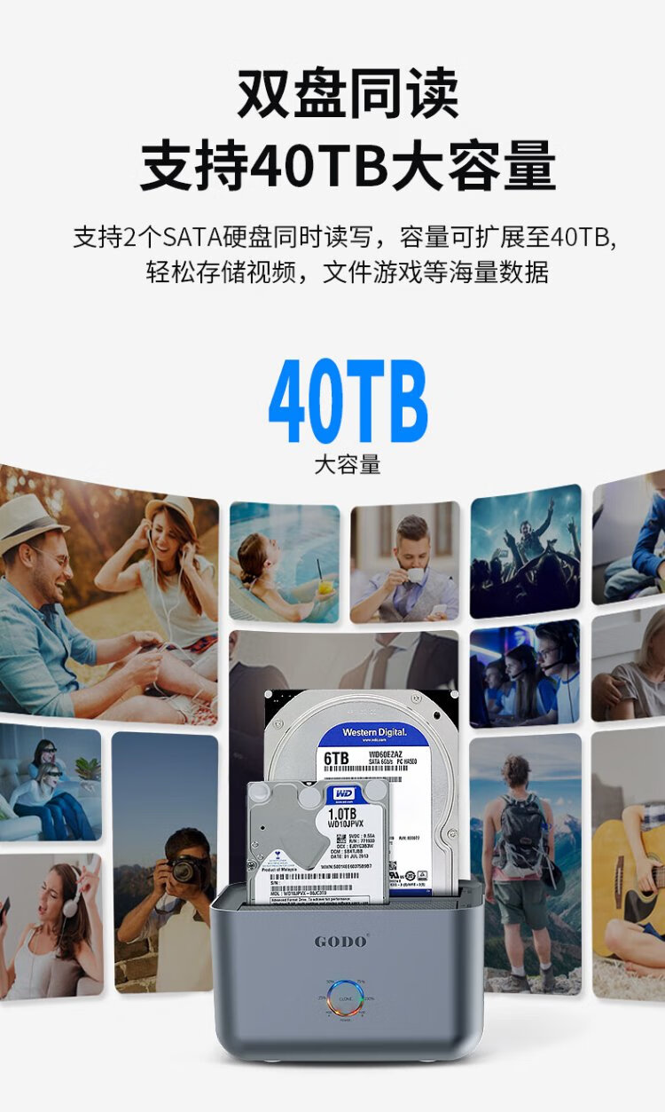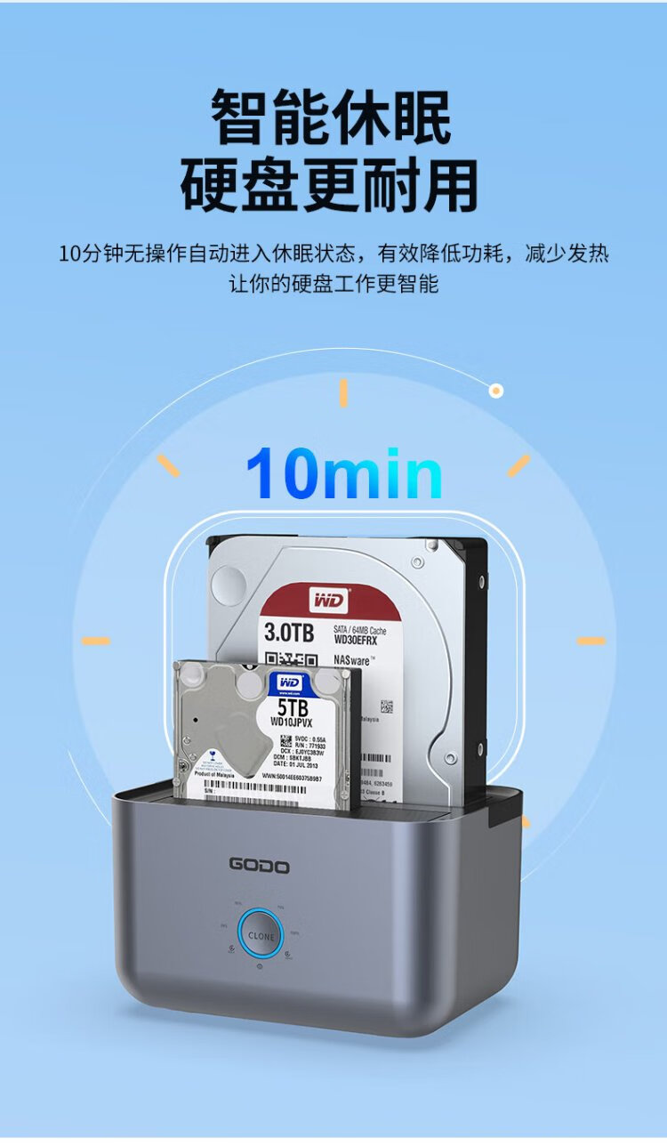 GODO机械固态硬盘盒底座2.5/3.5英寸USB3.0外接SATA双盘位适用笔记本台式电脑外置移动硬盘盒通用