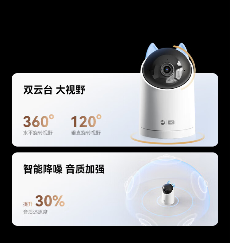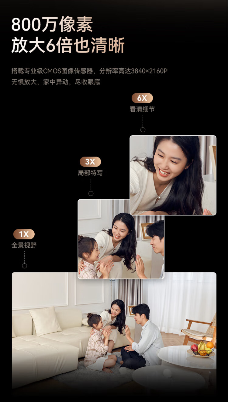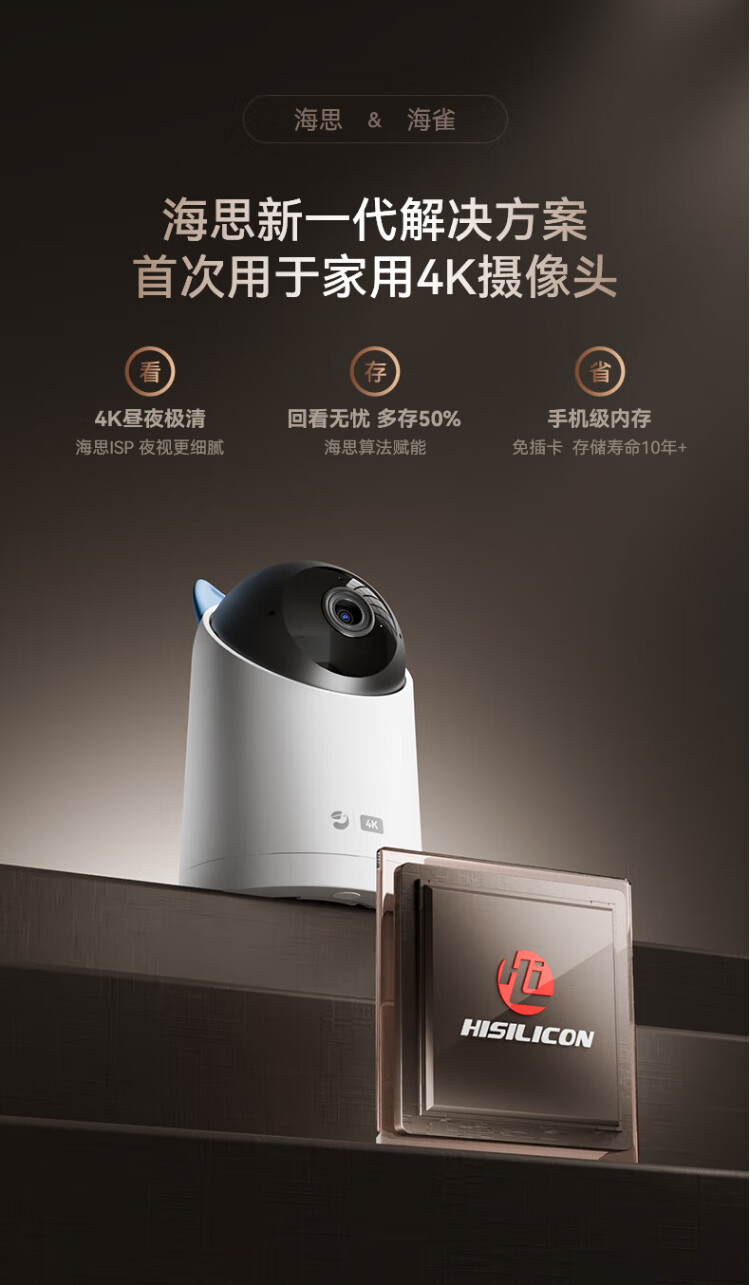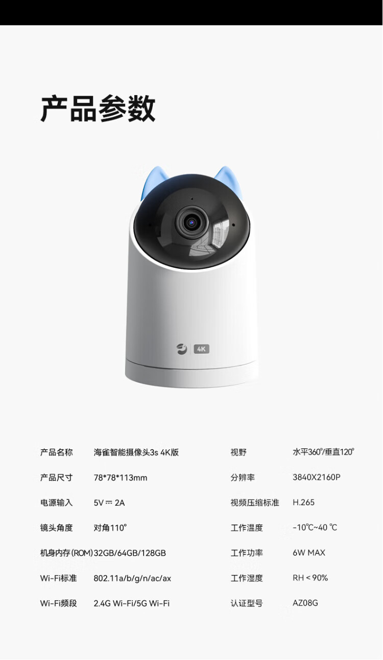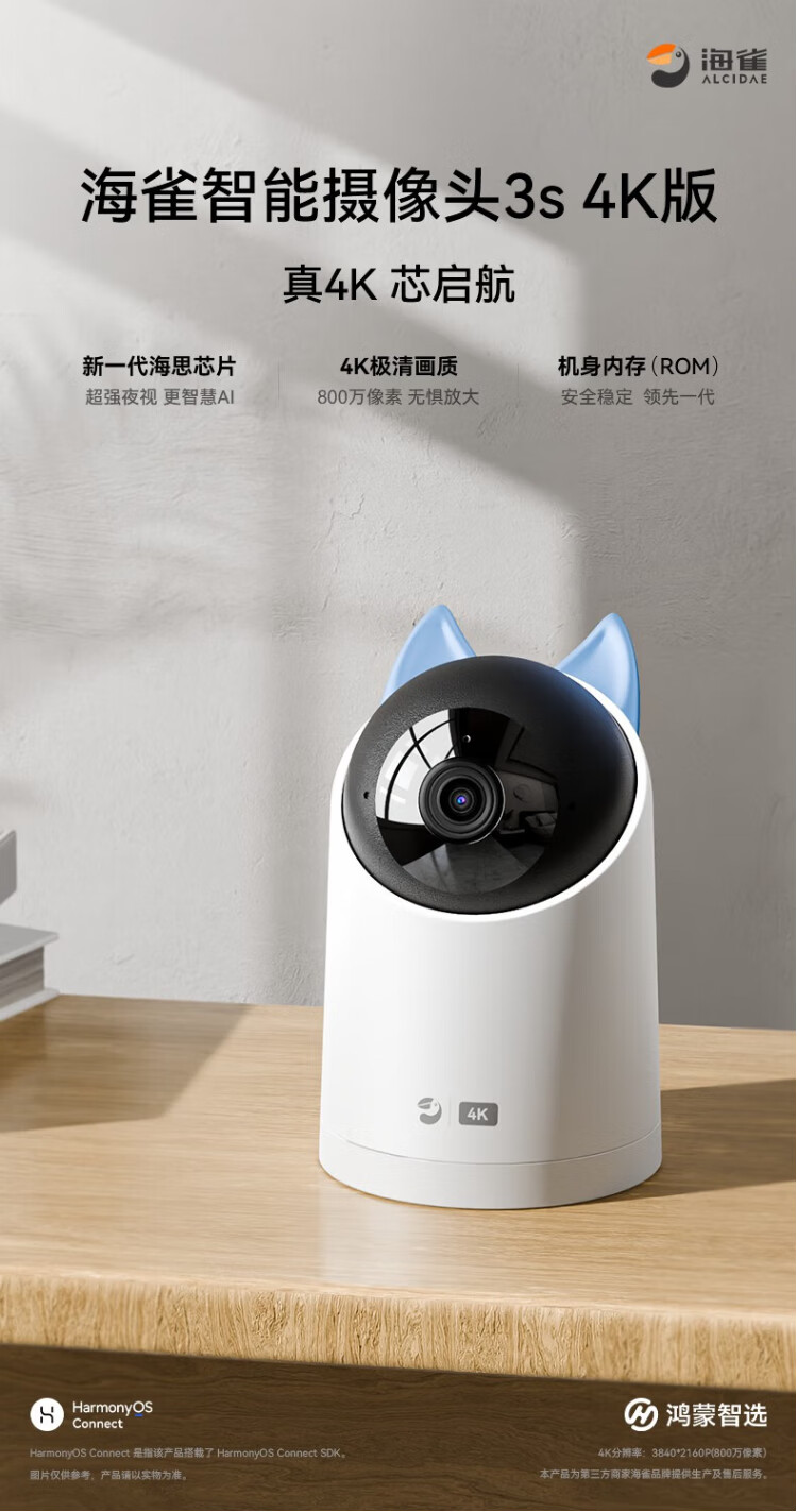 海雀800万摄像头家用监控器360度无死角带夜视4K高清全景自动旋转可对话语音母婴宠物室内看护鸿蒙智选