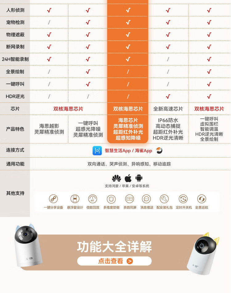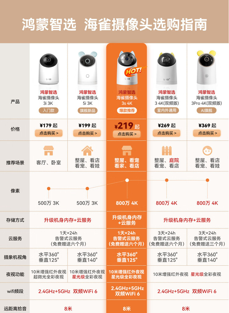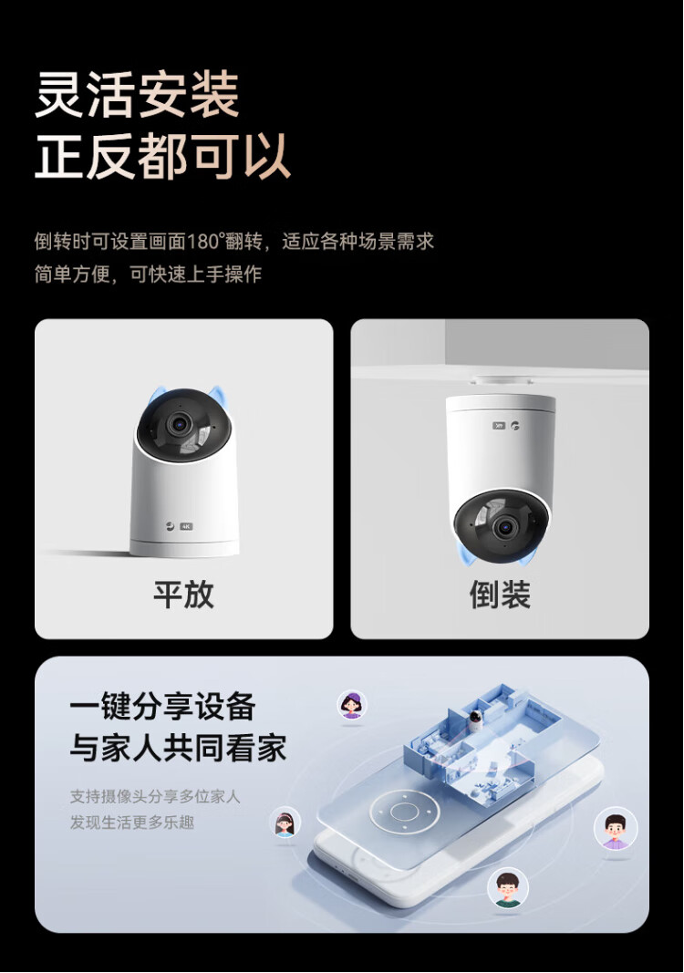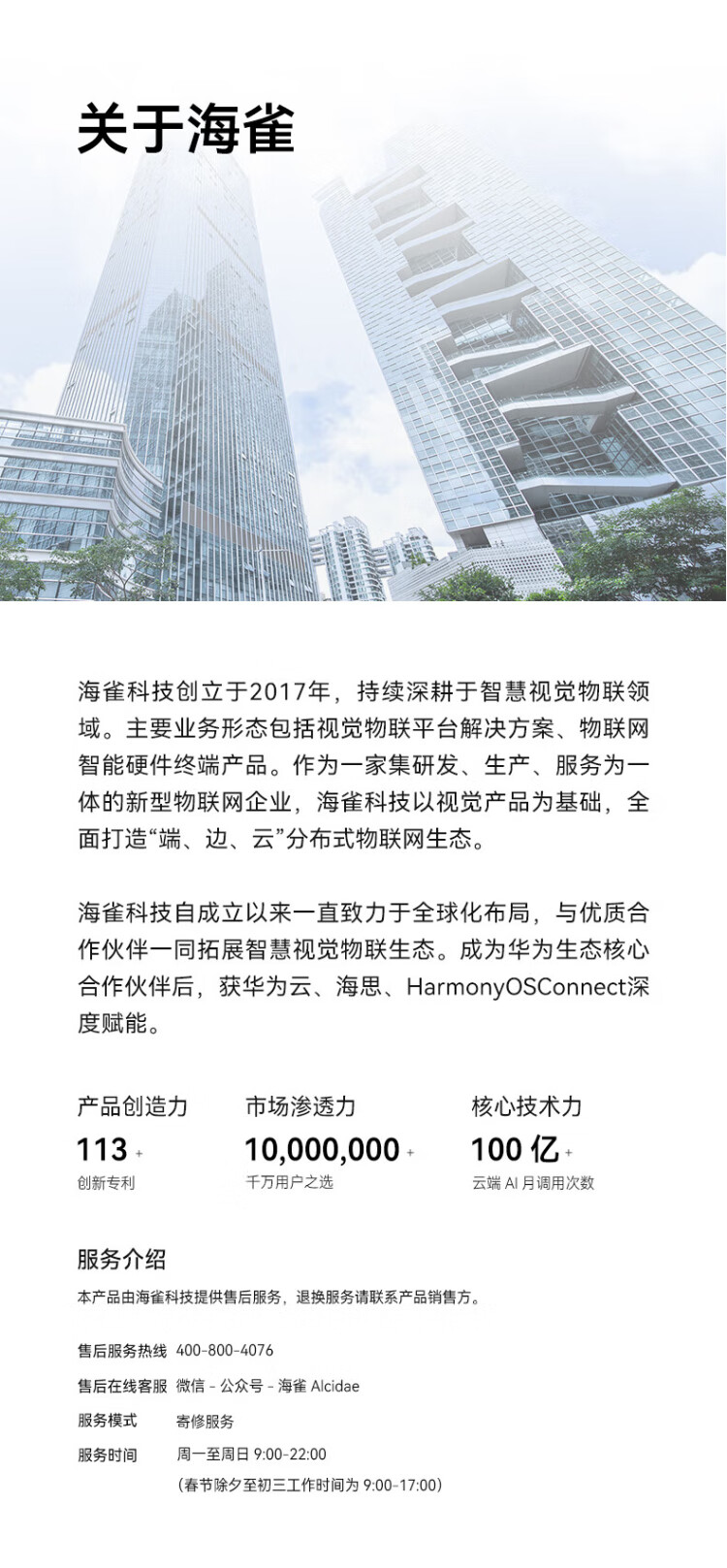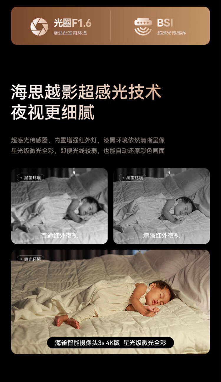 海雀800万摄像头家用监控器360度无死角带夜视4K高清全景自动旋转可对话语音母婴宠物室内看护鸿蒙智选