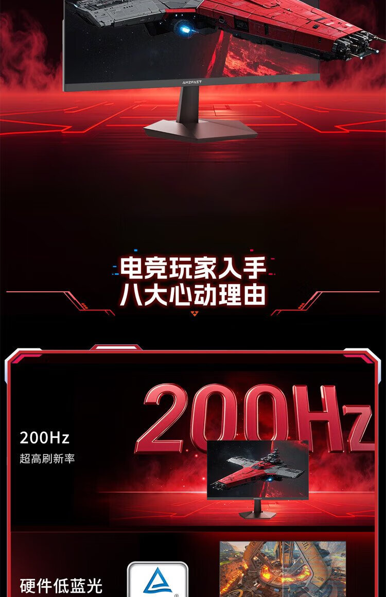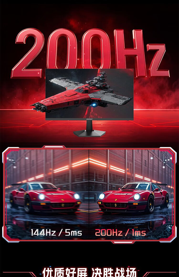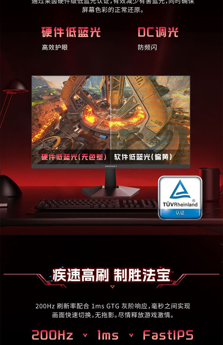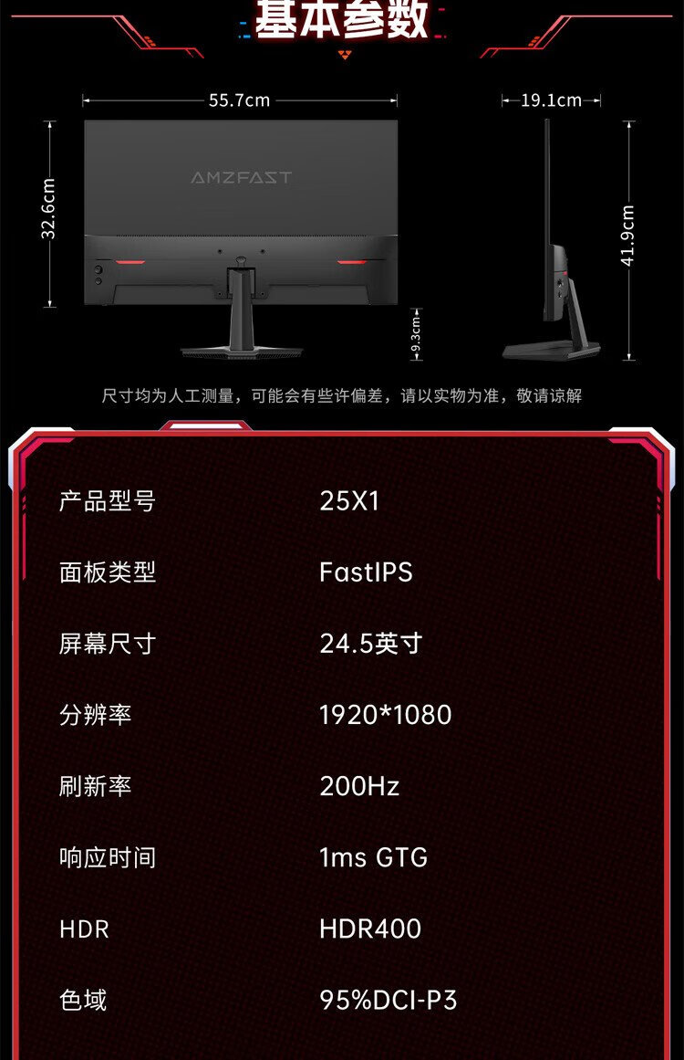 AMZFAST 24.5英寸 200Hz FastIPS电竞办公显示器  HDR400硬件低蓝光认证400nit 1ms响应电脑屏幕 锋鸣25X1