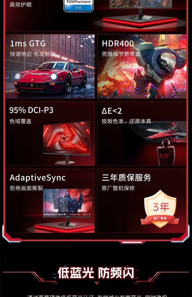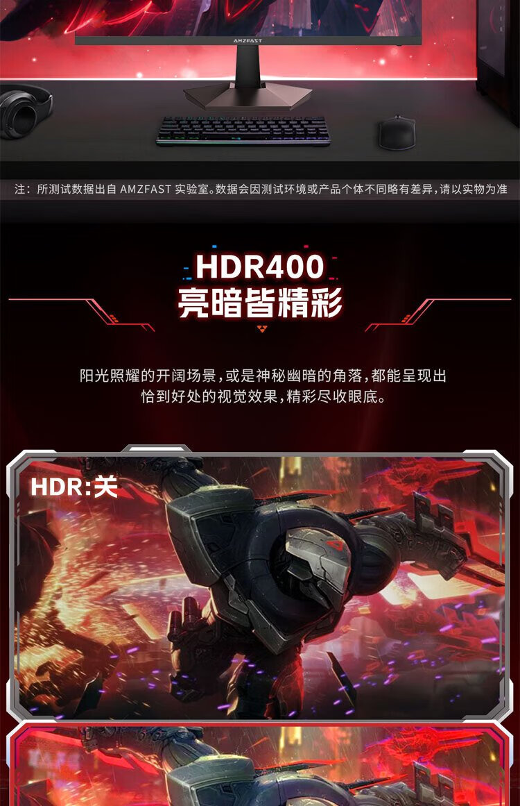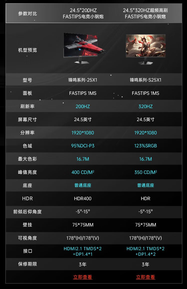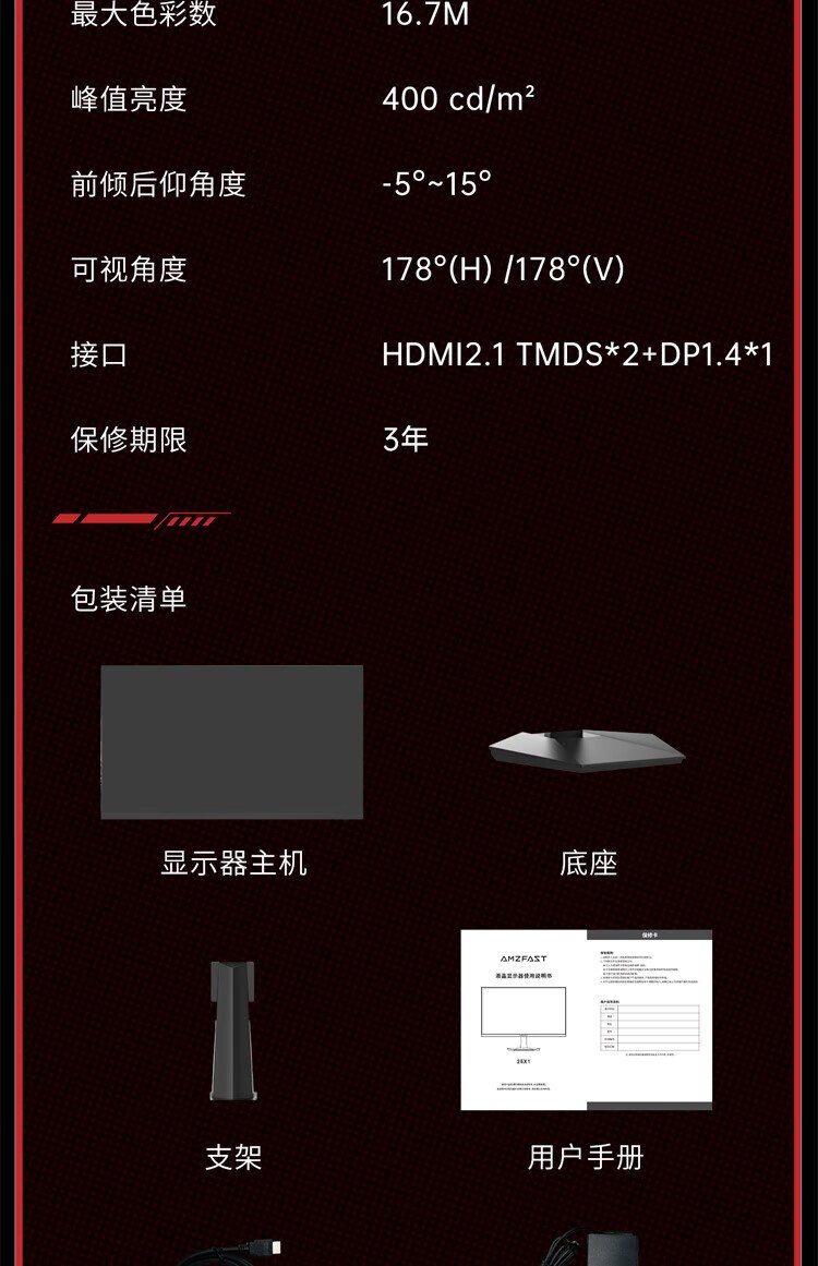 AMZFAST 24.5英寸 200Hz FastIPS电竞办公显示器  HDR400硬件低蓝光认证400nit 1ms响应电脑屏幕 锋鸣25X1