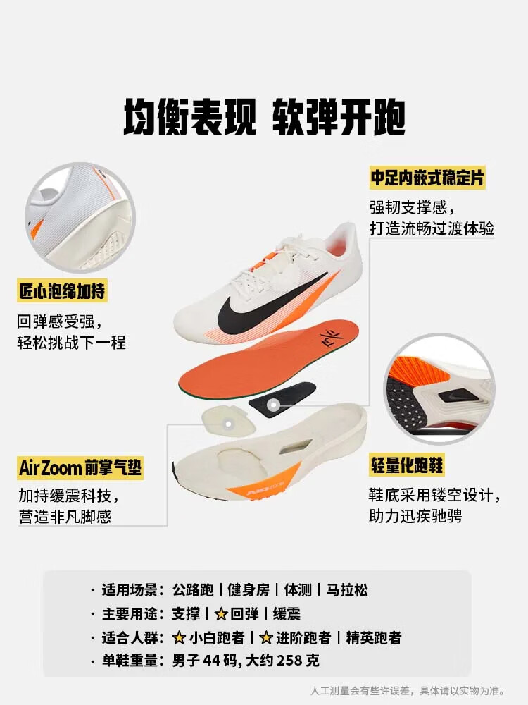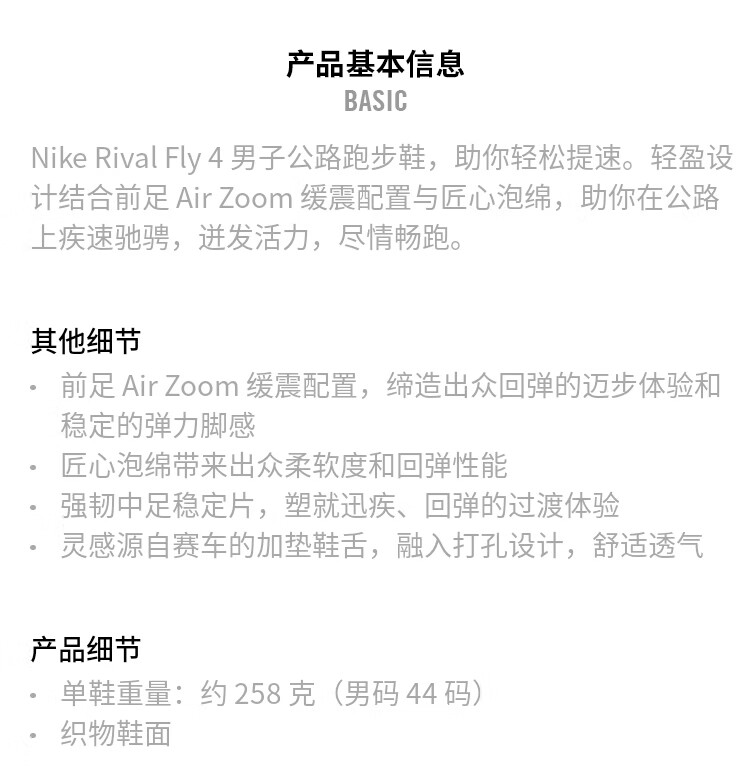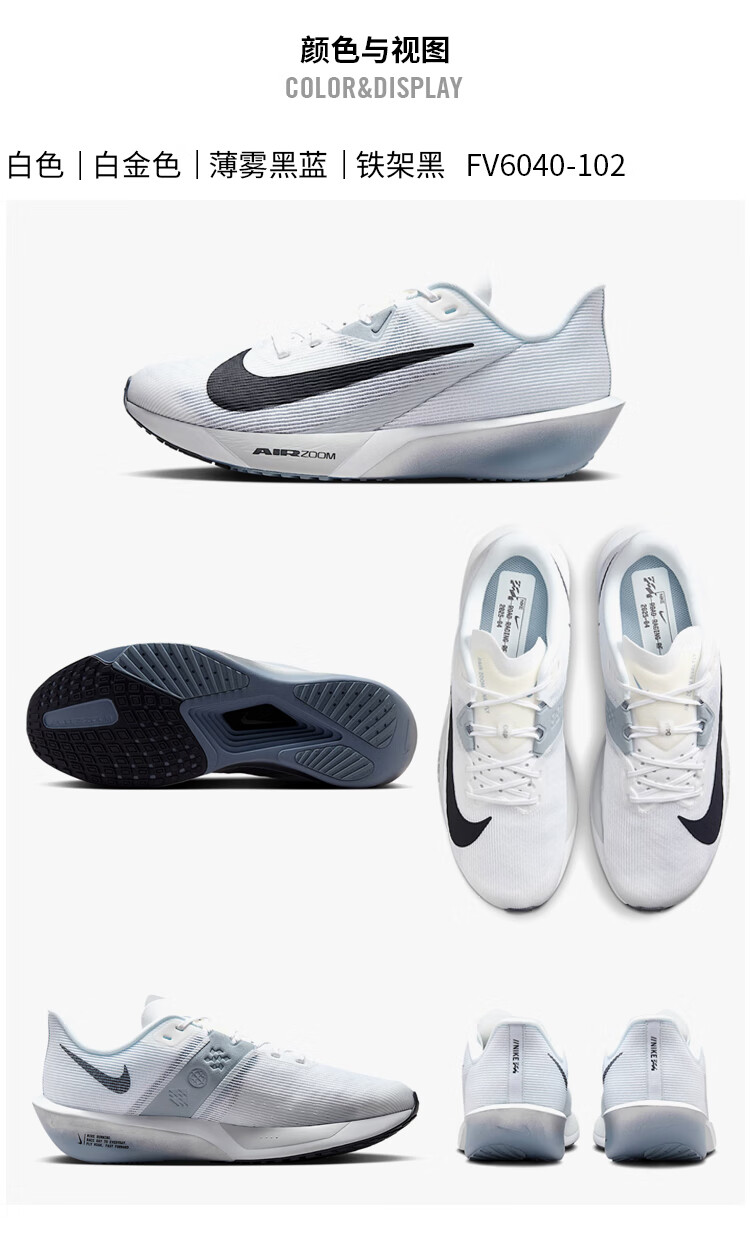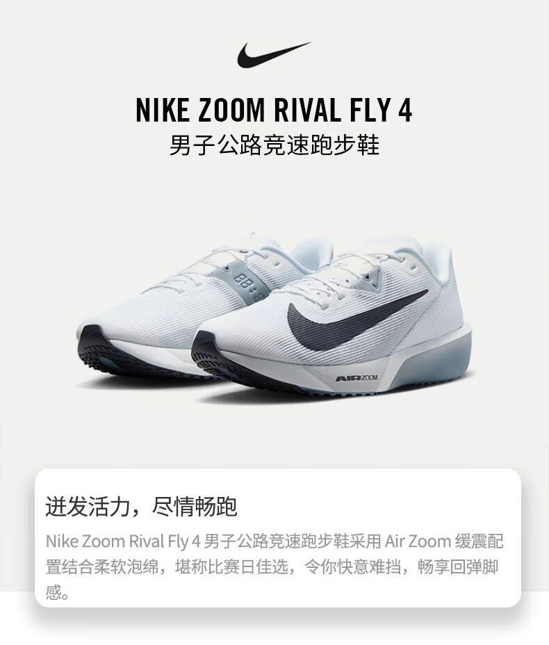 耐克NIKE男子跑步鞋 ZOOM RIVAL FLY 4运动鞋FV6040-102灰白/黑43