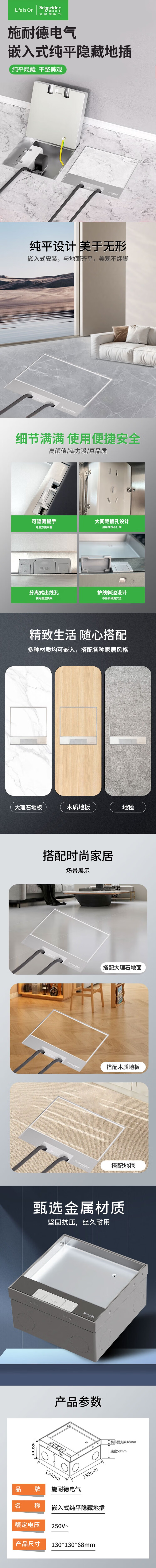 Schneider Electric Bodensteckdose, versteckte Bodensteckdose, Edelstahl, eingebettete Fünf-Loch-Bodensteckdose (mit Bodenkasten)