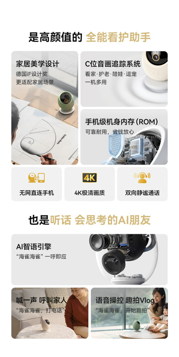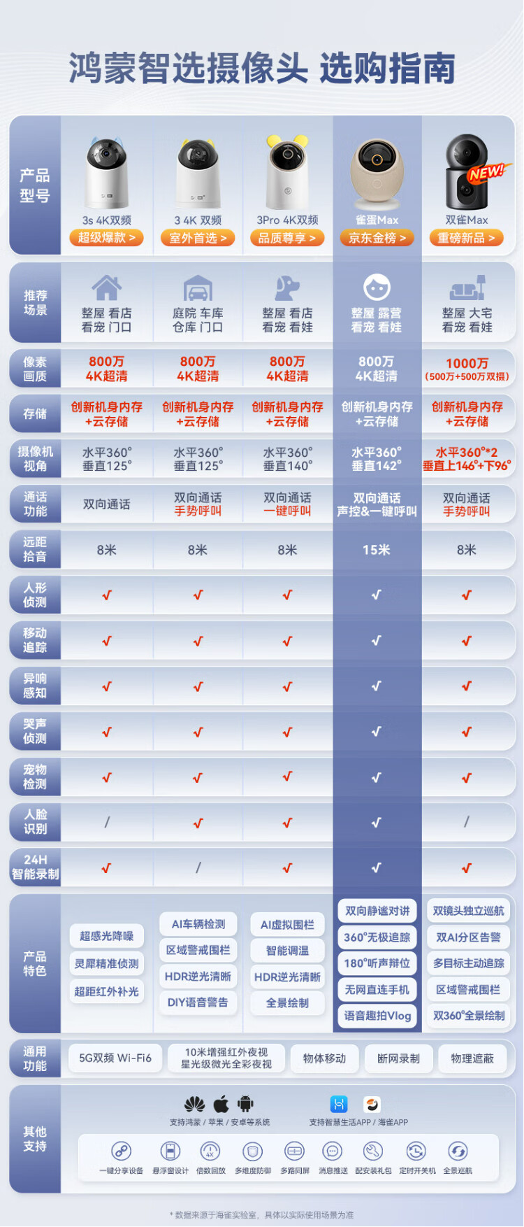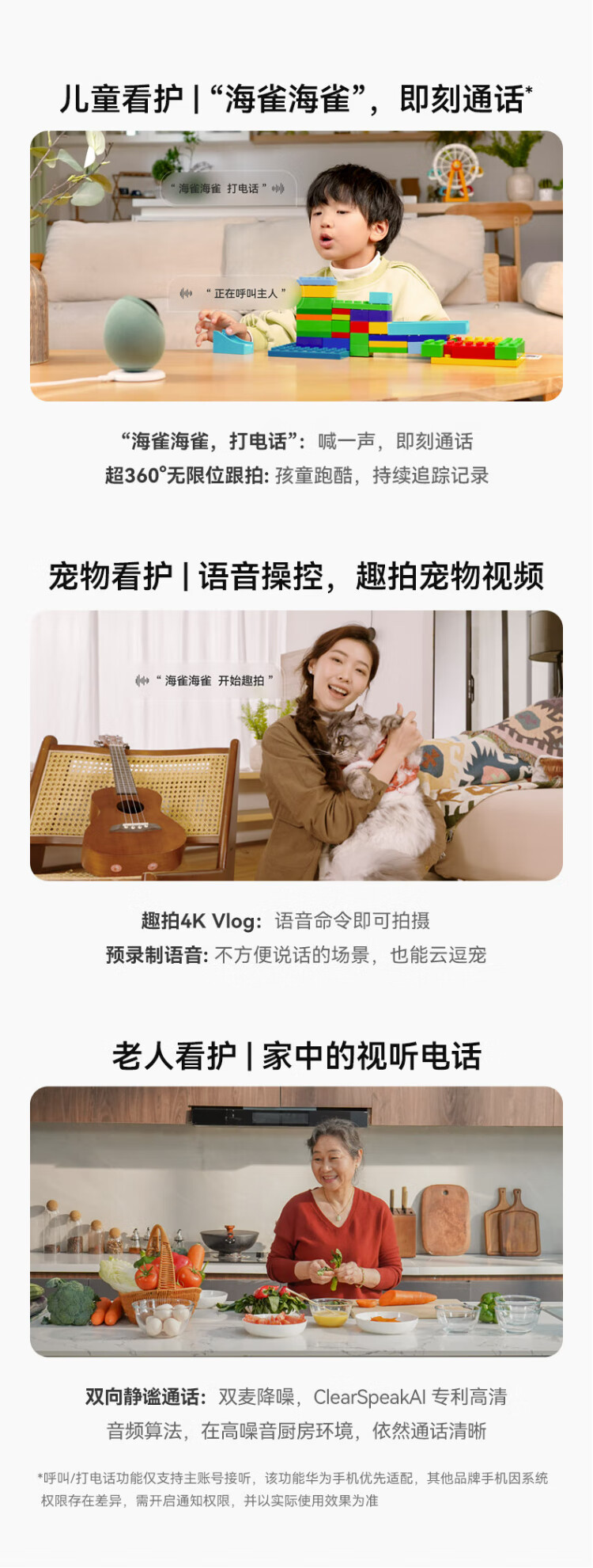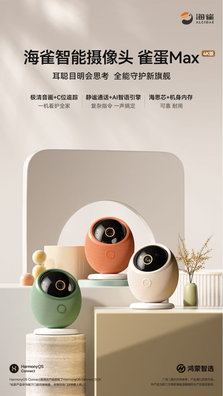 华为智选鸿蒙智选雀蛋Max 摄像头家用监控器360度无死角带夜视全景800万一呼即应海雀室内宠物婴儿看护