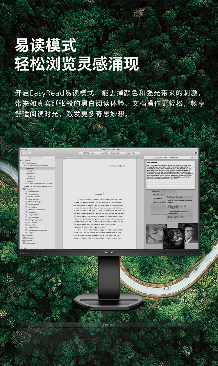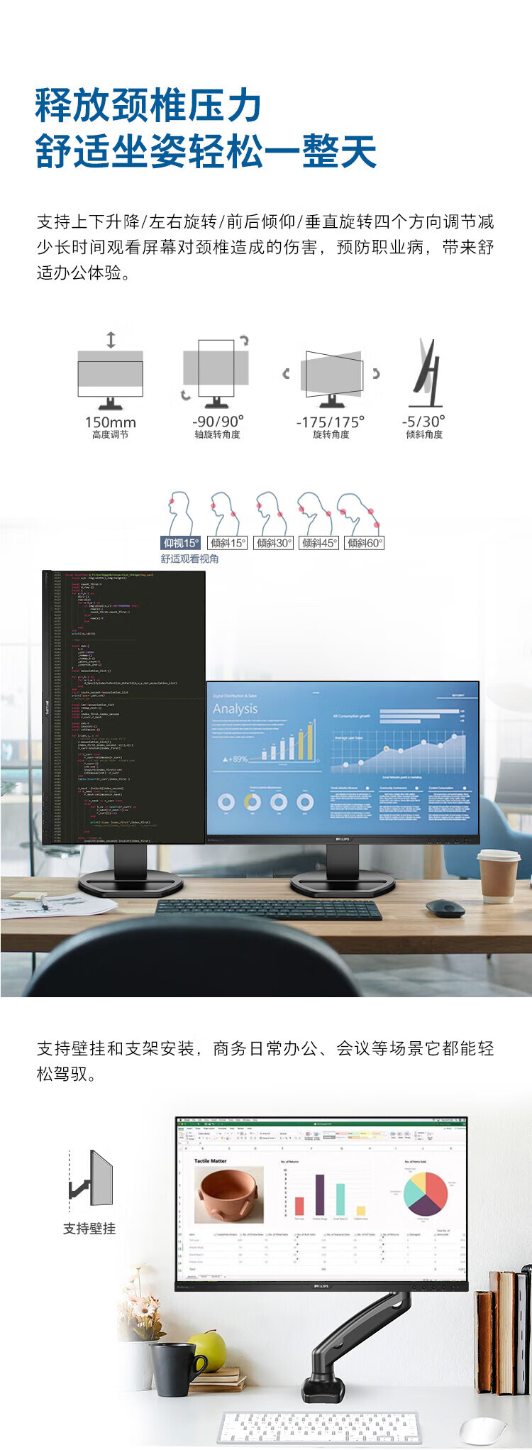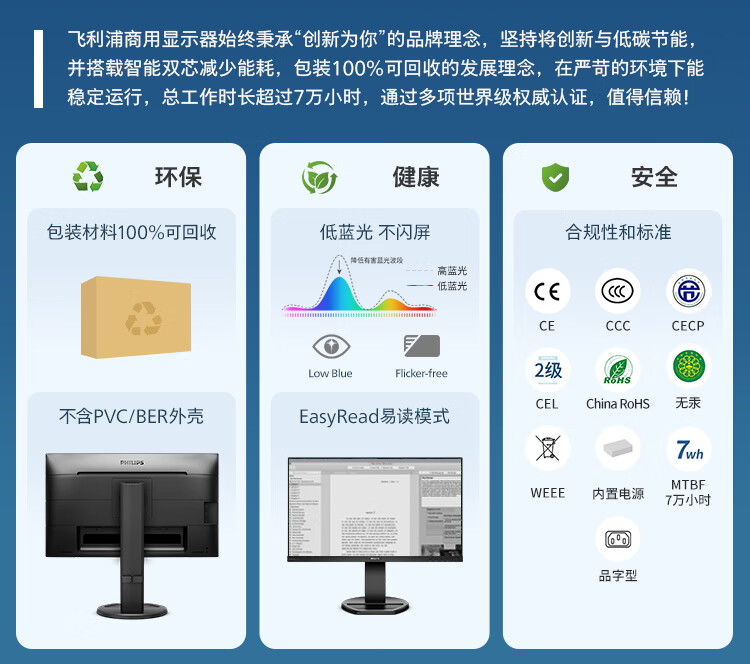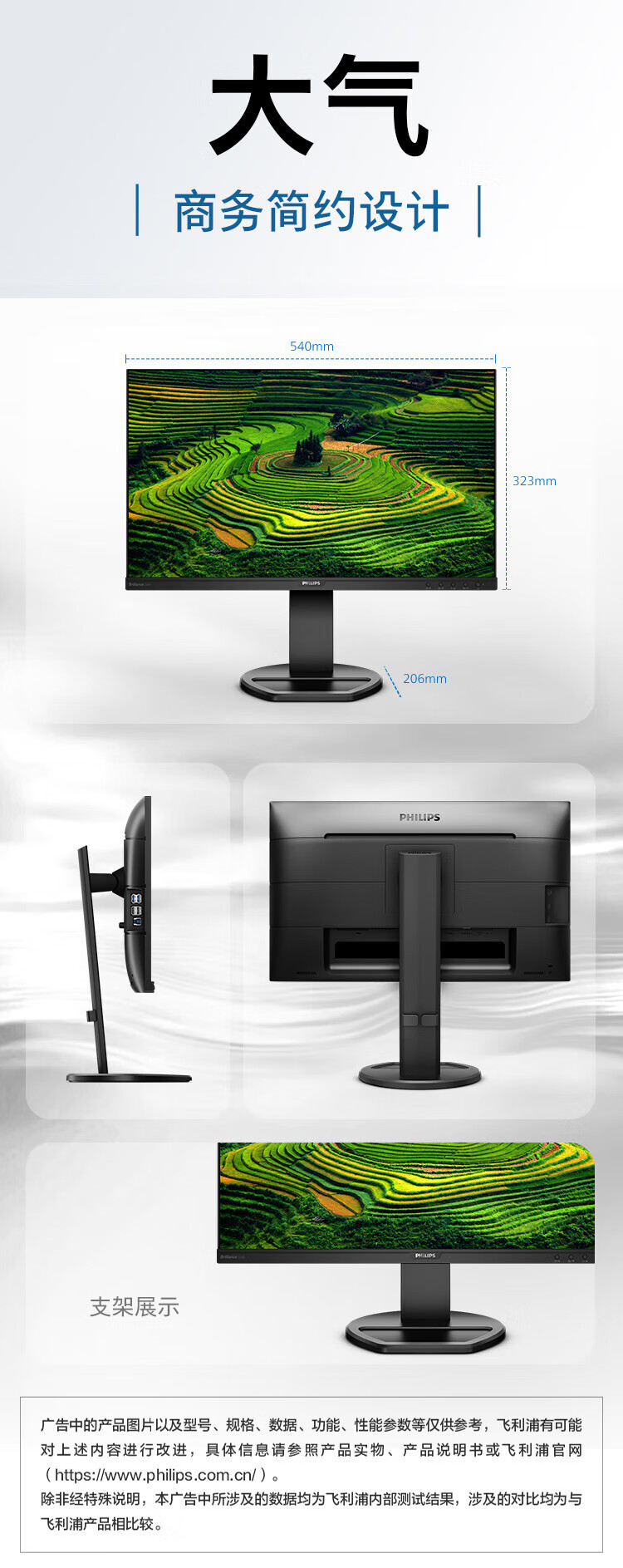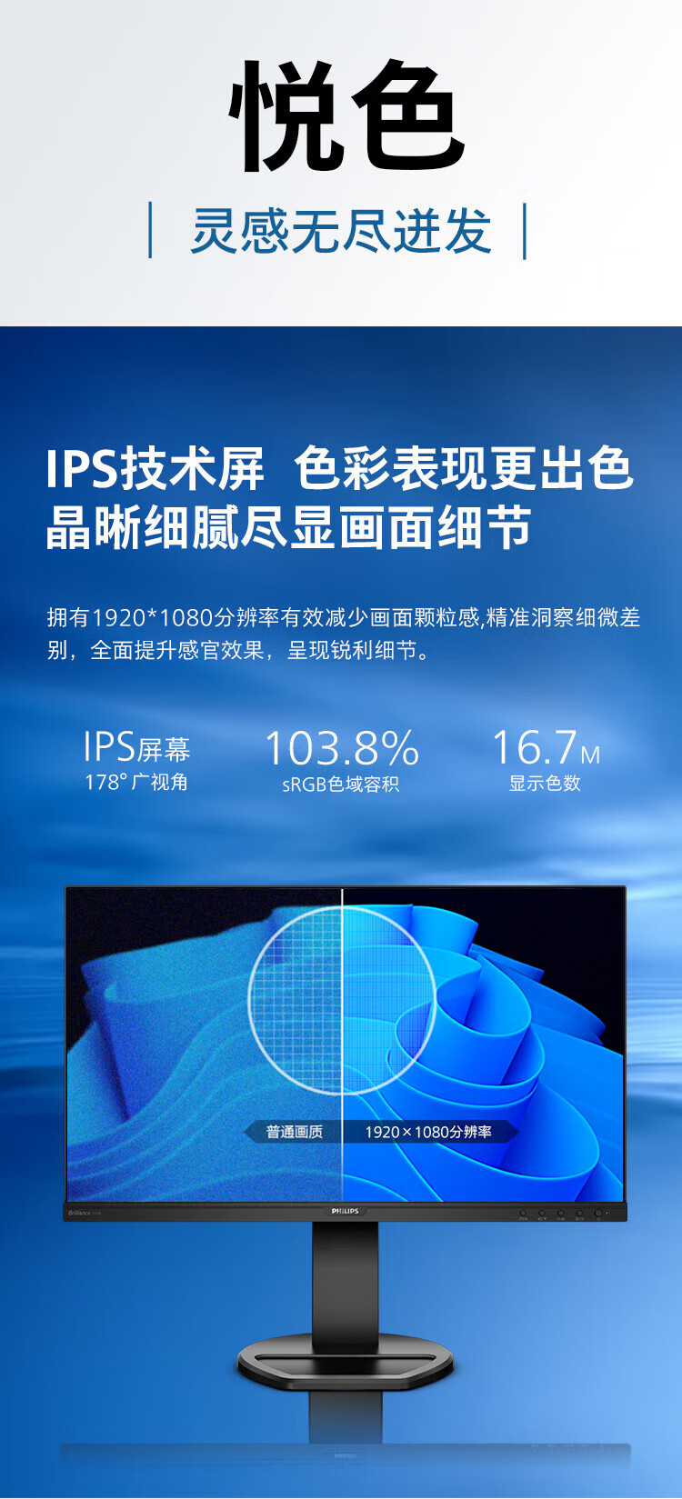 飞利浦(PHILIPS)23.8英寸 办公显示器 IPS高清 103.8%sRGB 内置音响 低蓝光 升降旋转 可壁挂 241B8QJEB/93