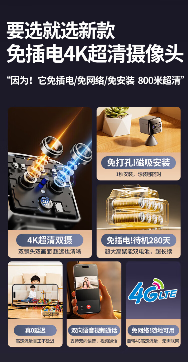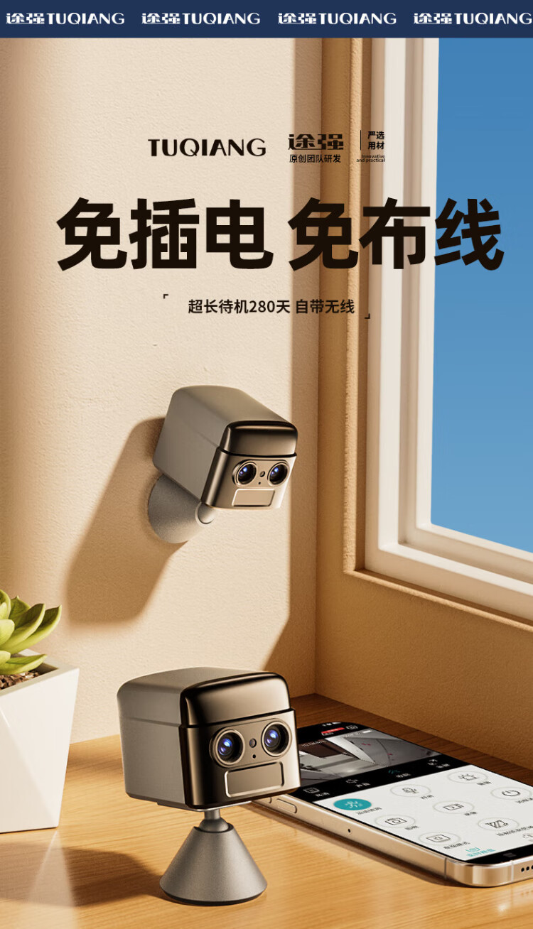 途强小型摄像头终身免流量无需网络免插电无线手机远程高清夜视家庭用监控器录像机连wifi室内京东自营