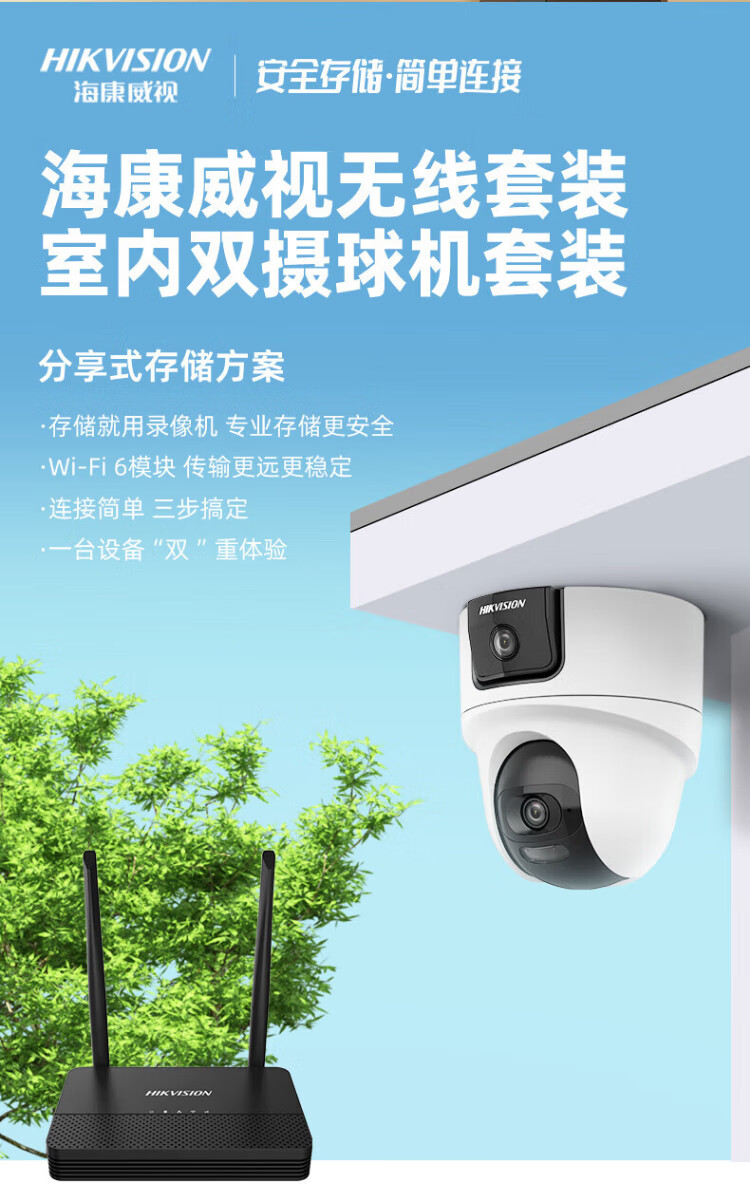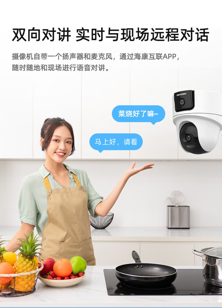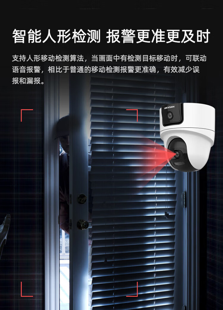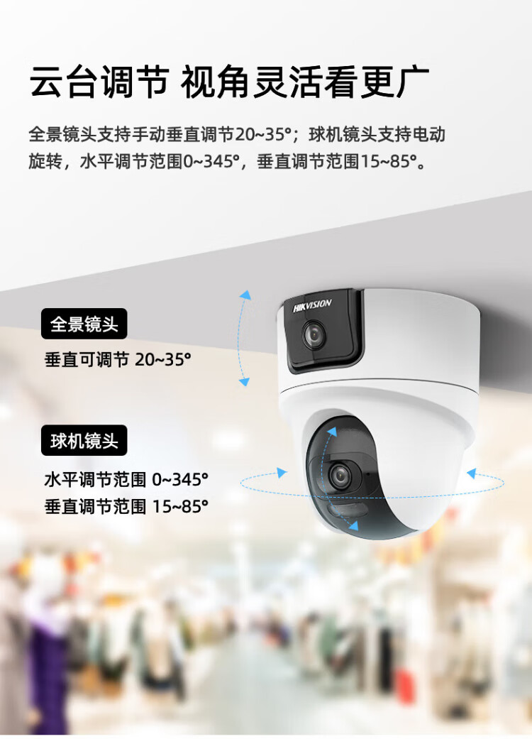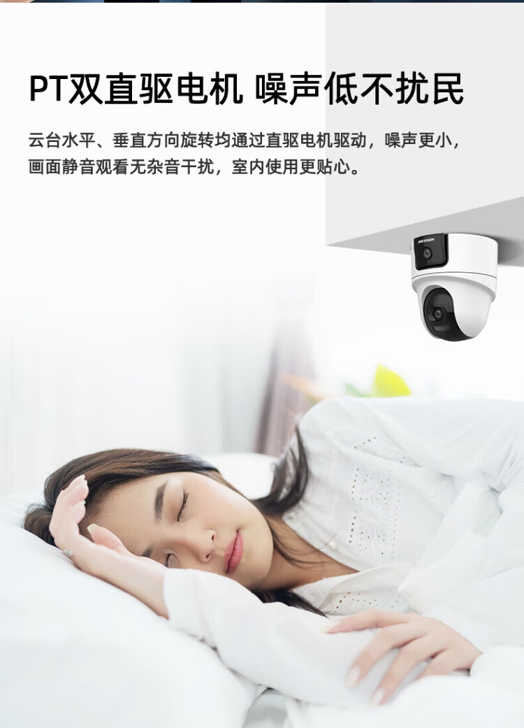 海康威视(HIKVISION)无线双摄像头家用室内WiFi监控器360度无死角带夜视 静音旋转手机远程2Q144MW-T/W/N