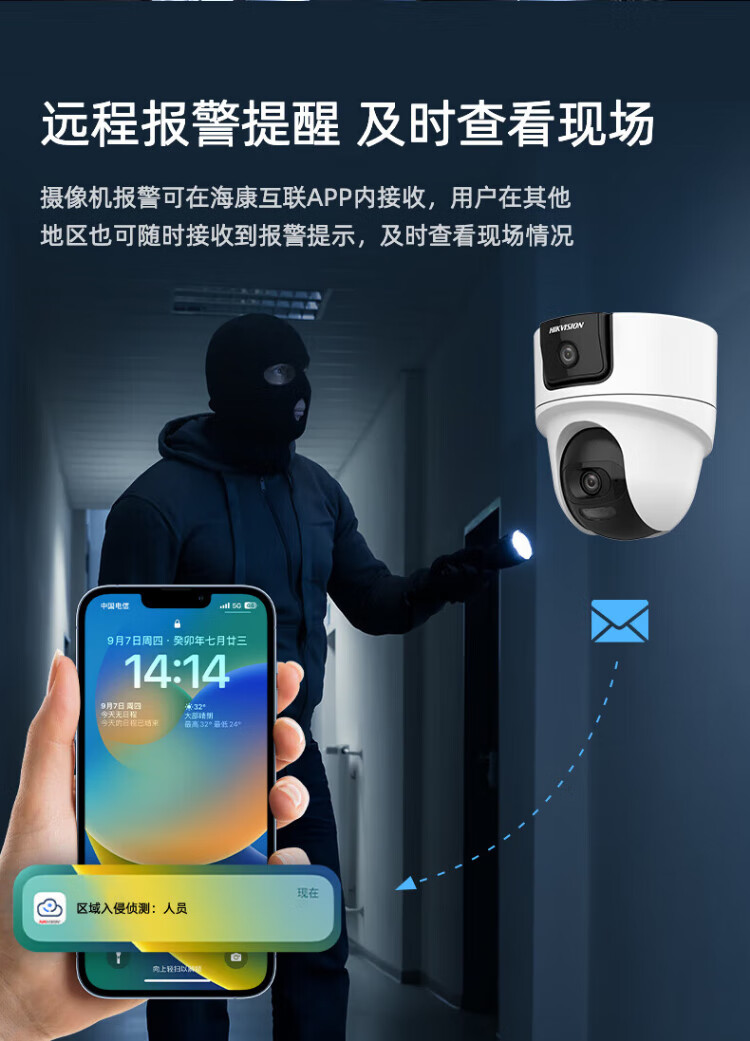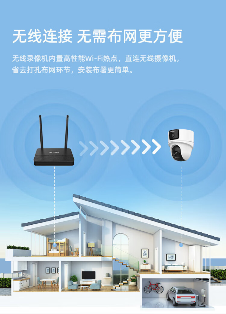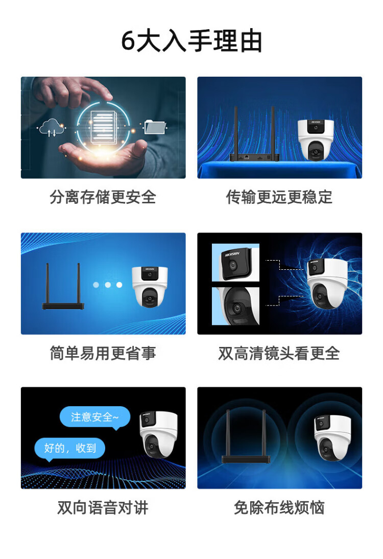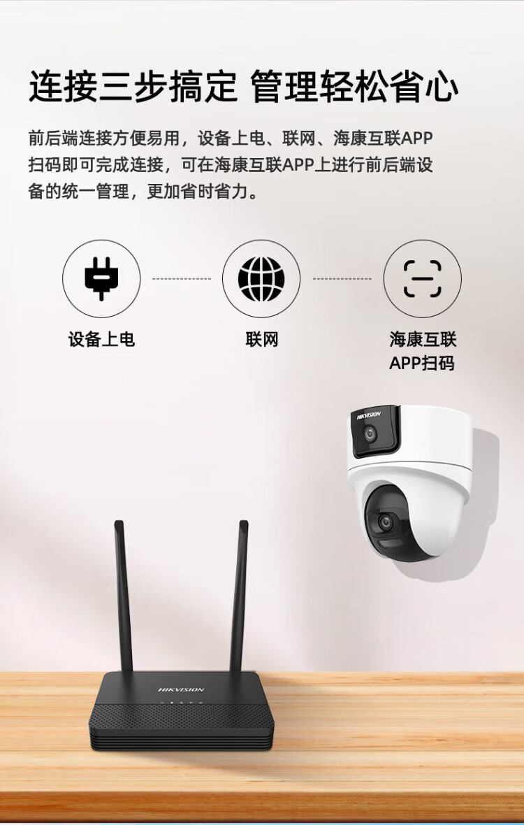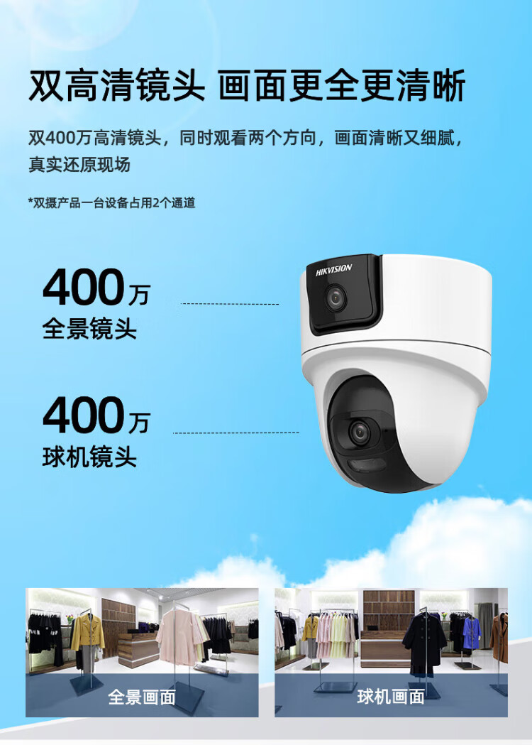 海康威视(HIKVISION)无线双摄像头家用室内WiFi监控器360度无死角带夜视 静音旋转手机远程2Q144MW-T/W/N