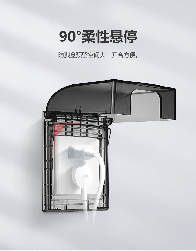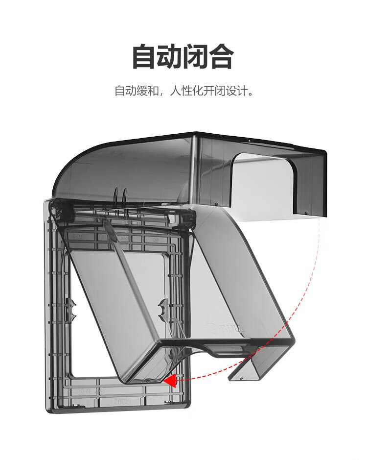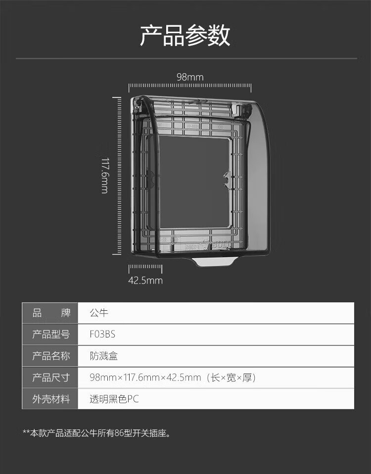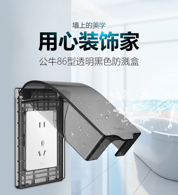 公牛(BULL)开关插座 86型透明黑防水开关面板盒防溅盒防水罩插座防水盒F03BS