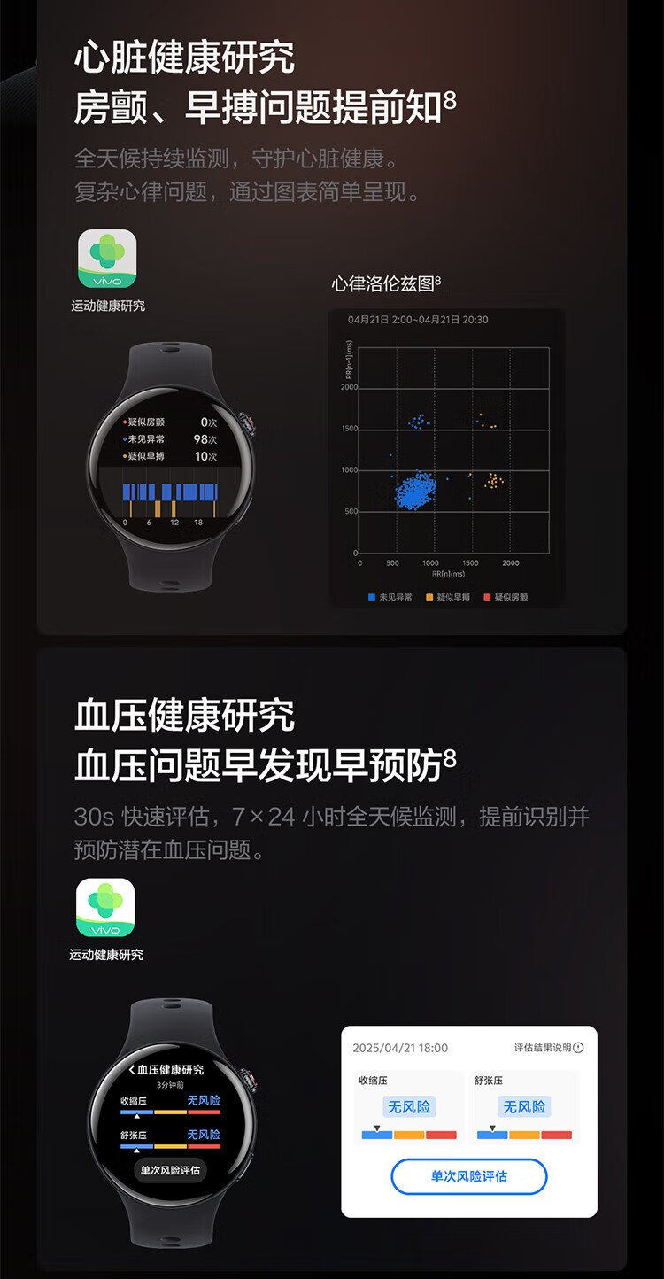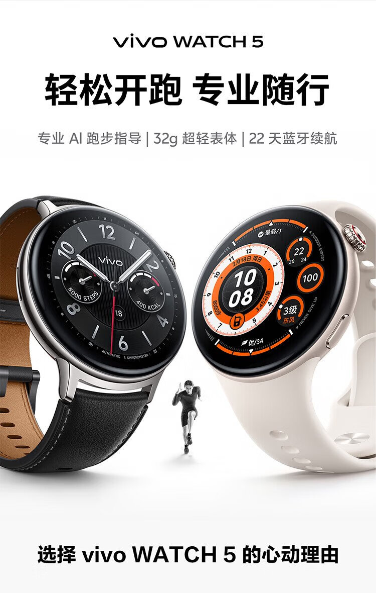 Vivo WATCH 5 Bluetooth version Chenyehei All-weather heart rate and blood oxygen monitoring blood pressure function New Blue River operating system iOS cross-system compatible smart watch