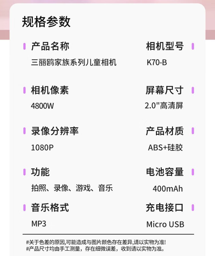 康百雀儿童相机女孩生日礼物拍立得儿童照相机过家家玩具ccd3-6岁8-12岁
