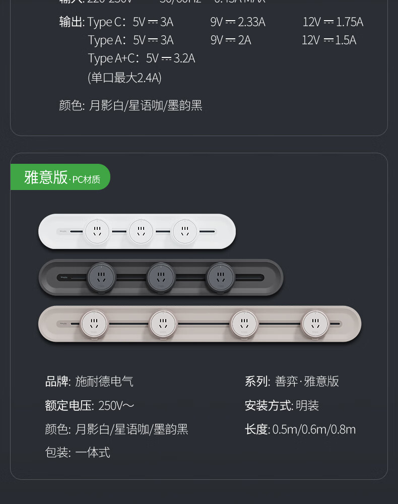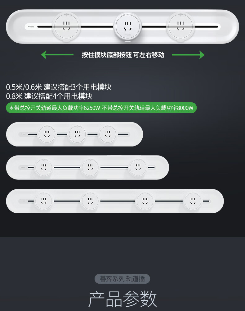 Schneider Electric surface-mounted track socket removable wall socket without slotting 60 cm + 3 five-hole sub-control ink black