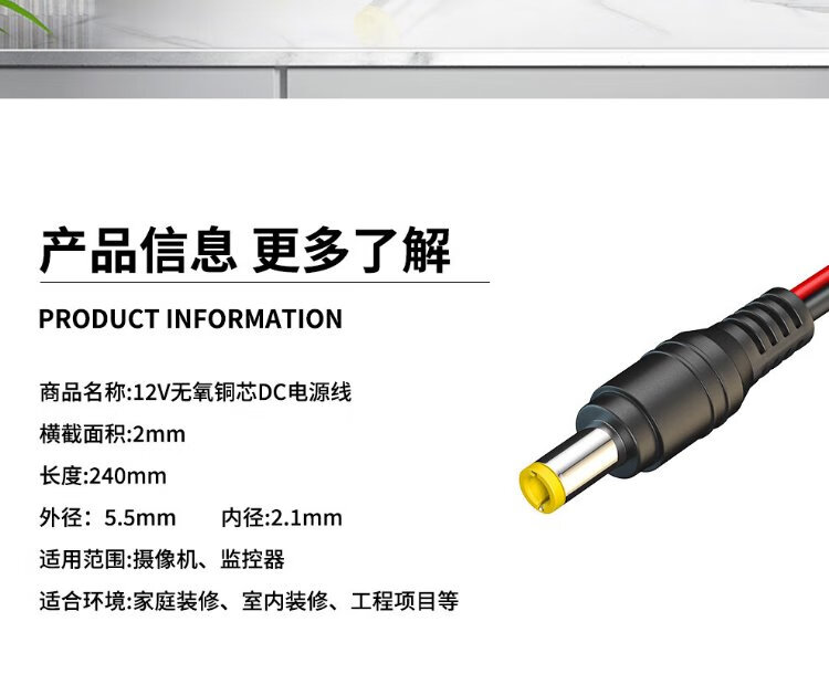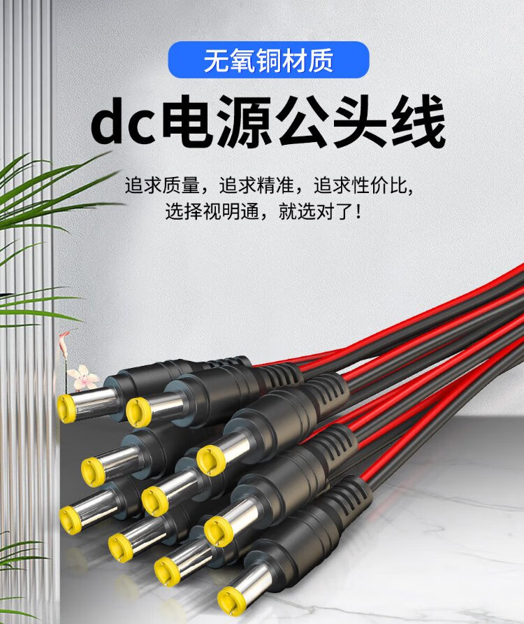 视明通 12V无氧铜芯 DC电源接头插头红黑线SMT-GTX/10监控接头电源线 5.5*2.1