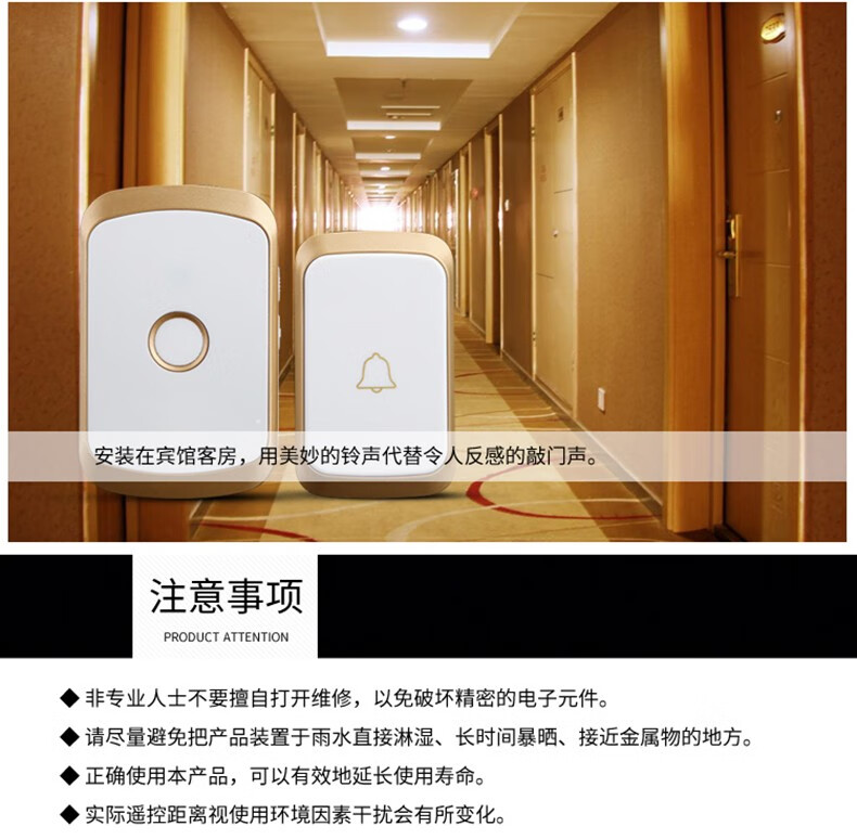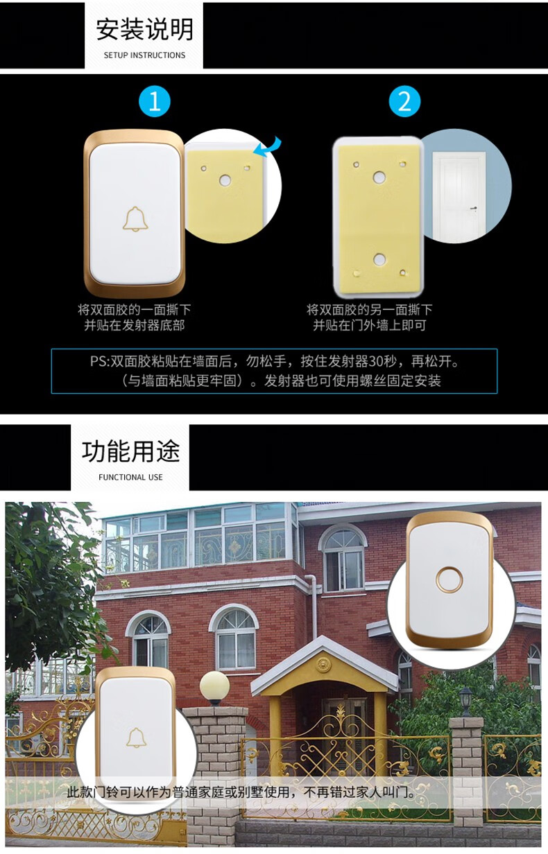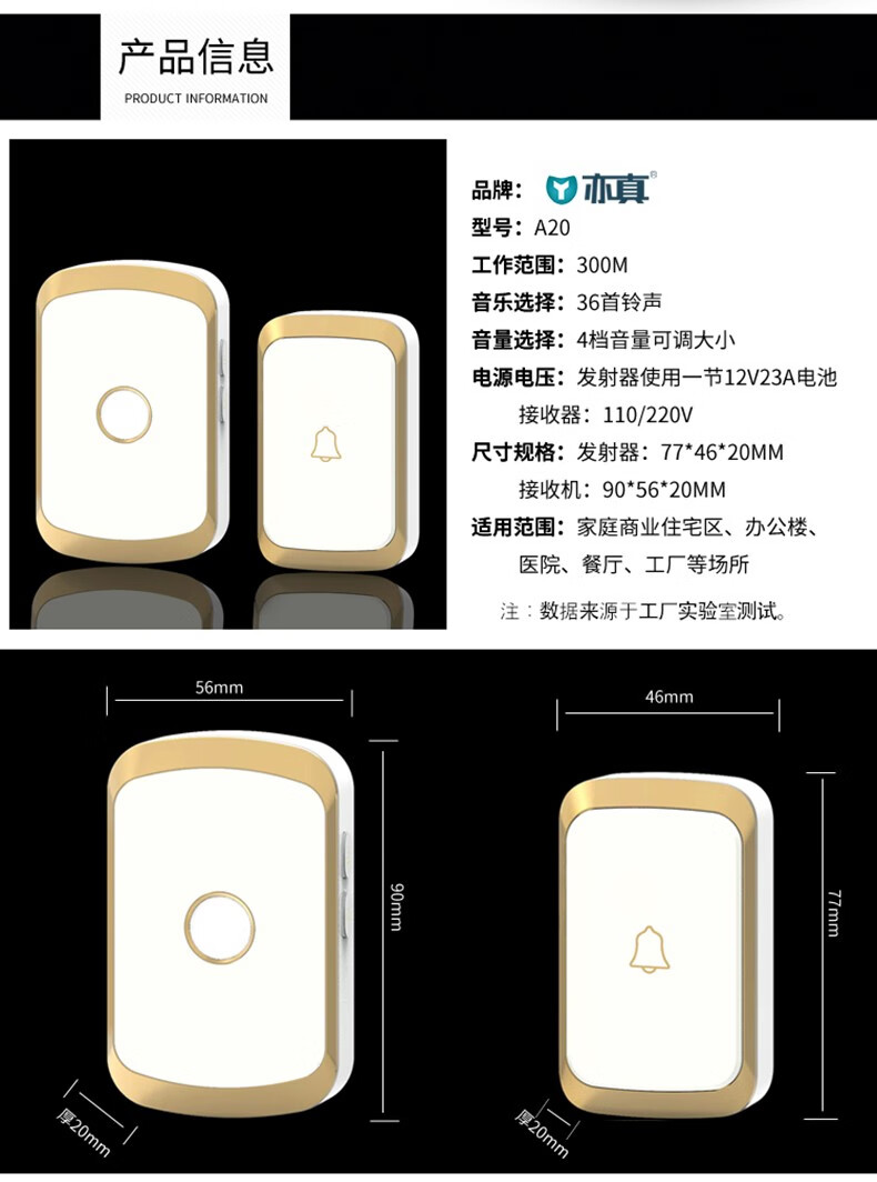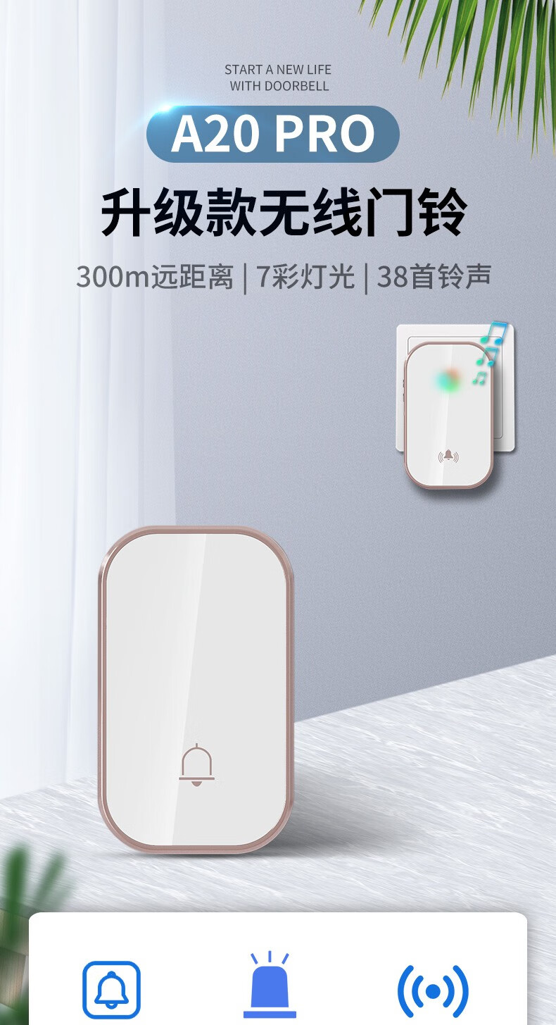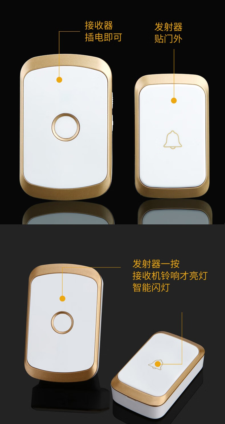 亦真A20门铃无线家用智能超远距离电子叮咚遥控门铃铛老人呼叫器防水 黑色【1个按键+1个响铃】