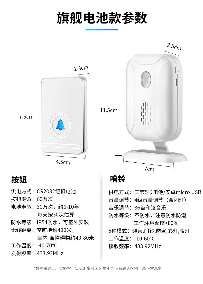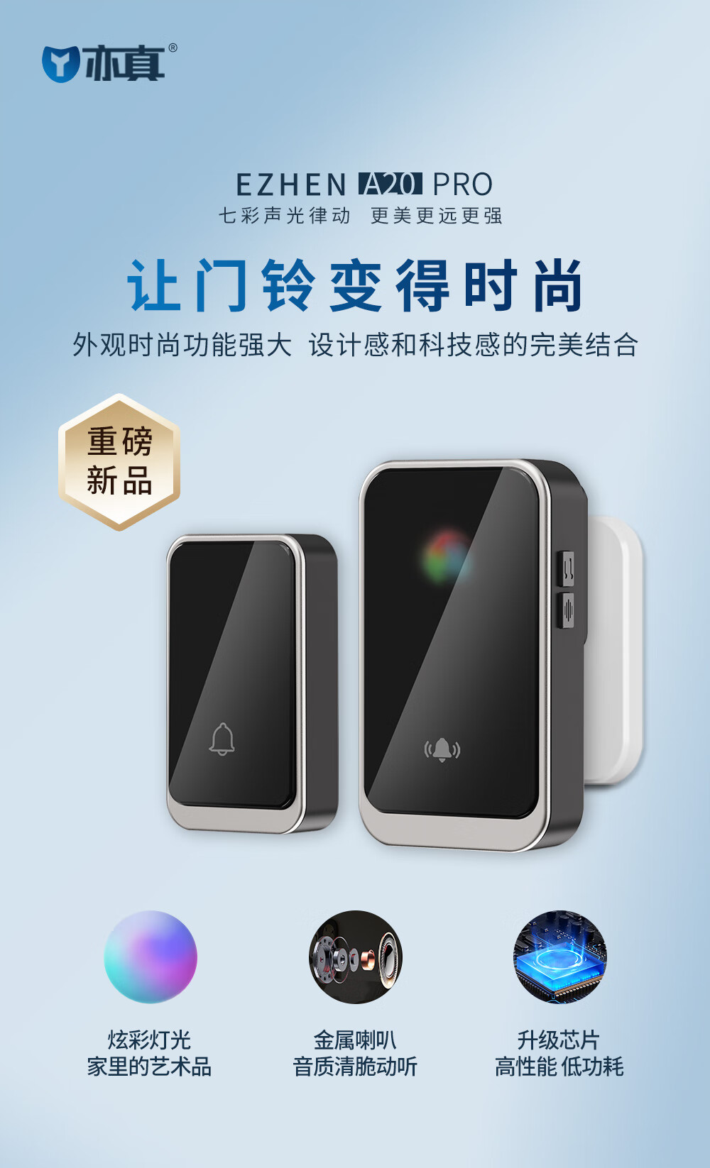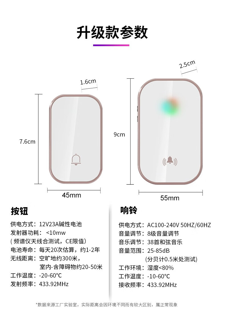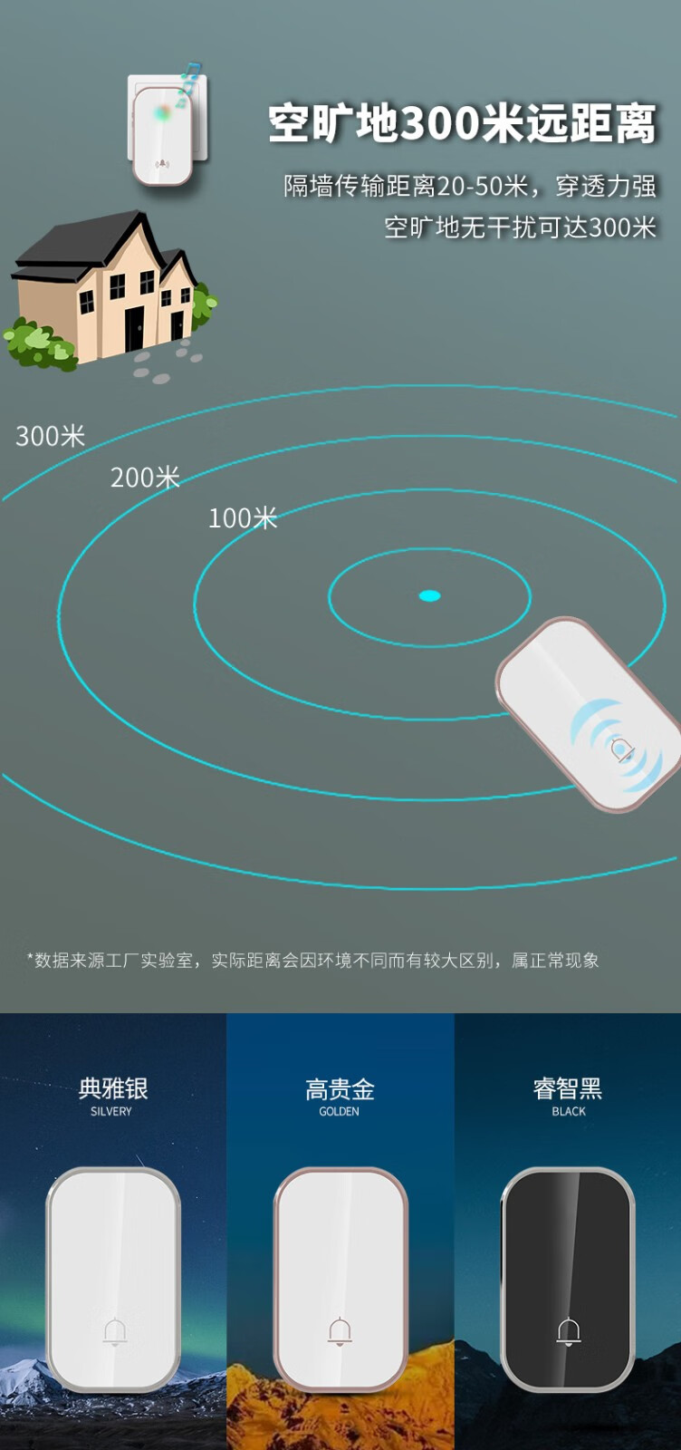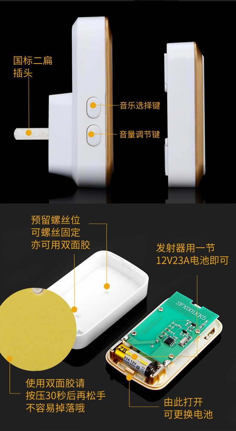 亦真A20门铃无线家用智能超远距离电子叮咚遥控门铃铛老人呼叫器防水 黑色【1个按键+1个响铃】