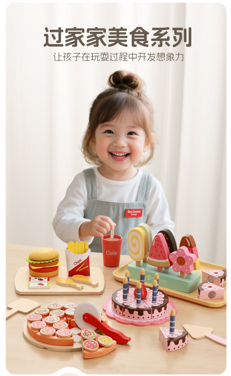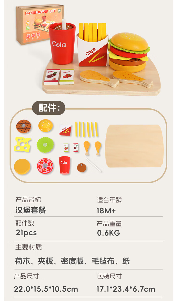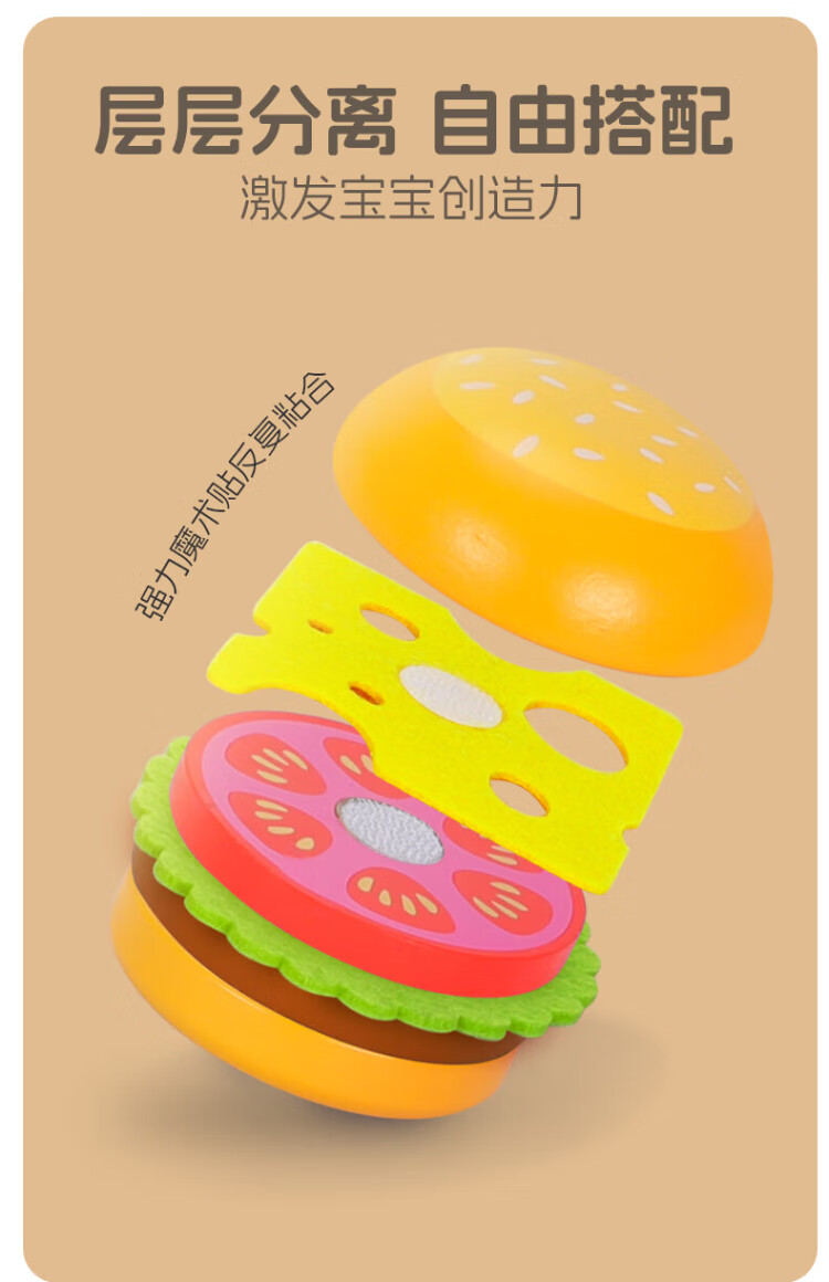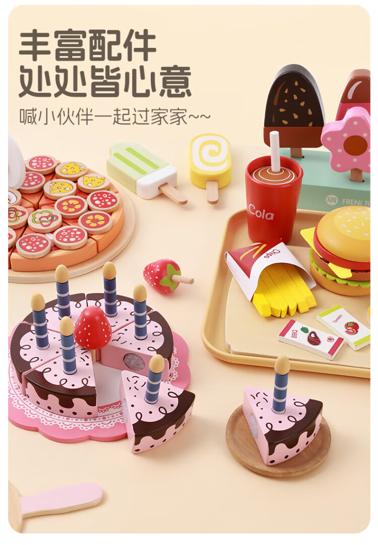 菲加尼儿童汉堡蛋糕厨房玩具套装切切乐宝宝男女孩子过家家游戏生日礼物