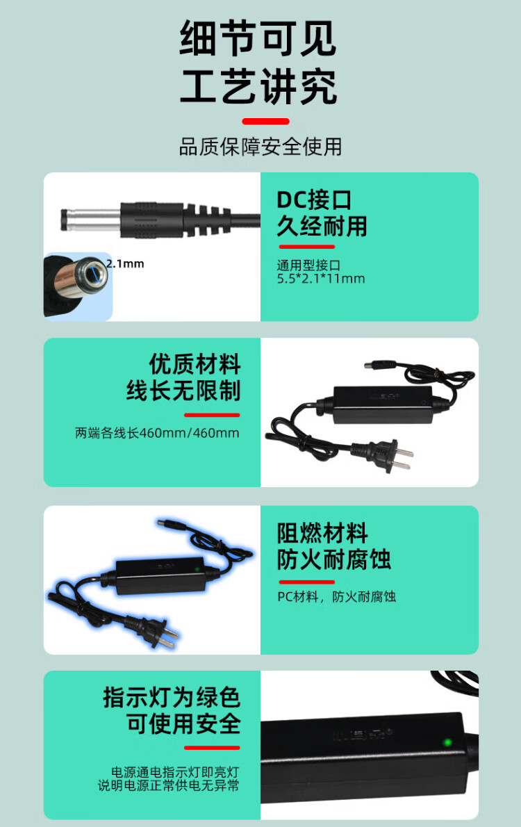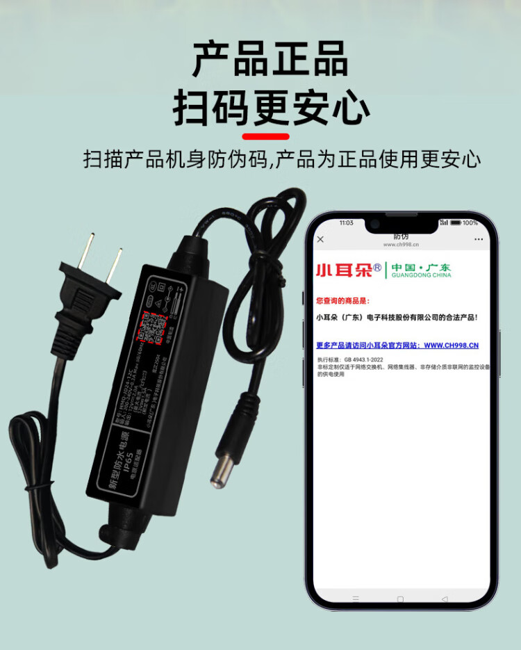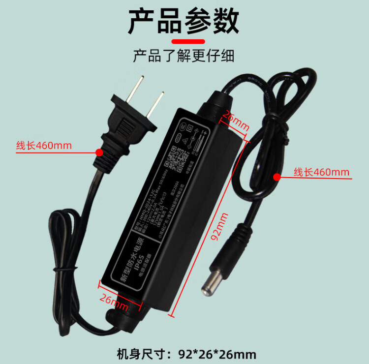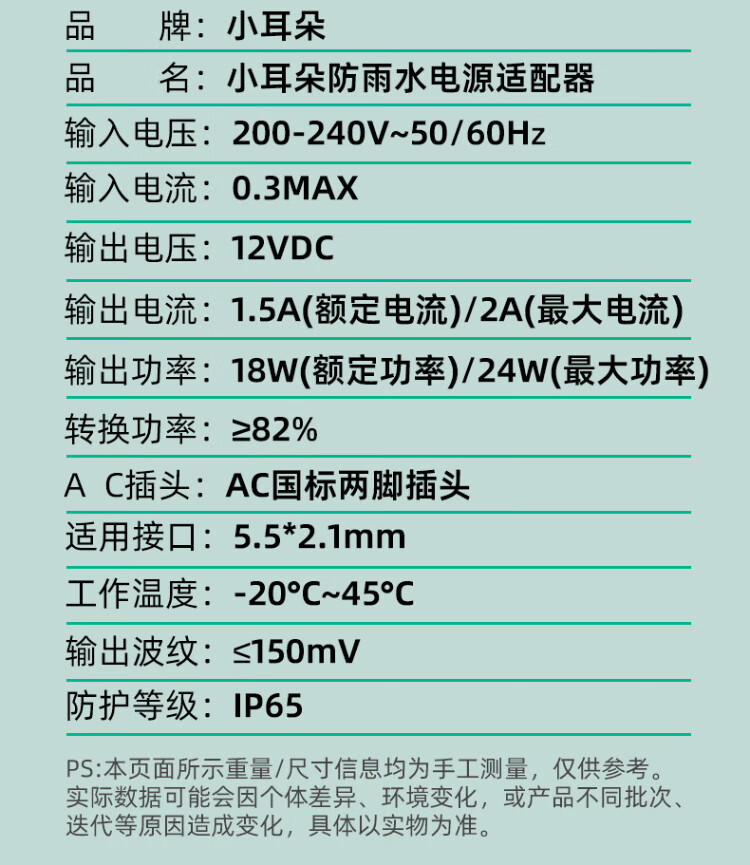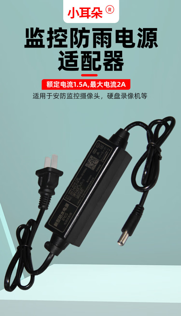 小耳朵 DC12V2A电源适配器 室外防雨水 监控摄像头变压器直流拇指3C认证黑色款额定1.5A最大2A 带插头 HMQ-JD24-12C