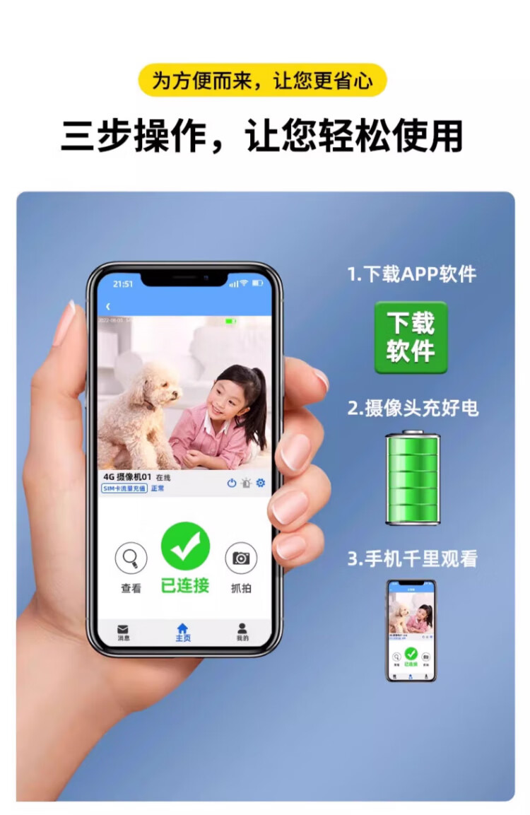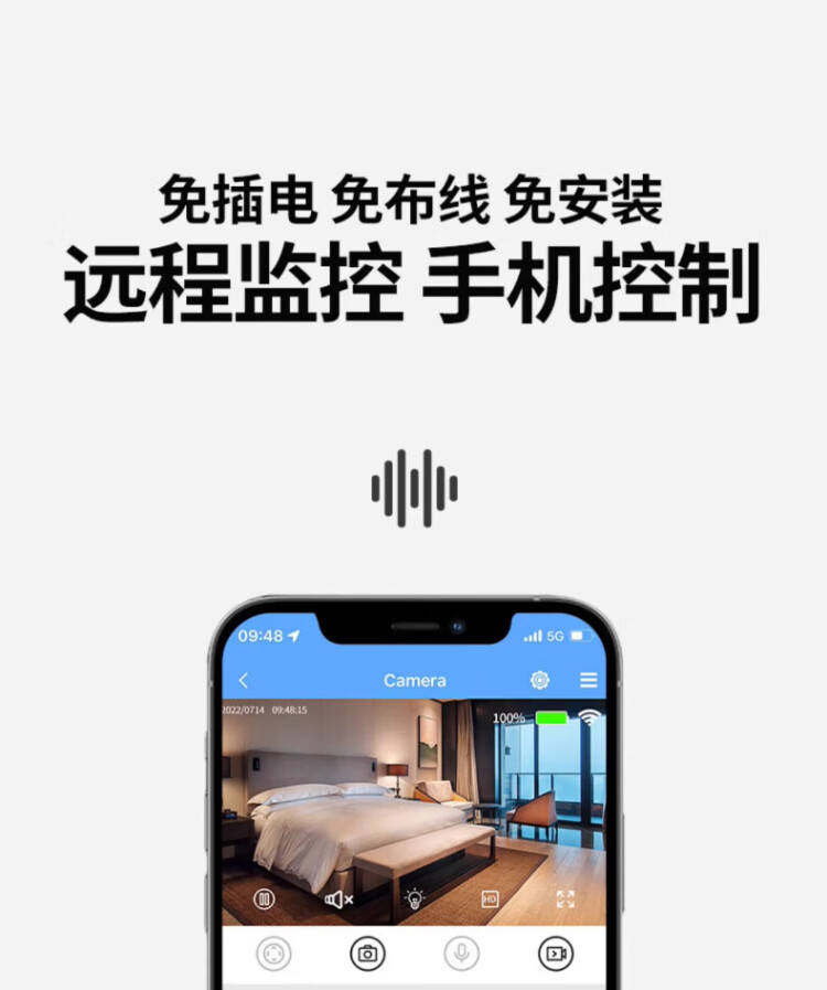 Tuqiang (lifetime free flow) battery upgrade version plug-in-free flow camera wireless mobile phone remote high-definition 4k night vision home punch-free smart 5G monitor compact