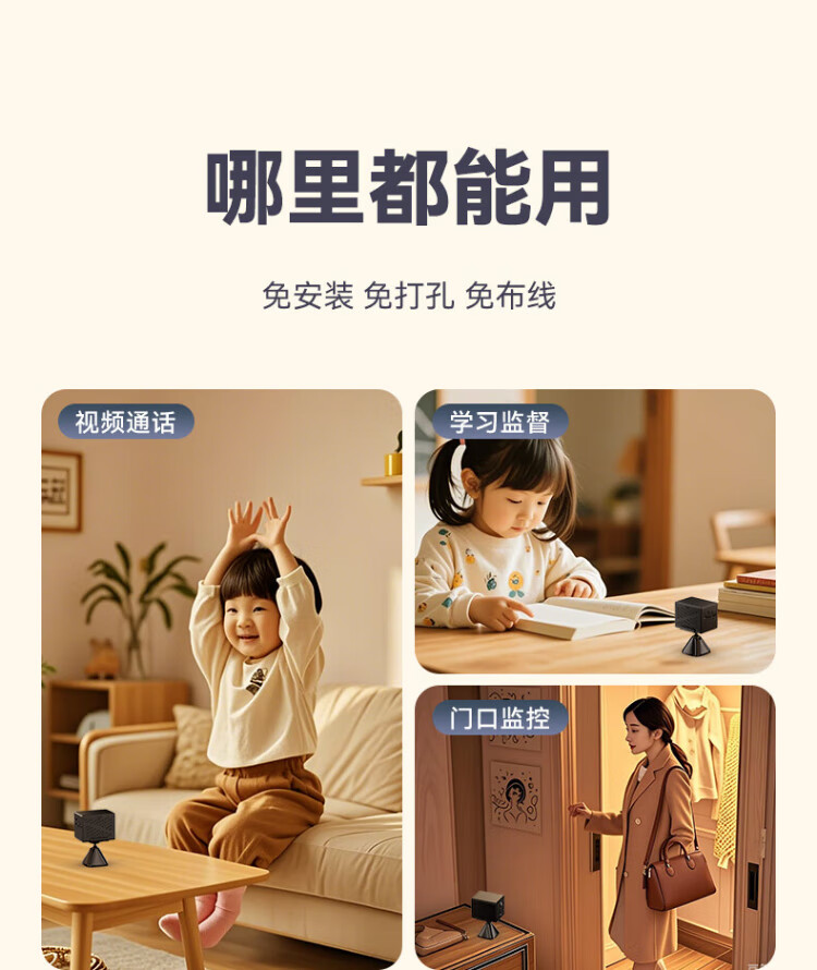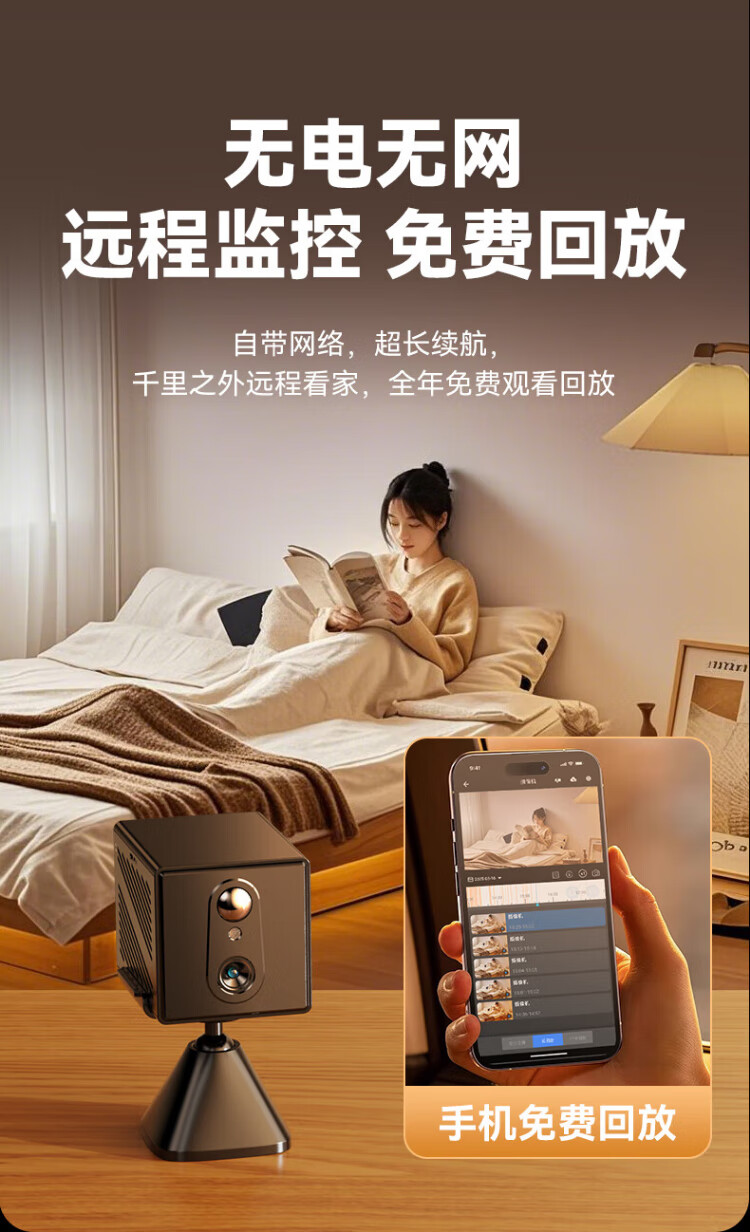 威视达康家用摄像头免插电监控无线摄像头无需连wifi微型高清充电室内外4G免打孔小型摄像机