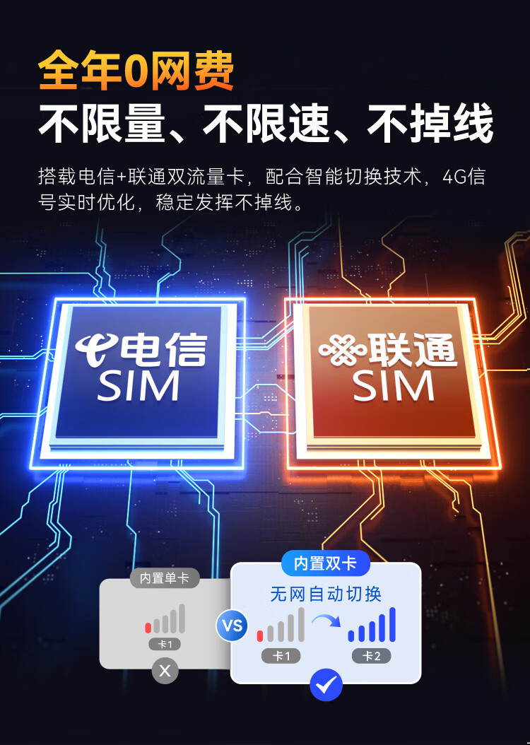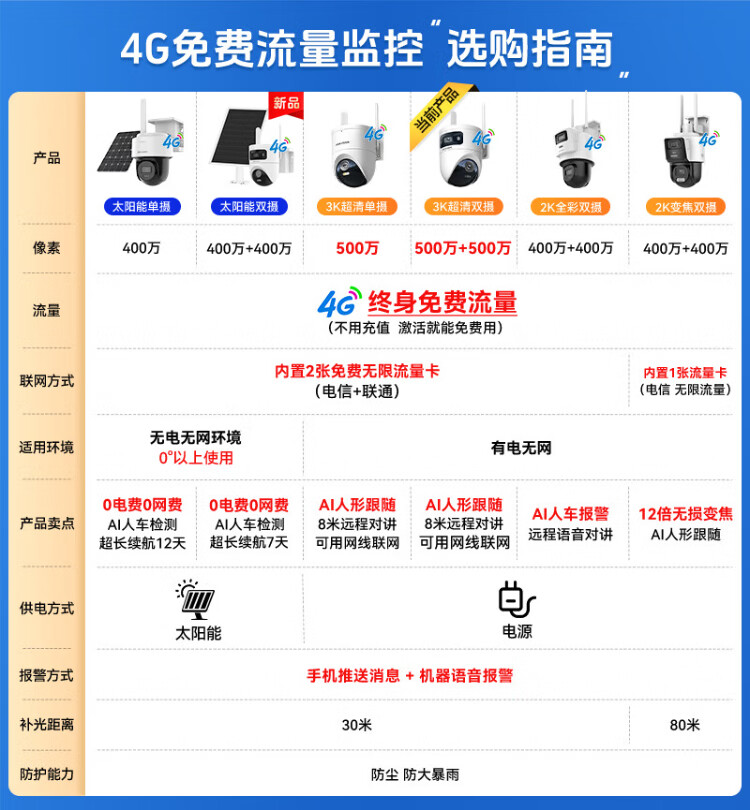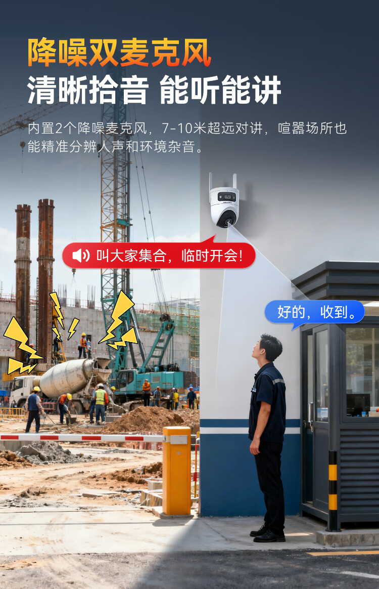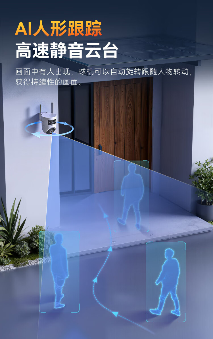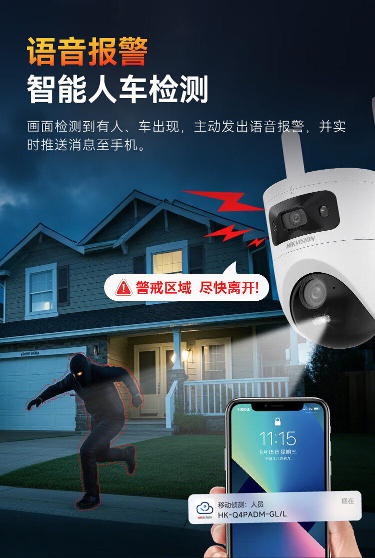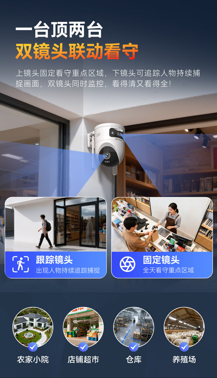海康威视(HIKVISION)4G摄像头终身免流量1000万双镜头家用监控360度无死角带夜视 内置无限流量 室外户外防尘防水Q4P