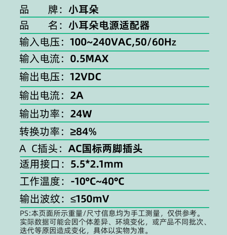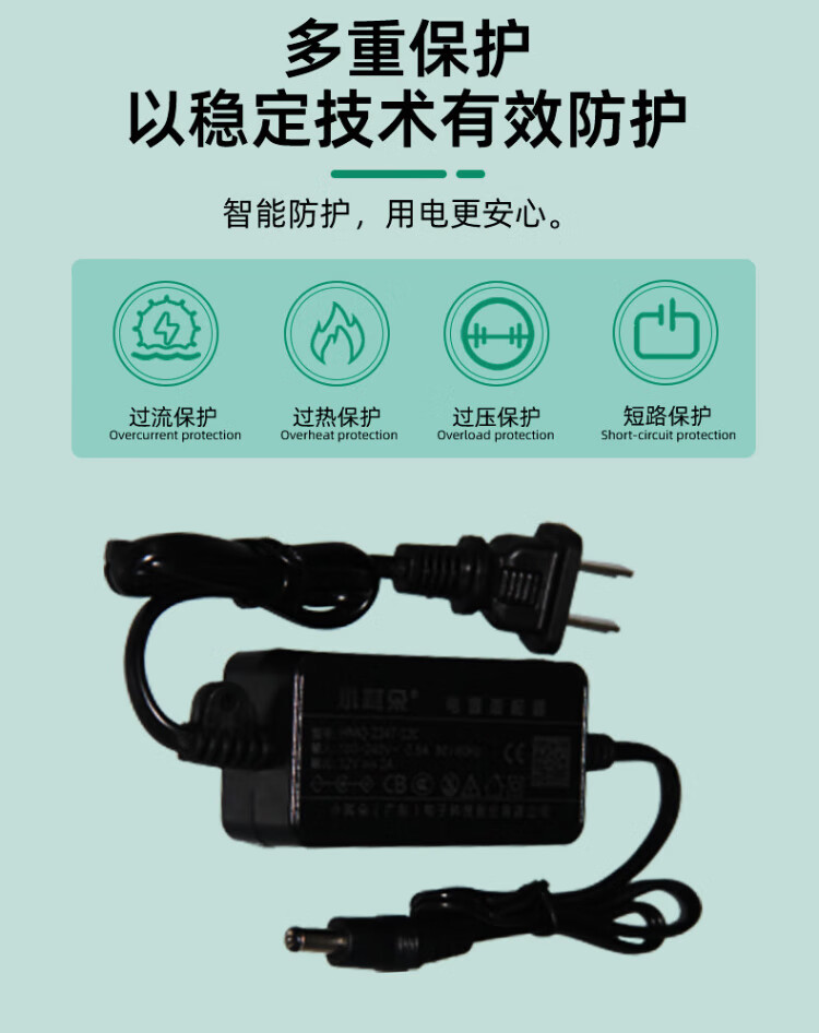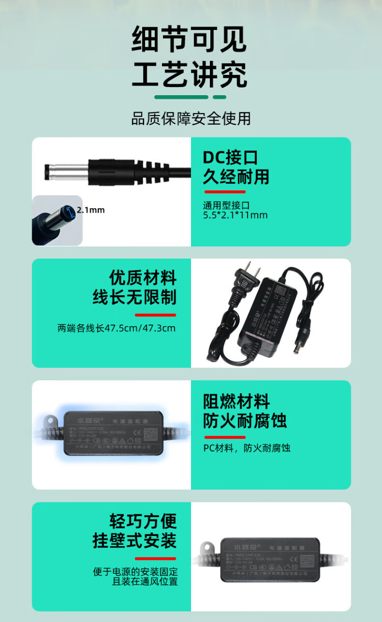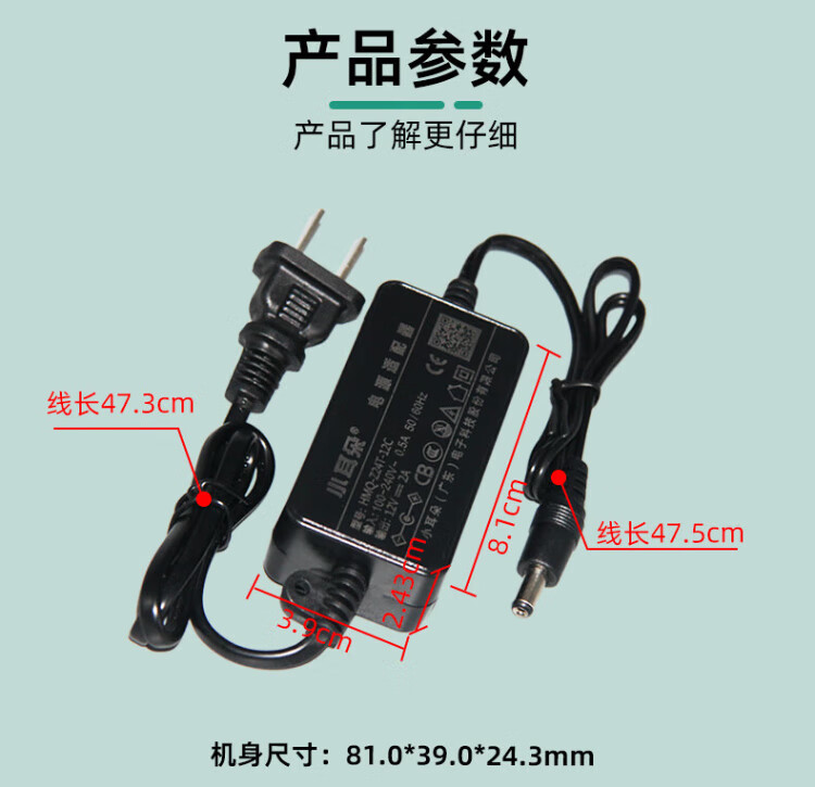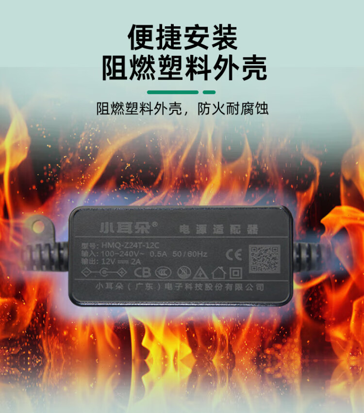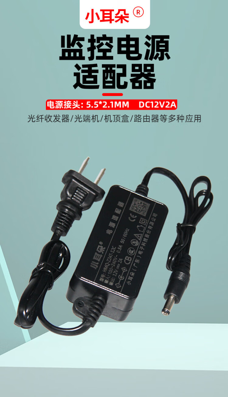 小耳朵12v2a电源适配器 安防监控摄像头足安稳压直流 黑色3C认证 HMQ-Z24T-12C