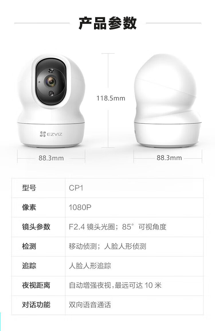 EZVIZ CP1 1080P + PTZ caméra réseau 2MP HD wifi caméra de surveillance de sécurité à domicile voix bidirectionnelle panorama horizontal
