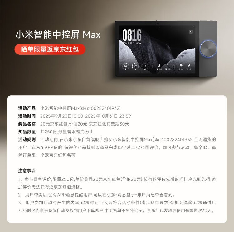 Xiaomi (MI) smart central control screen Max smart home panel touch screen Xiao Ai 10.1-inch central control screen