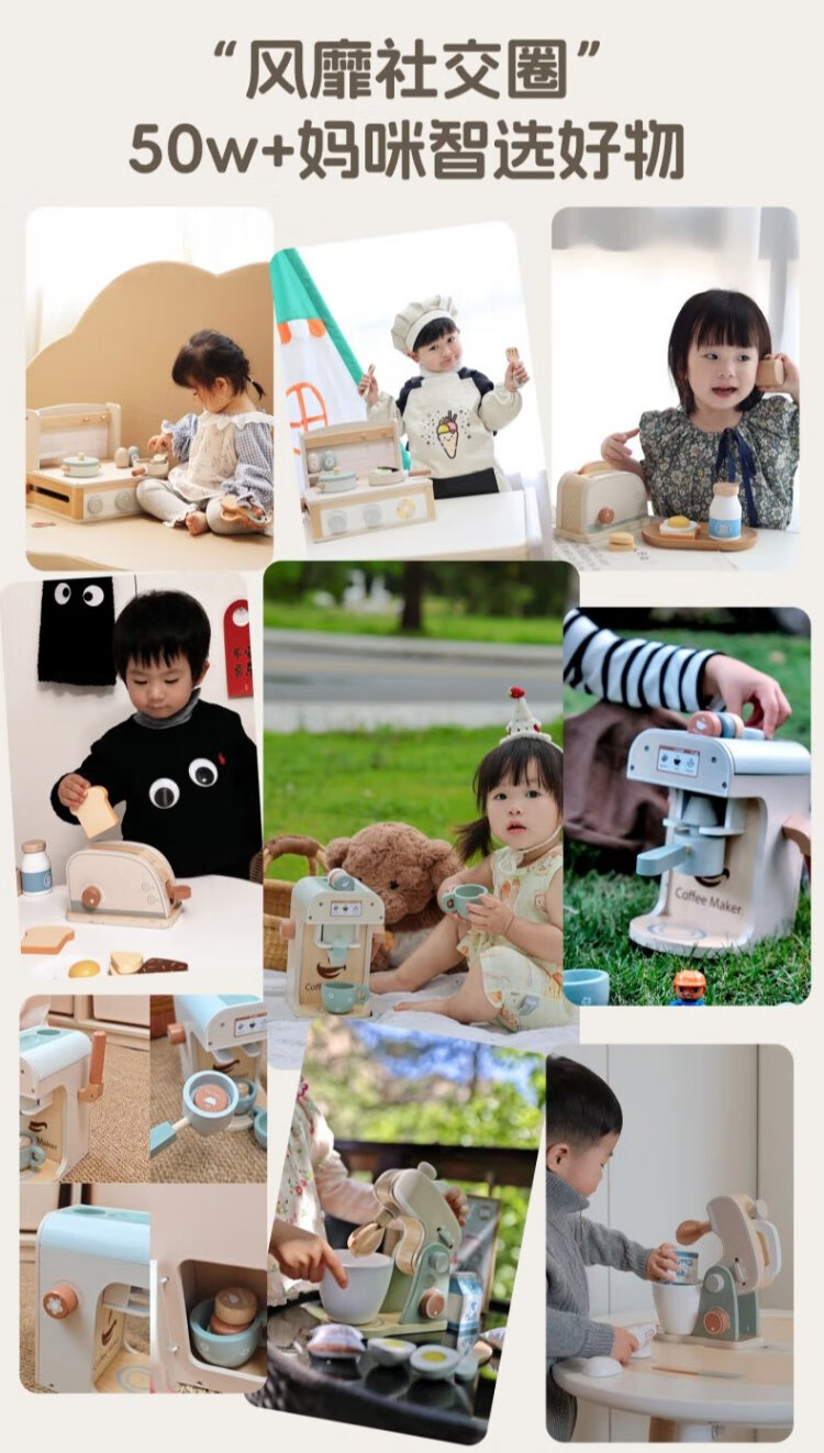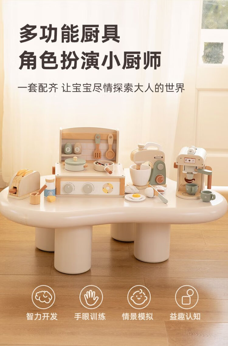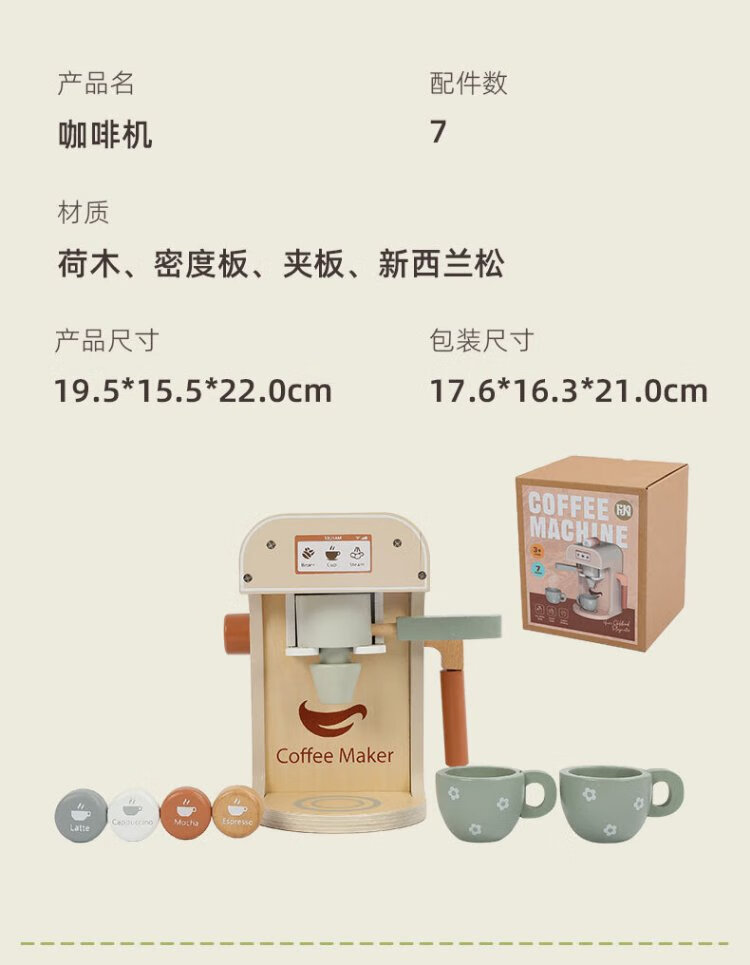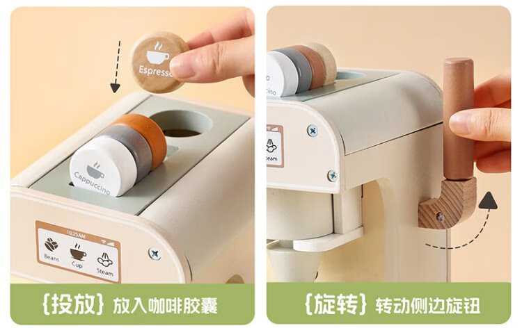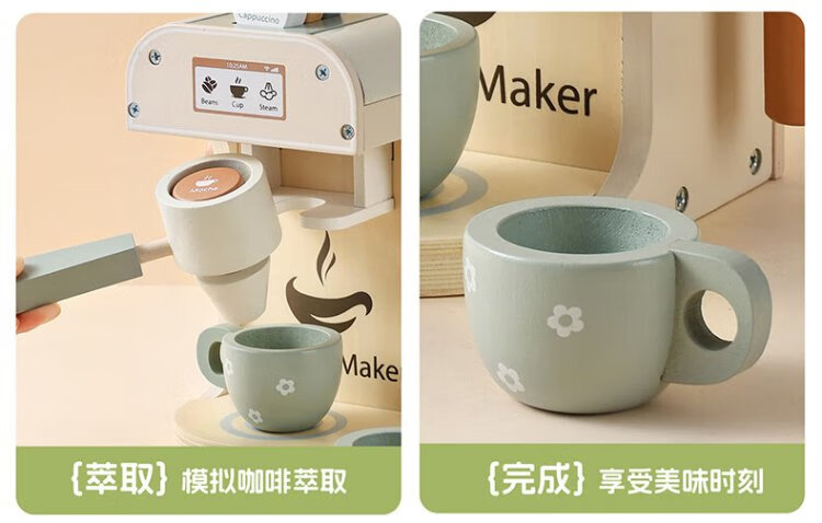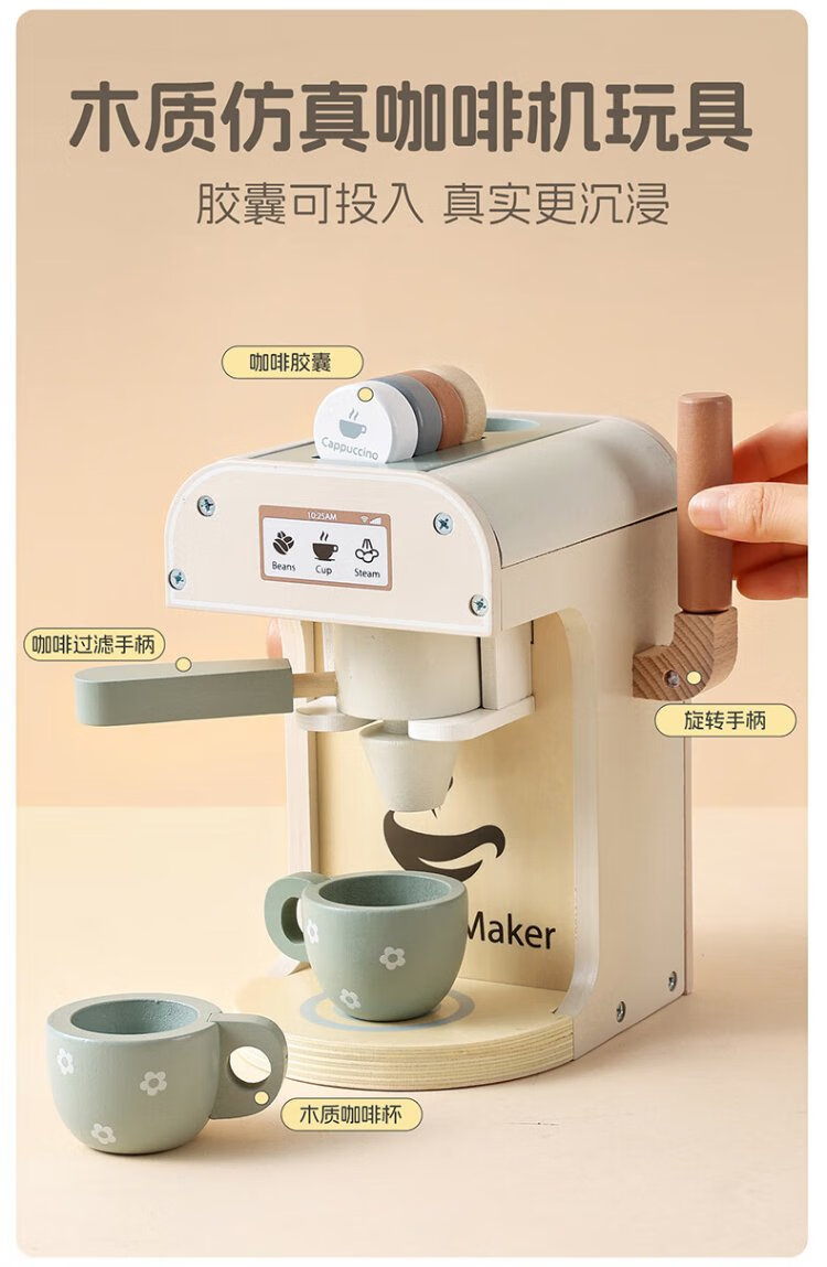 菲加尼过家家咖啡机迷你厨房玩具套装儿童木质仿真做饭厨具女孩生日礼物