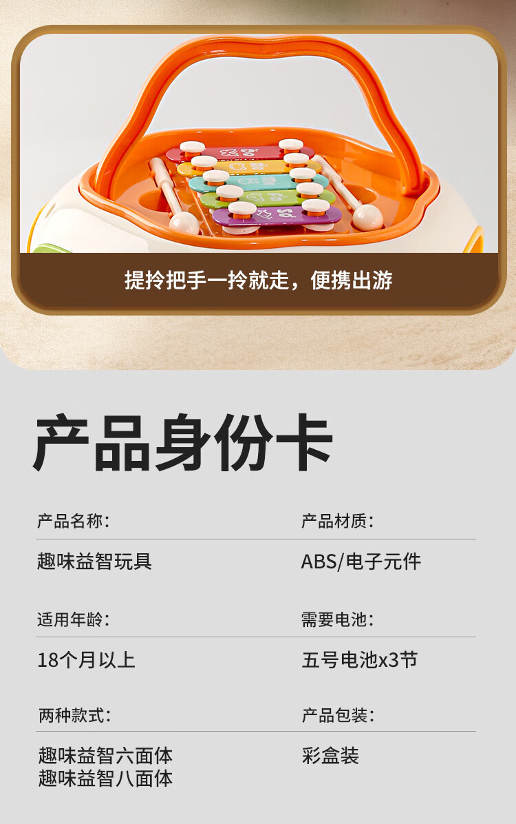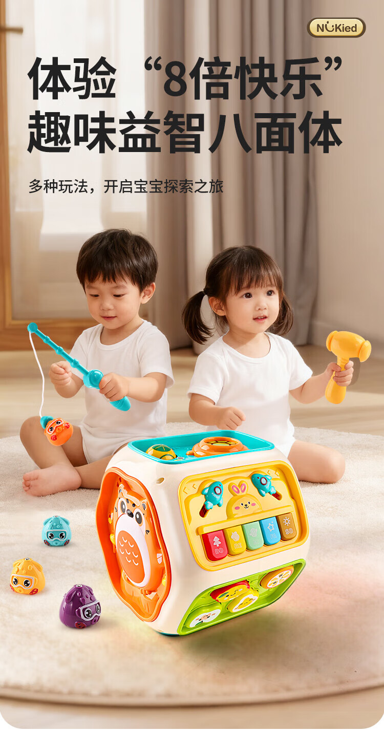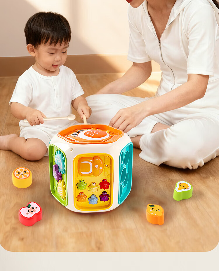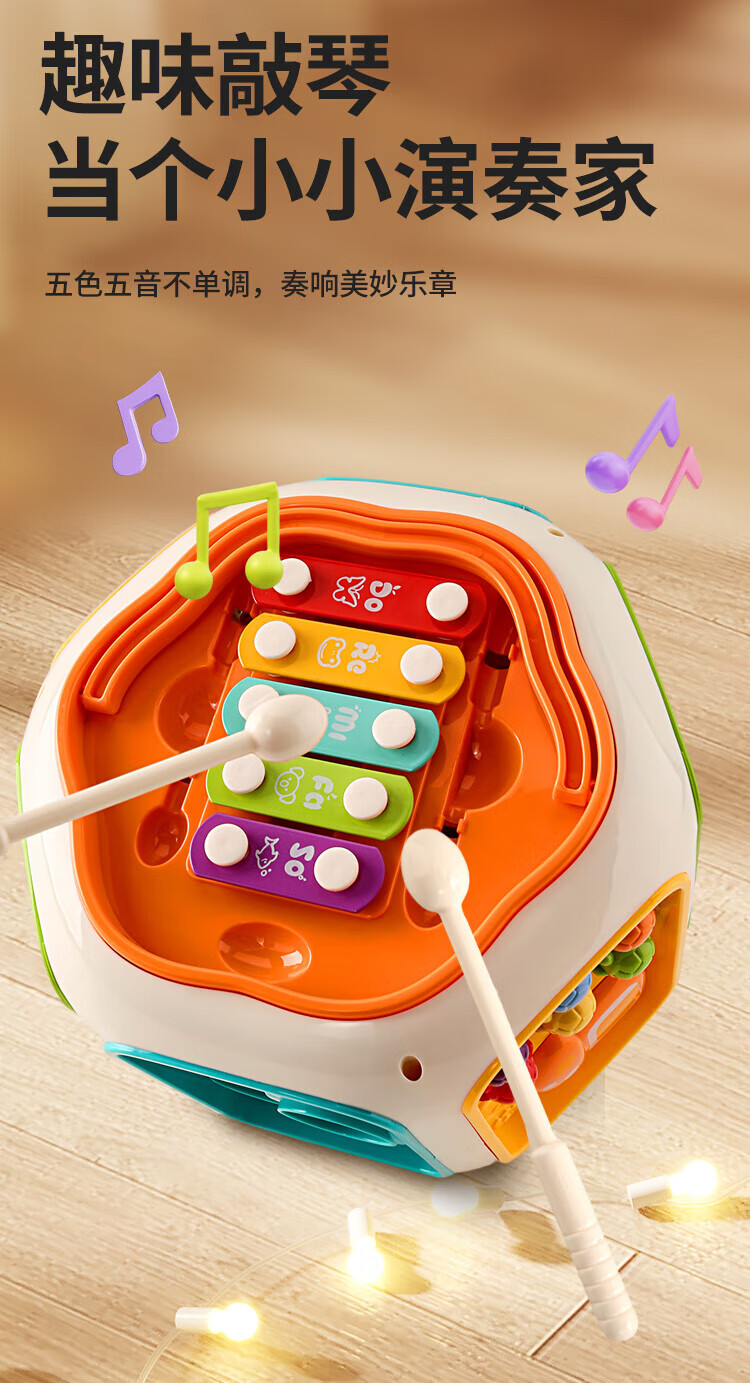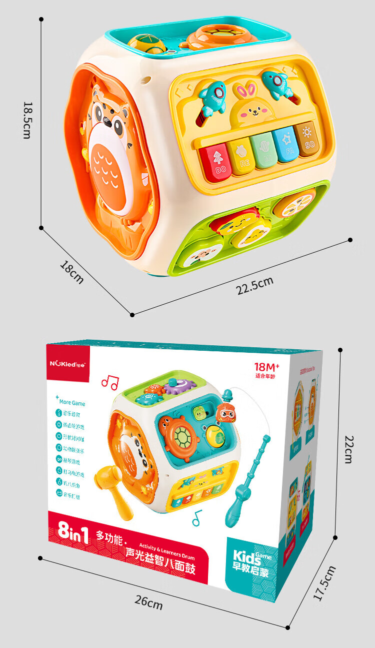Newqi Kinderspielhaus Spielzeug achtseitige Trommel Polyederspiel 3-6 Jahre alt Handtrommel pädagogisches Kindergeburtstagsgeschenk
