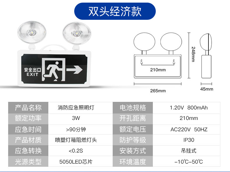 Suoyada (suoyada) Suoyada новый национальный стандарт пожарной аварийной сигнализации светодиодное освещение зарядное устройство отключения электроэнергии индикатор безопасного выхода индикация эвакуации двуглавая лампа односторонняя (вперед)