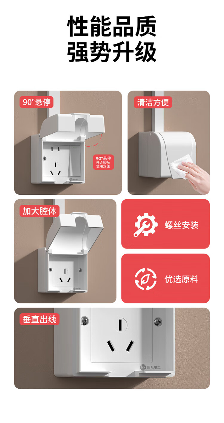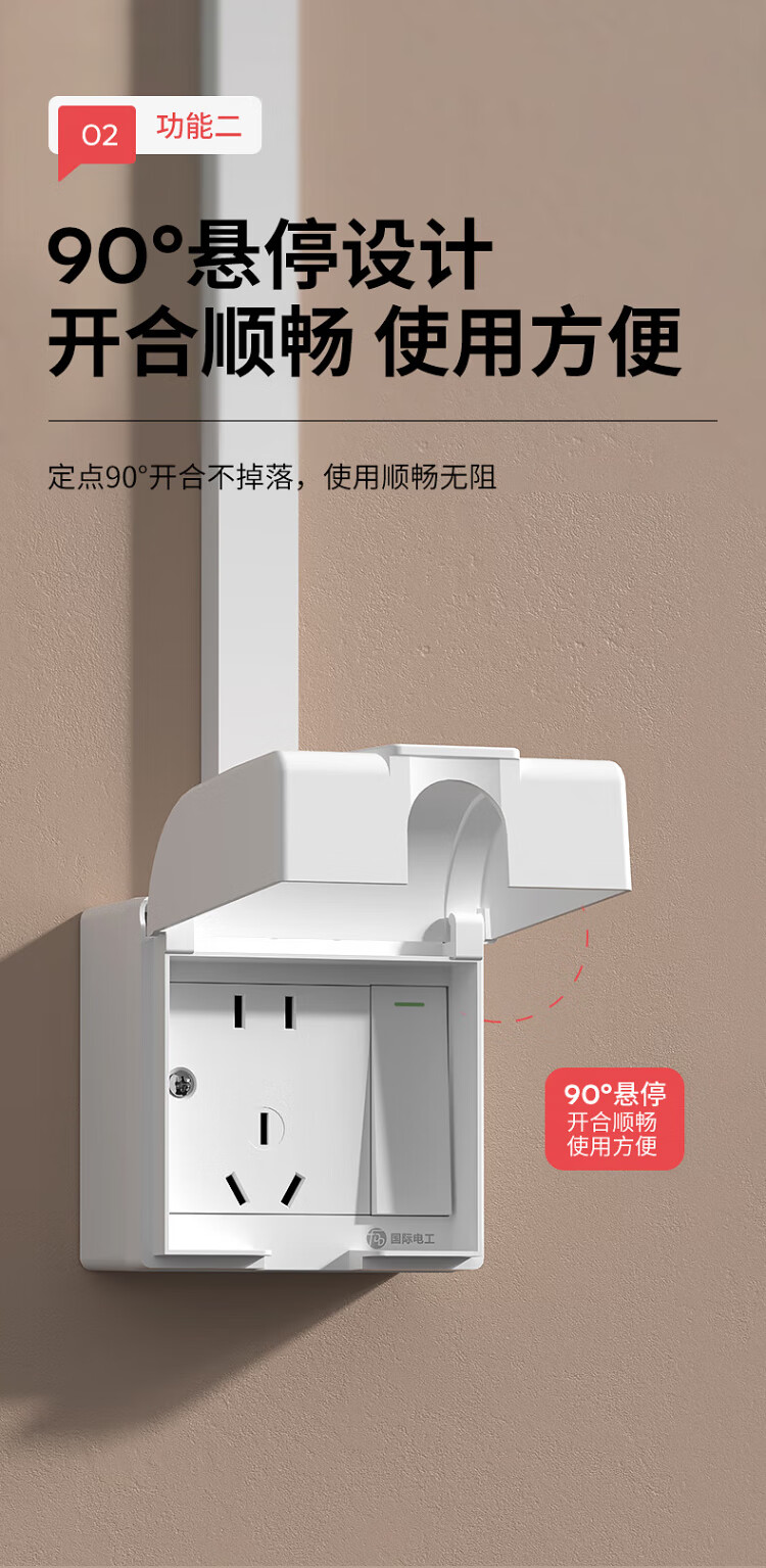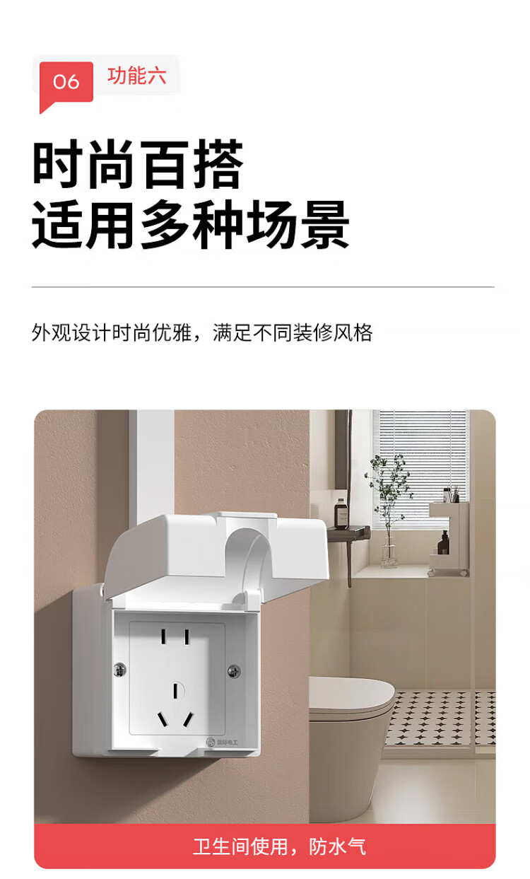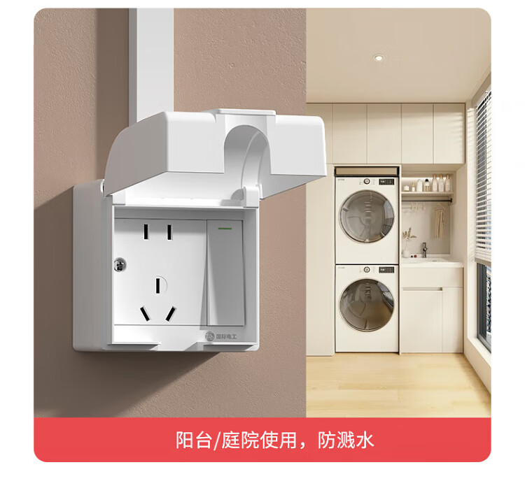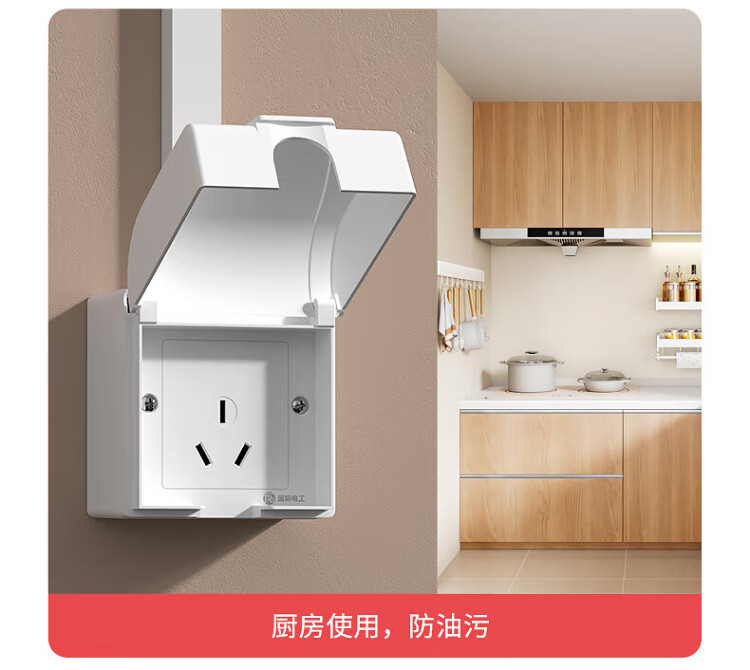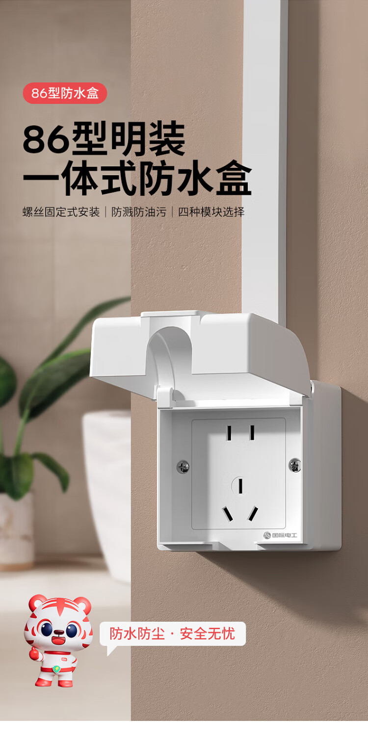 国际电工明装插座防水盒一体式86型浴室厨房明线面板户外防水罩防溅盒 明装-雅白五孔
