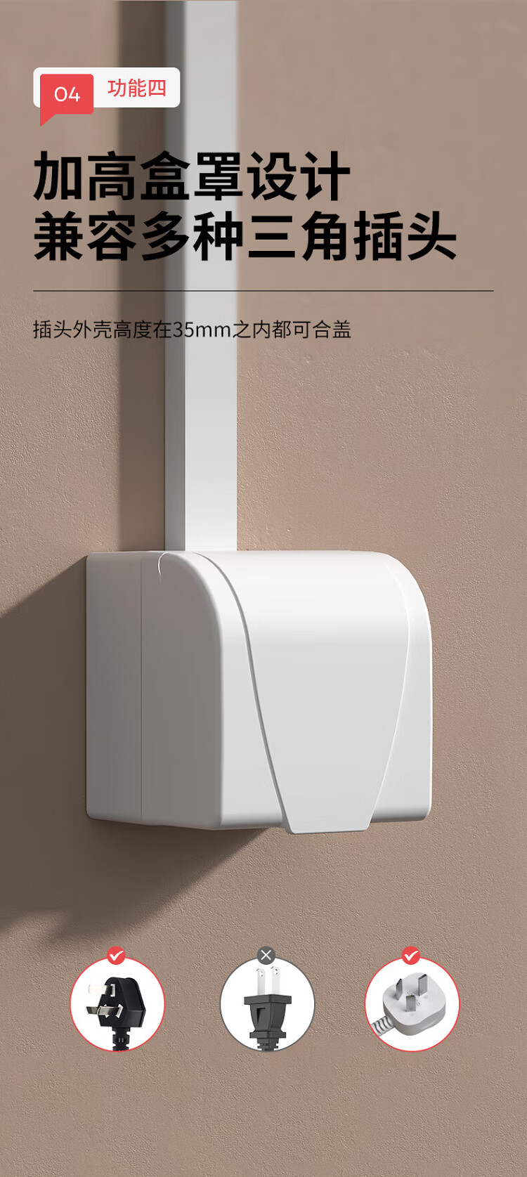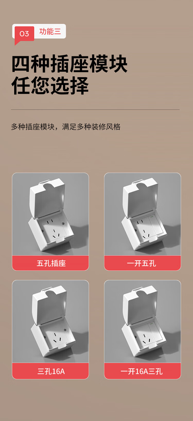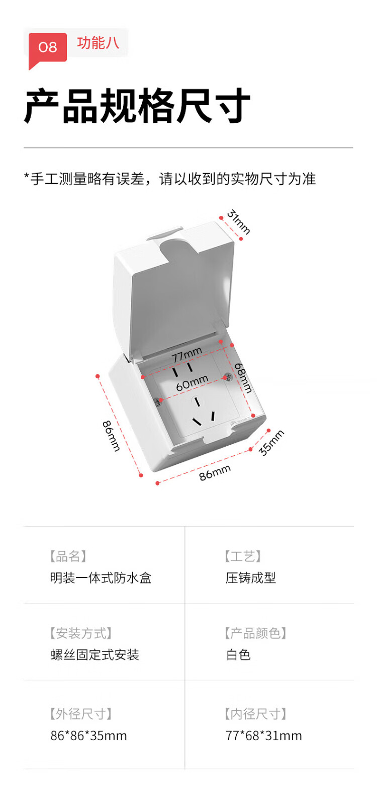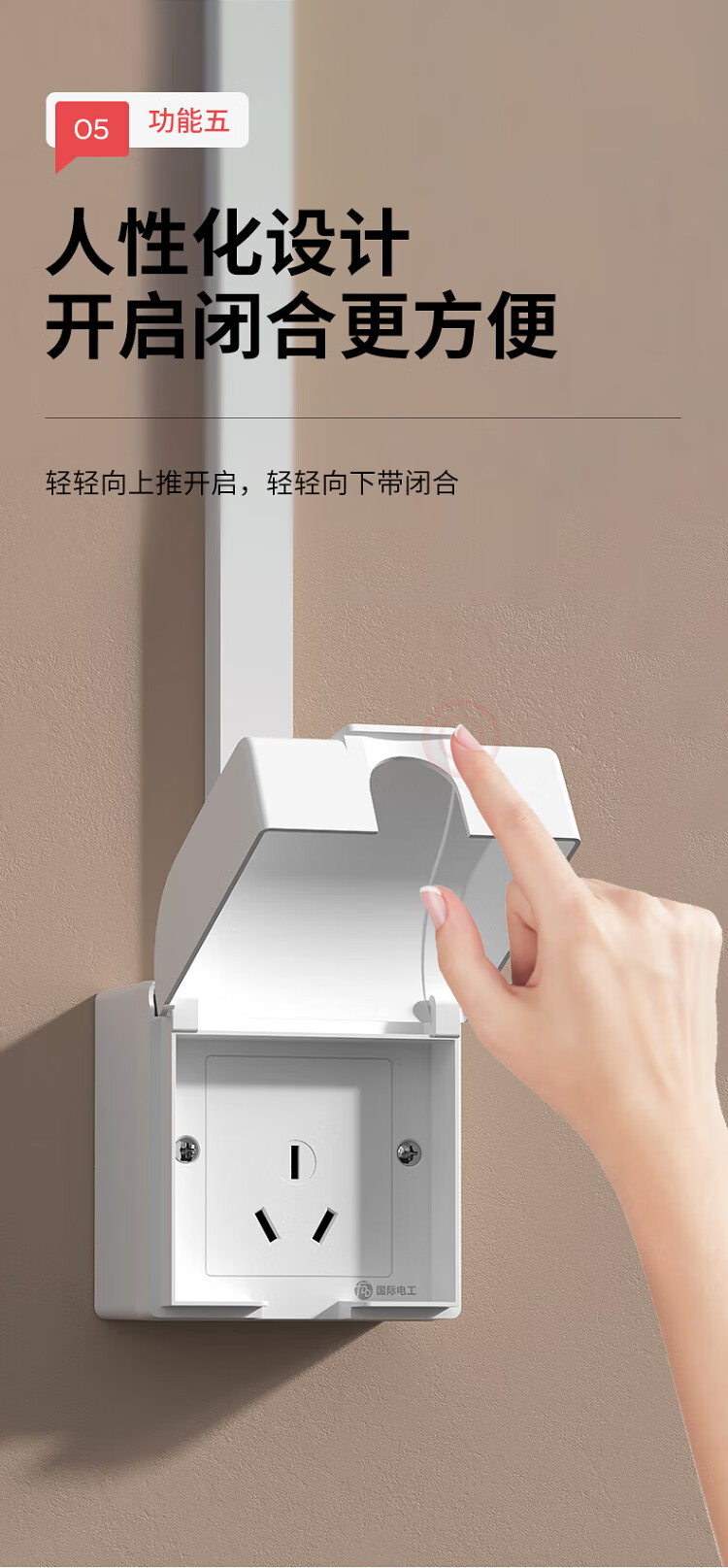 国际电工明装插座防水盒一体式86型浴室厨房明线面板户外防水罩防溅盒 明装-雅白五孔