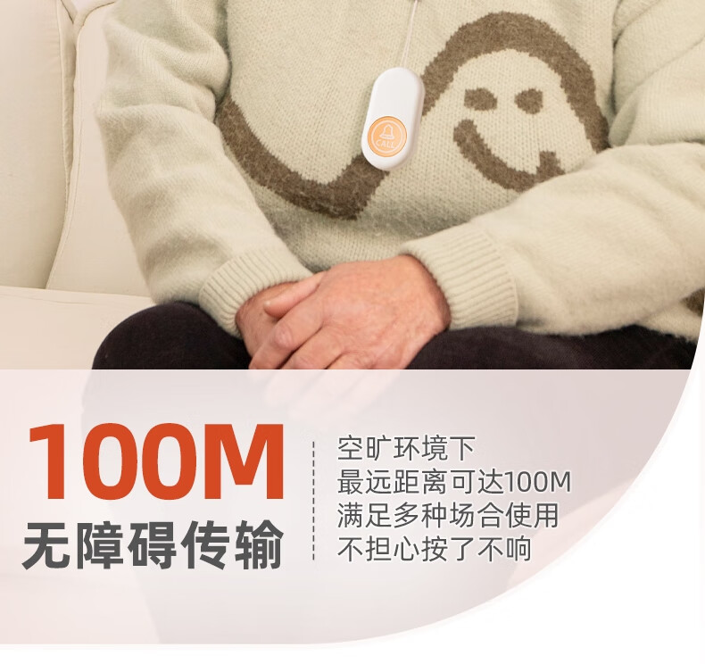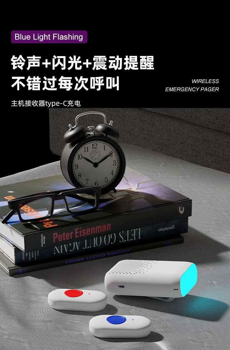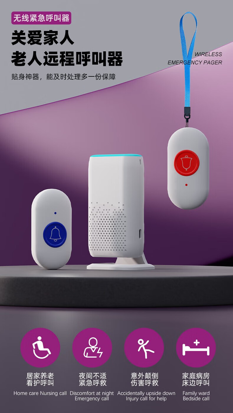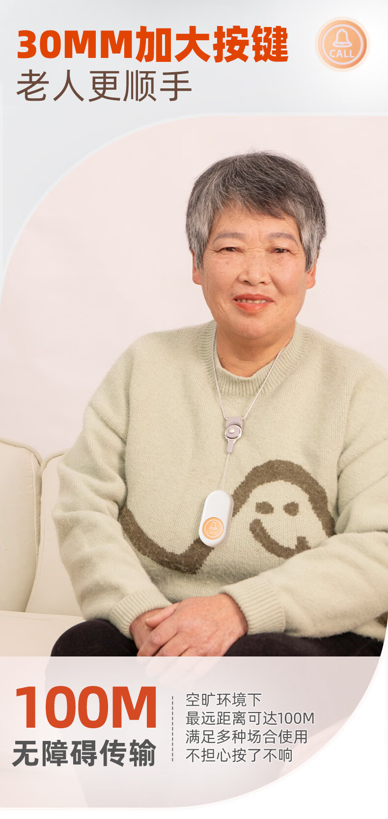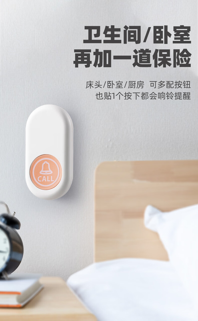 大九卫老人呼叫器充电款家用无线电铃病人床头呼叫遥控按铃一键紧急报警 808插电款:1按钮+1响铃+挂绳