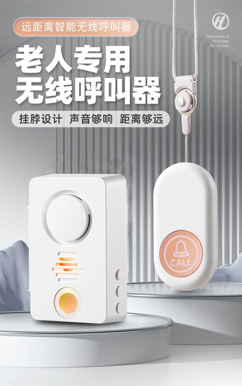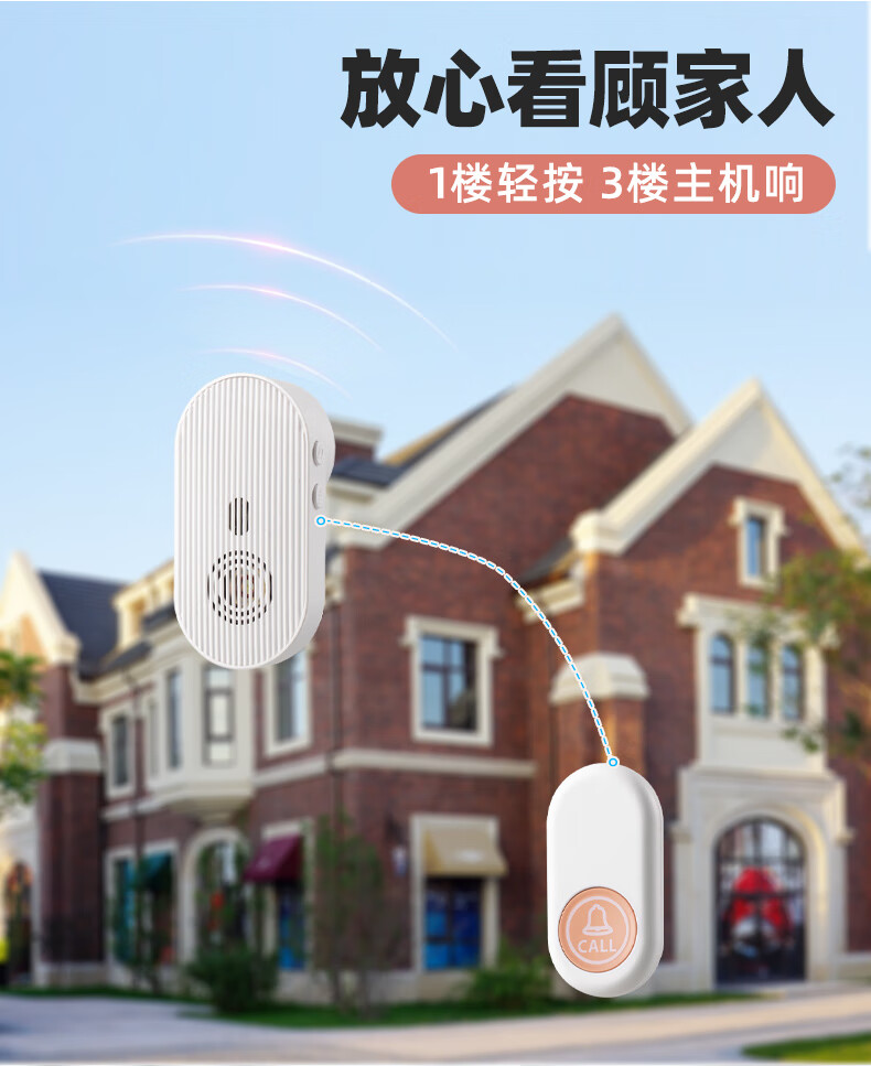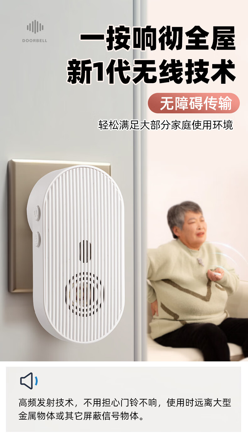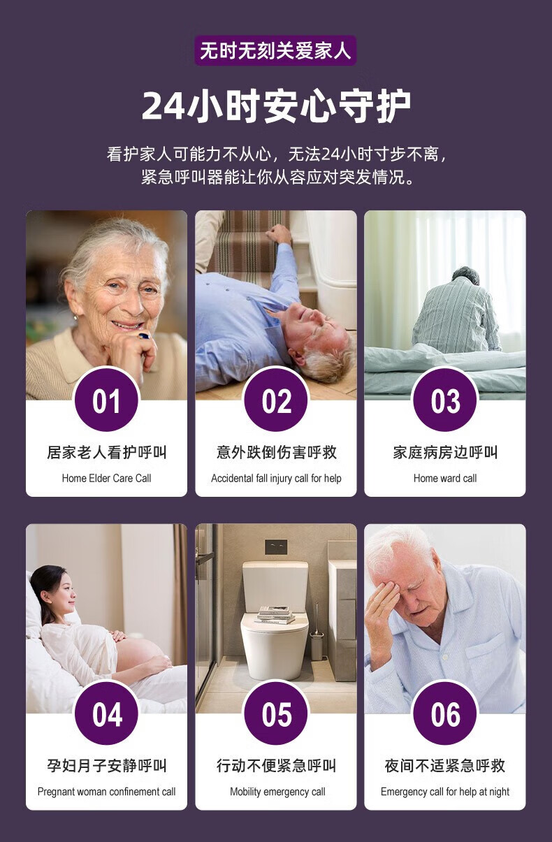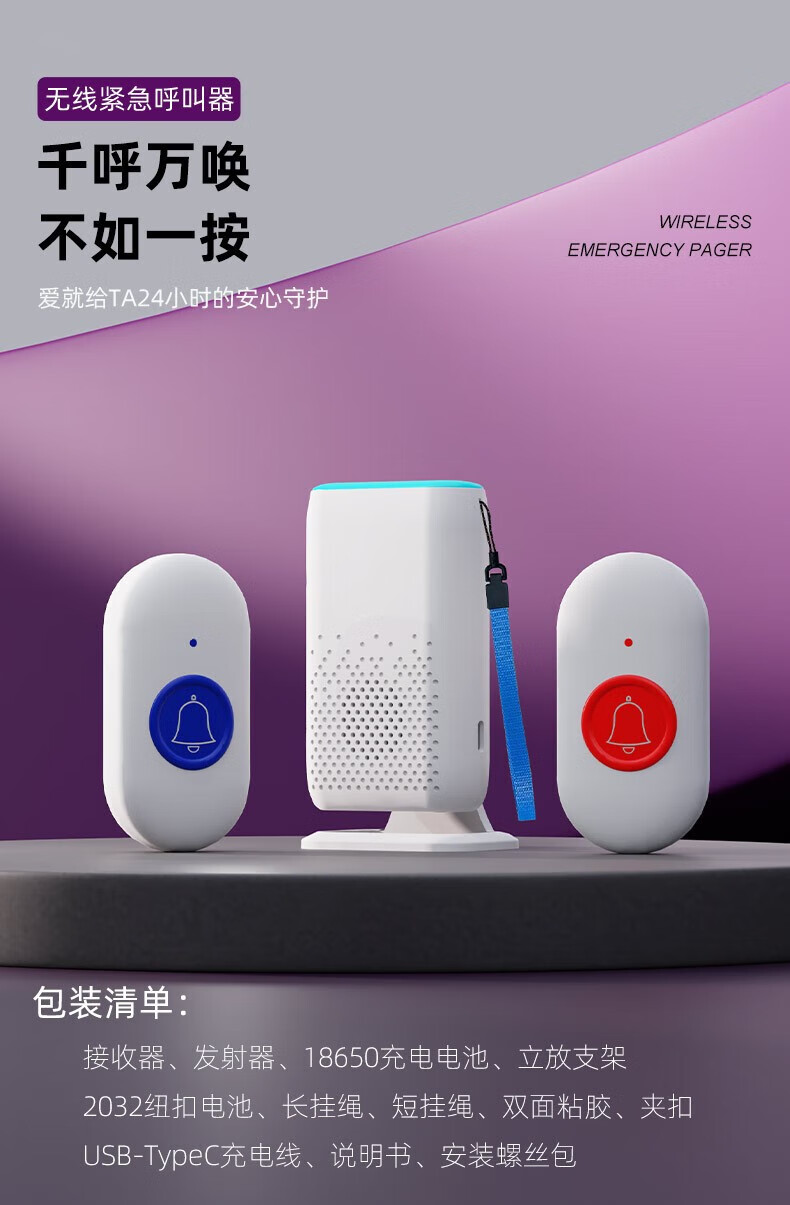 大九卫老人呼叫器充电款家用无线电铃病人床头呼叫遥控按铃一键紧急报警 808插电款:1按钮+1响铃+挂绳