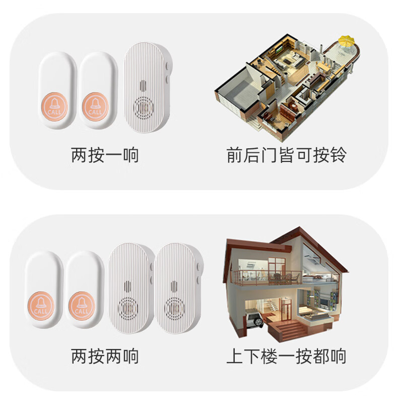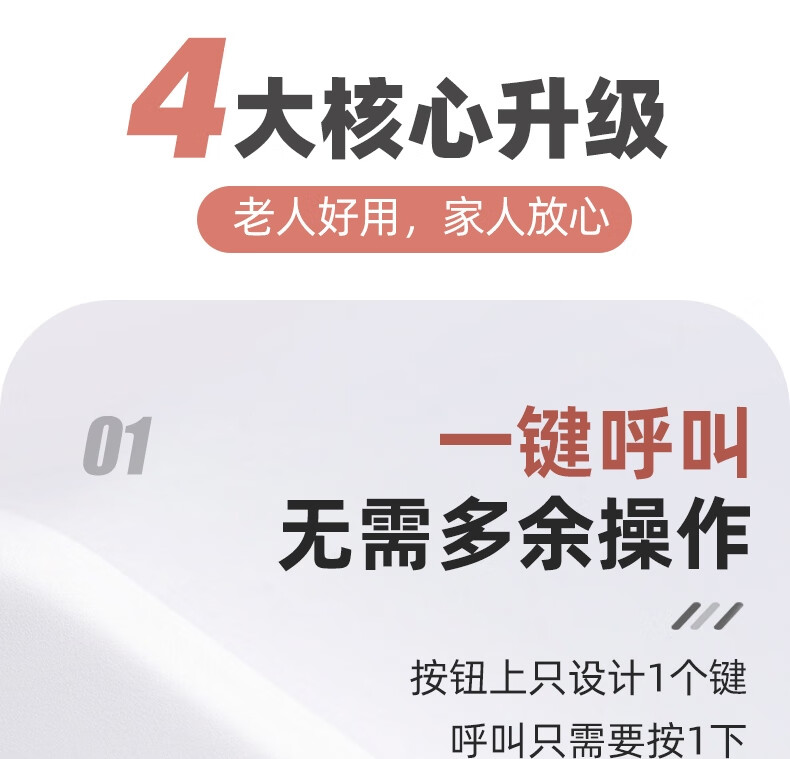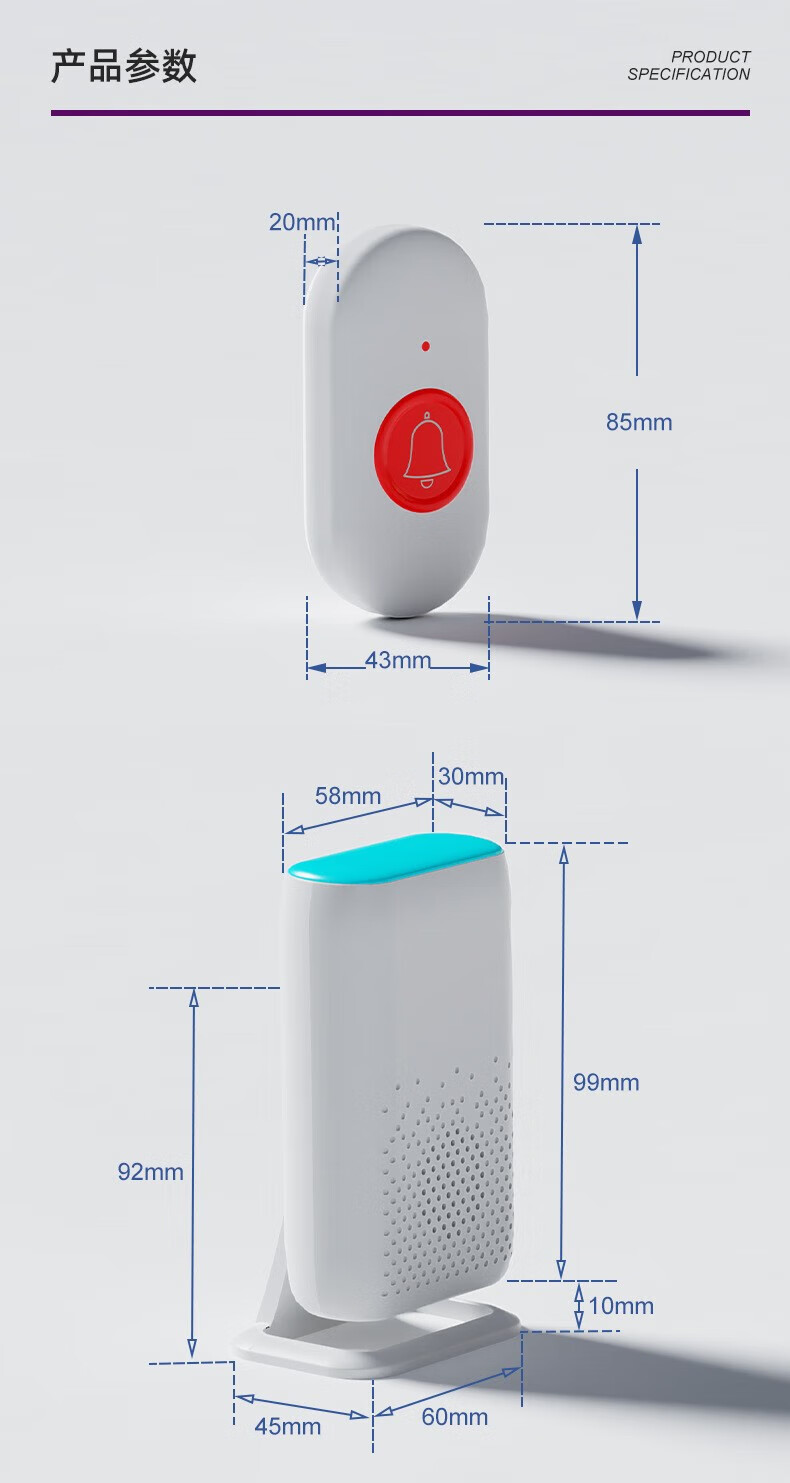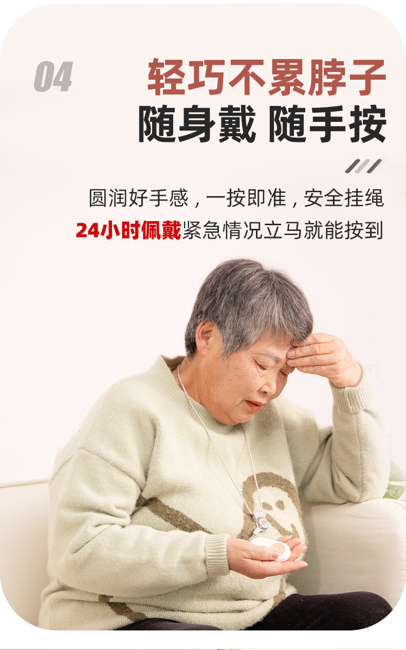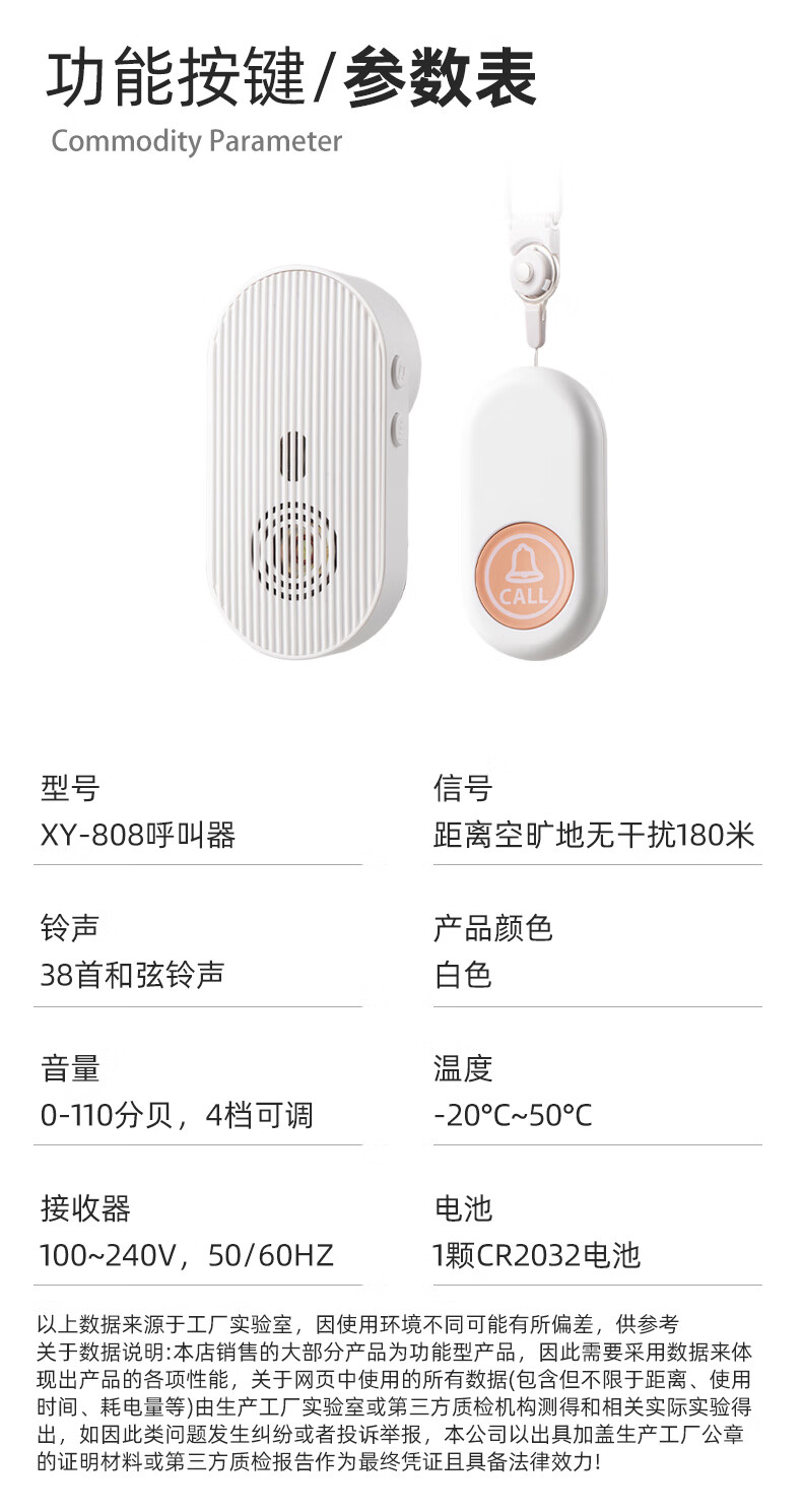 大九卫老人呼叫器充电款家用无线电铃病人床头呼叫遥控按铃一键紧急报警 808插电款:1按钮+1响铃+挂绳