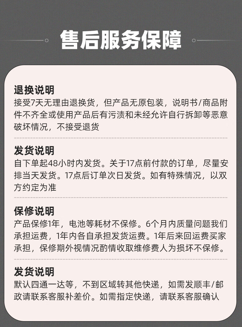 2)Les frais de port sont normalement facturés par tranche de 0,5KG. Donc, si vous achetez un produit qui ne pèse que 0,1KG, vous pourriez envisager d'acheter 2-3 PCS à la fois, ce qui n'ajoutera pas plus de frais de port à votre commande.