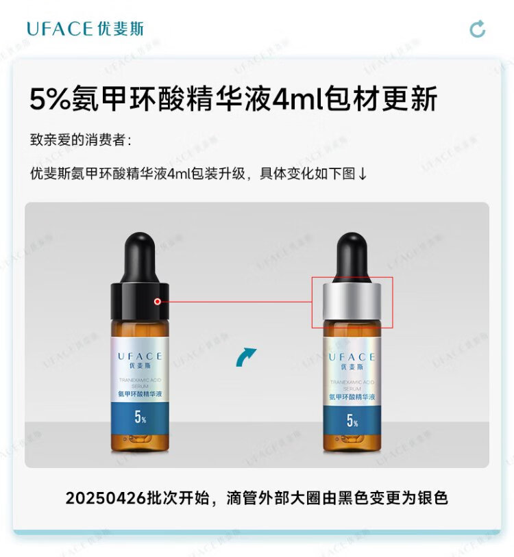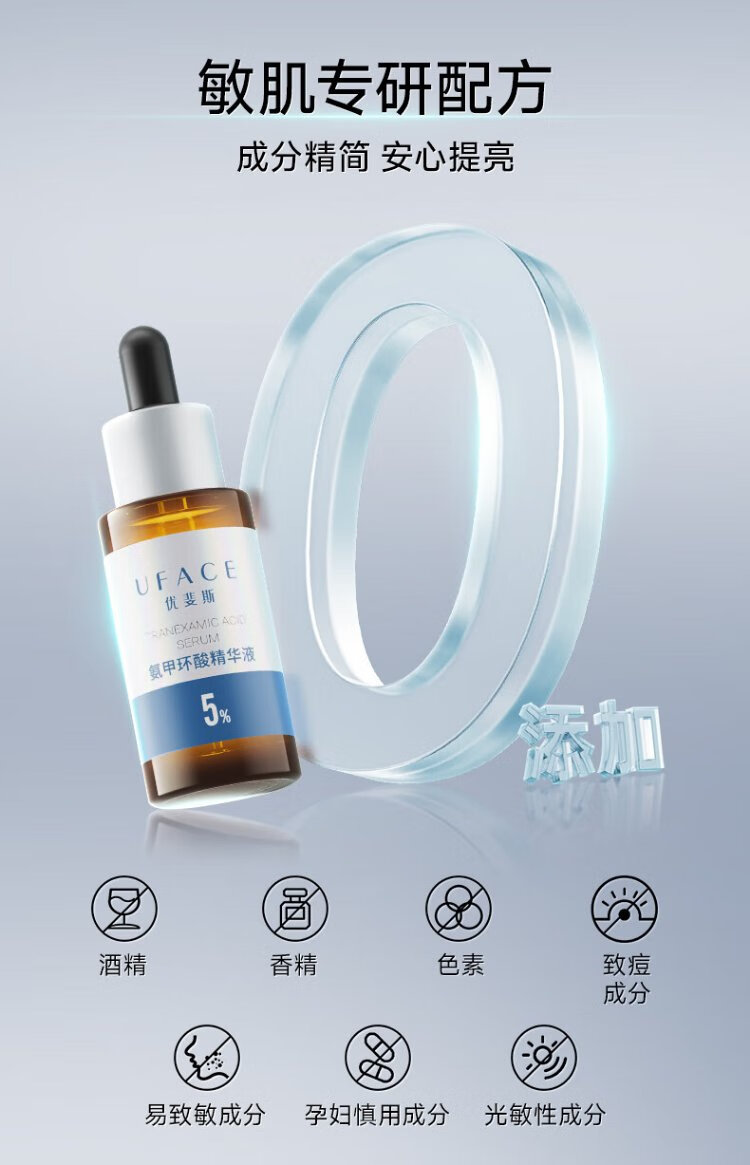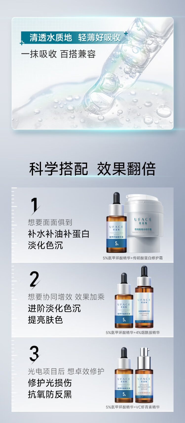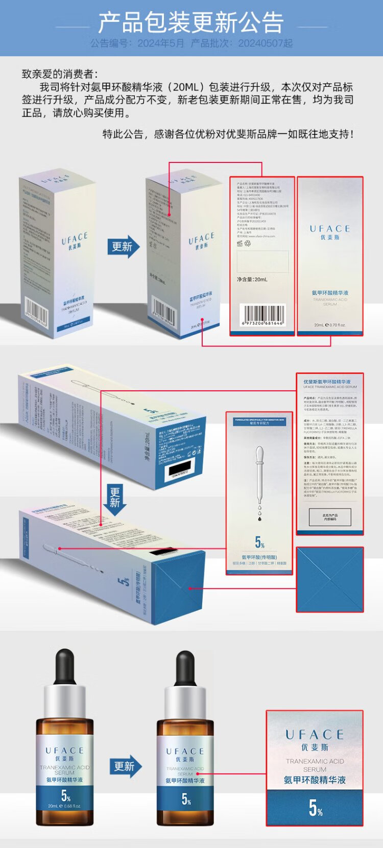 Uface Comprar ahora Esencia de ácido tranexámico Concentración del 5% de ácido tranexámico Ilumina la piel, aclara la pigmentación, hidrata 20 ml * 2 botellas gratis 40 ml