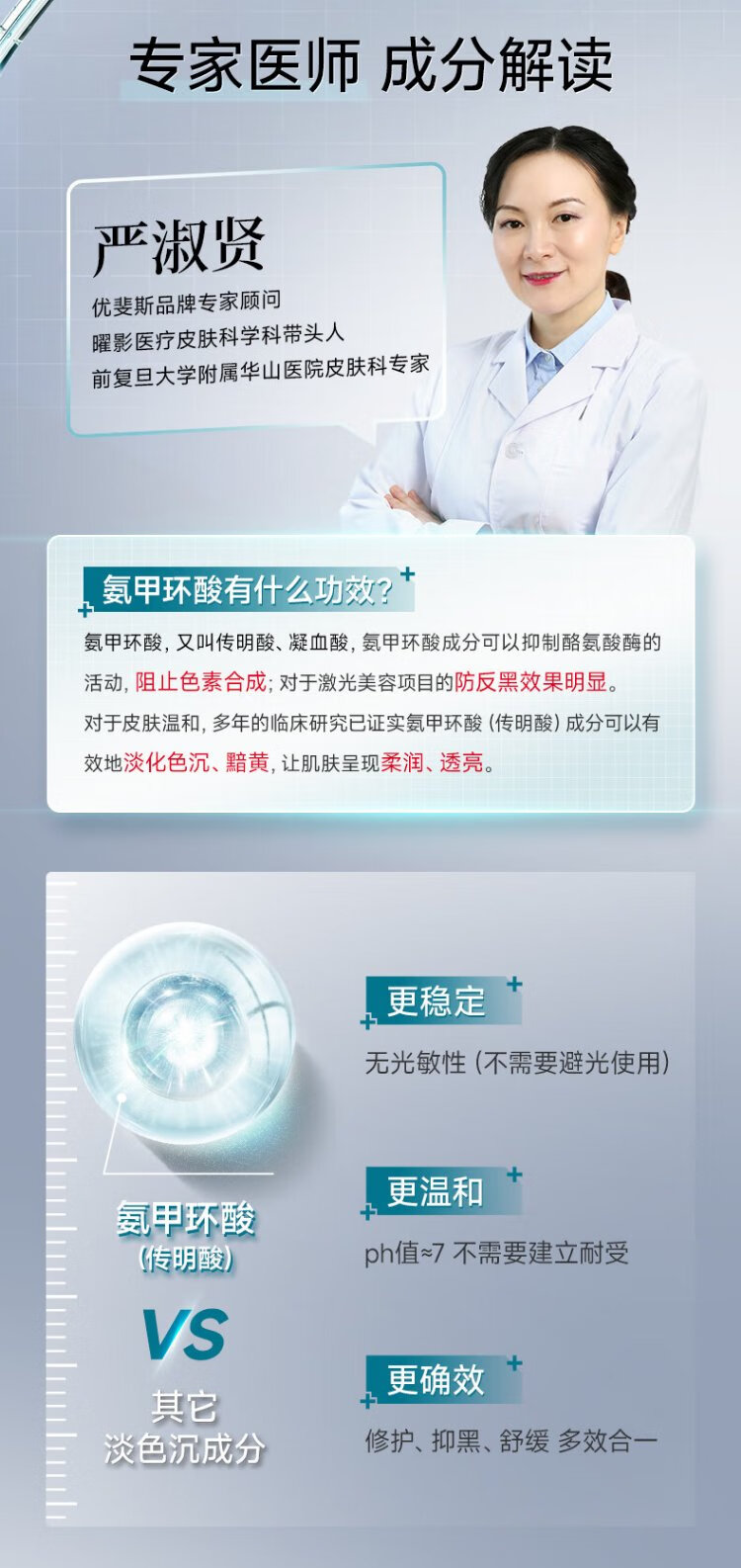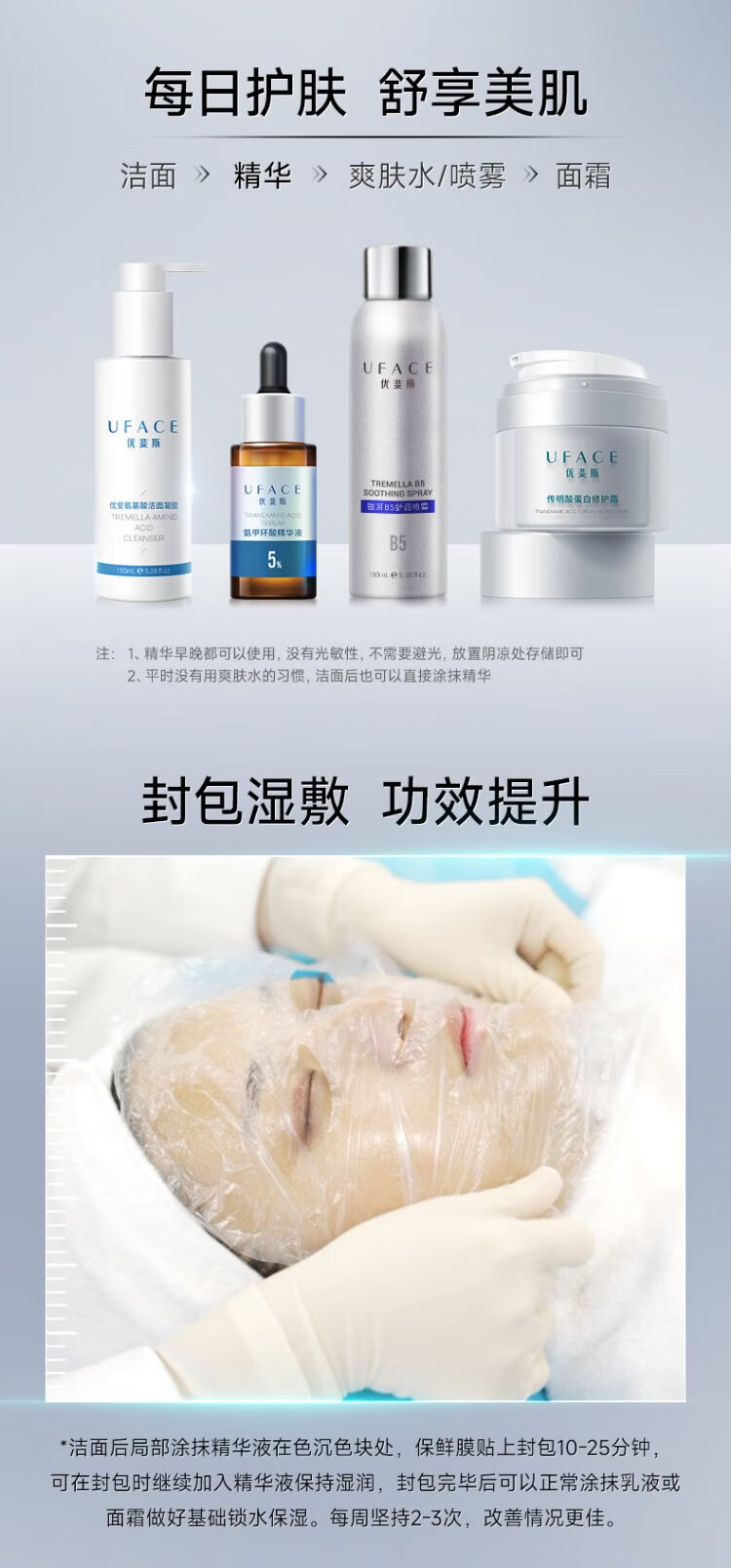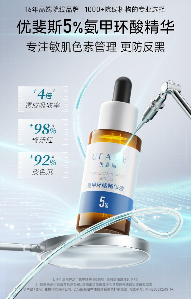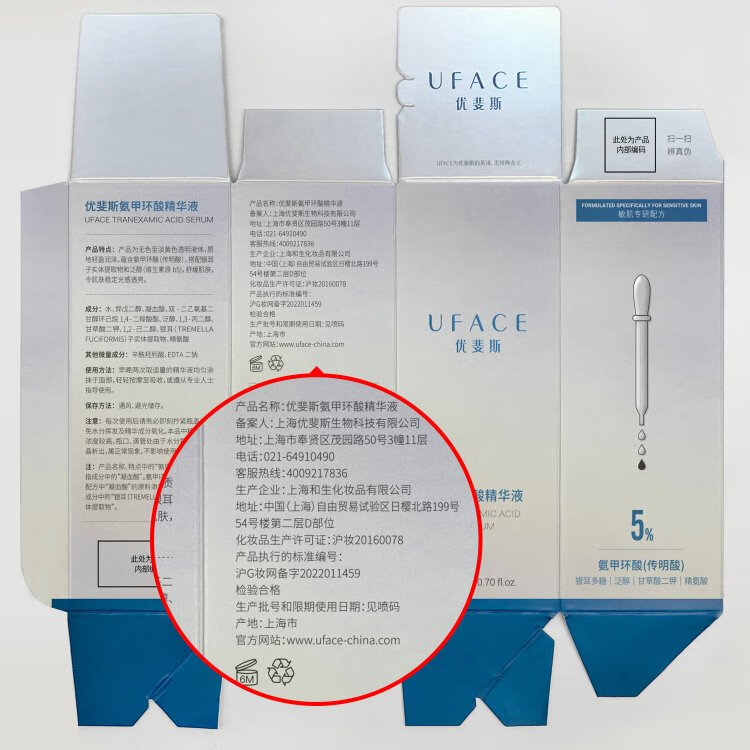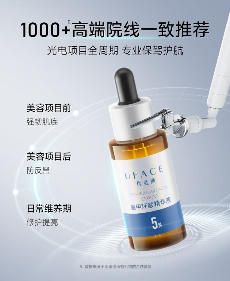 Uface Comprar ahora Esencia de ácido tranexámico Concentración del 5% de ácido tranexámico Ilumina la piel, aclara la pigmentación, hidrata 20 ml * 2 botellas gratis 40 ml
