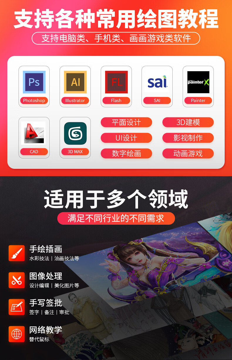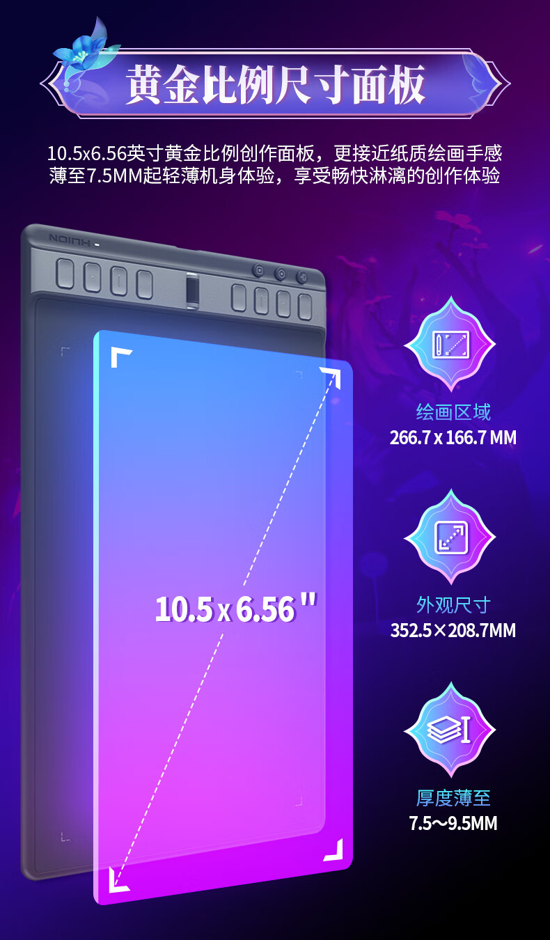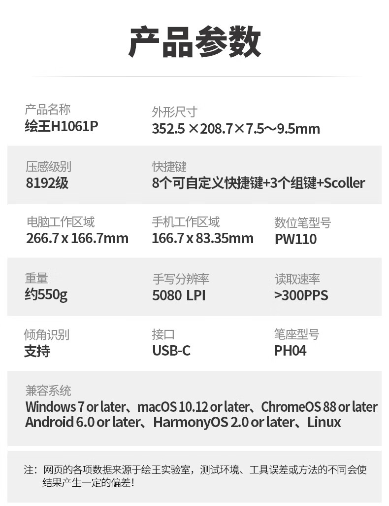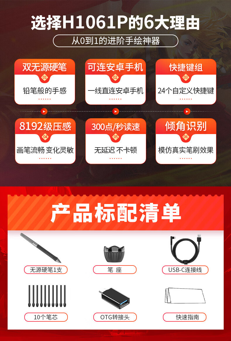 绘王(HUION)H1061P手绘板电脑画板绘图板写字手写输入板可连接手机数位板