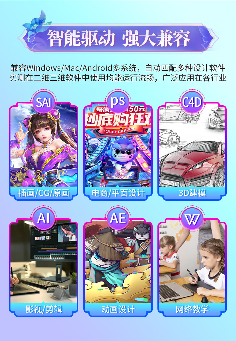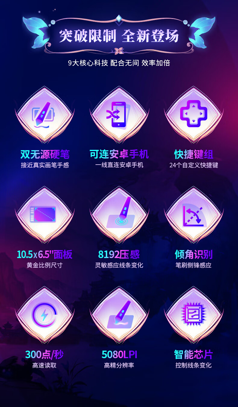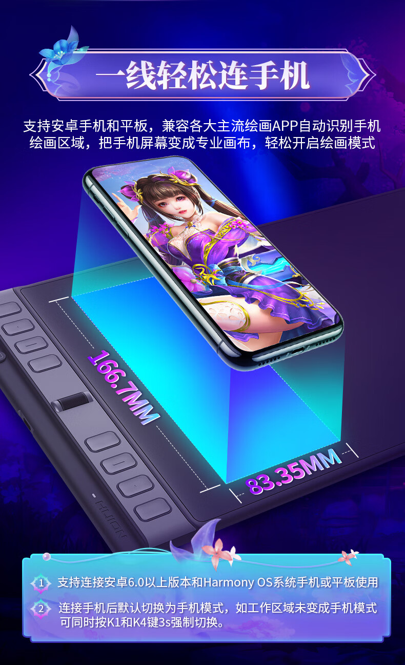 绘王(HUION)H1061P手绘板电脑画板绘图板写字手写输入板可连接手机数位板